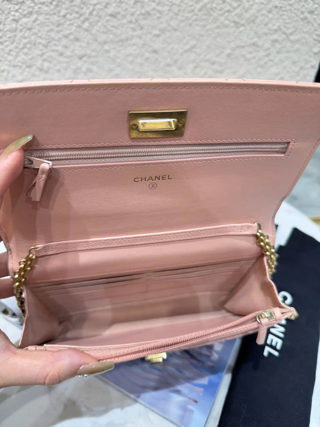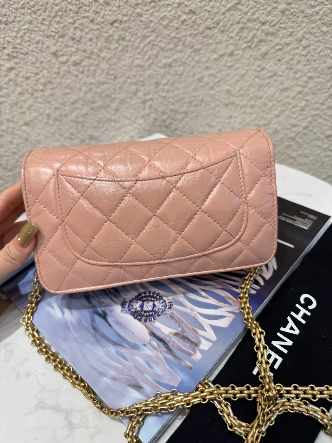 【商品详情】正品二手 Chanel 2.55 woc 粉色 油蜡牛皮 链条包🥧 97新 19*12 新钢标 配件:防尘袋。粉粉嫩