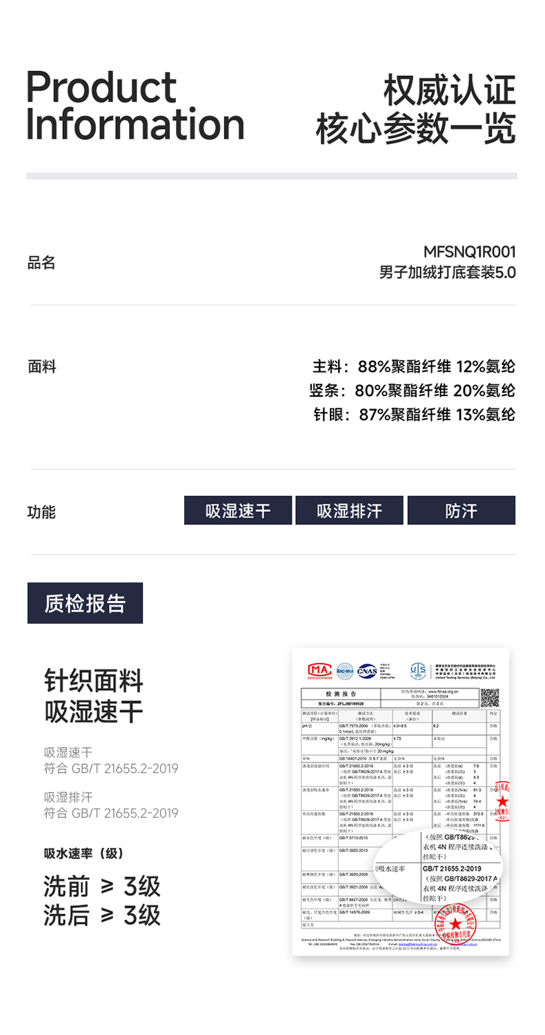原创单品丨男子加绒打底套装5代 薄绒锁温 吸湿排汗 腋下后腰透气网