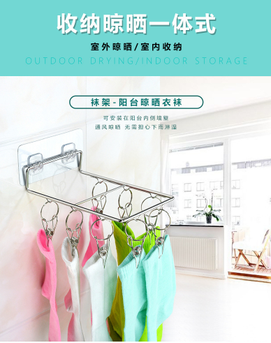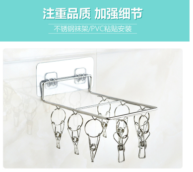壁挂式8夹多功能袜架 不锈钢晾衣架晒袜子防风3.14