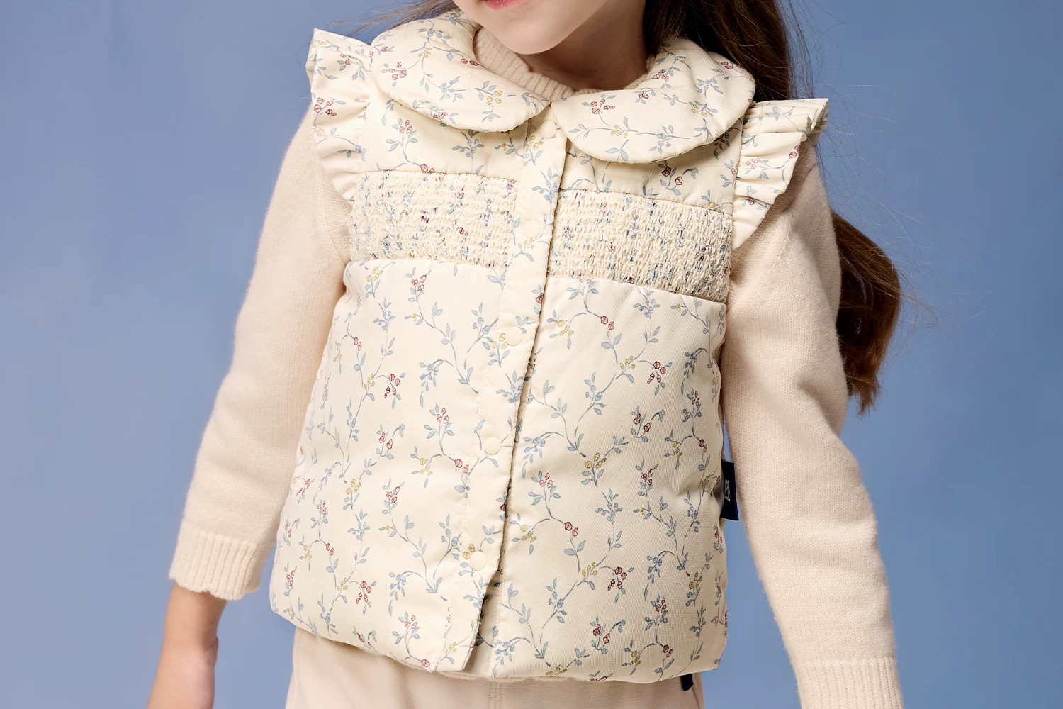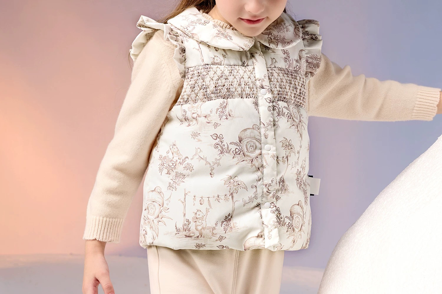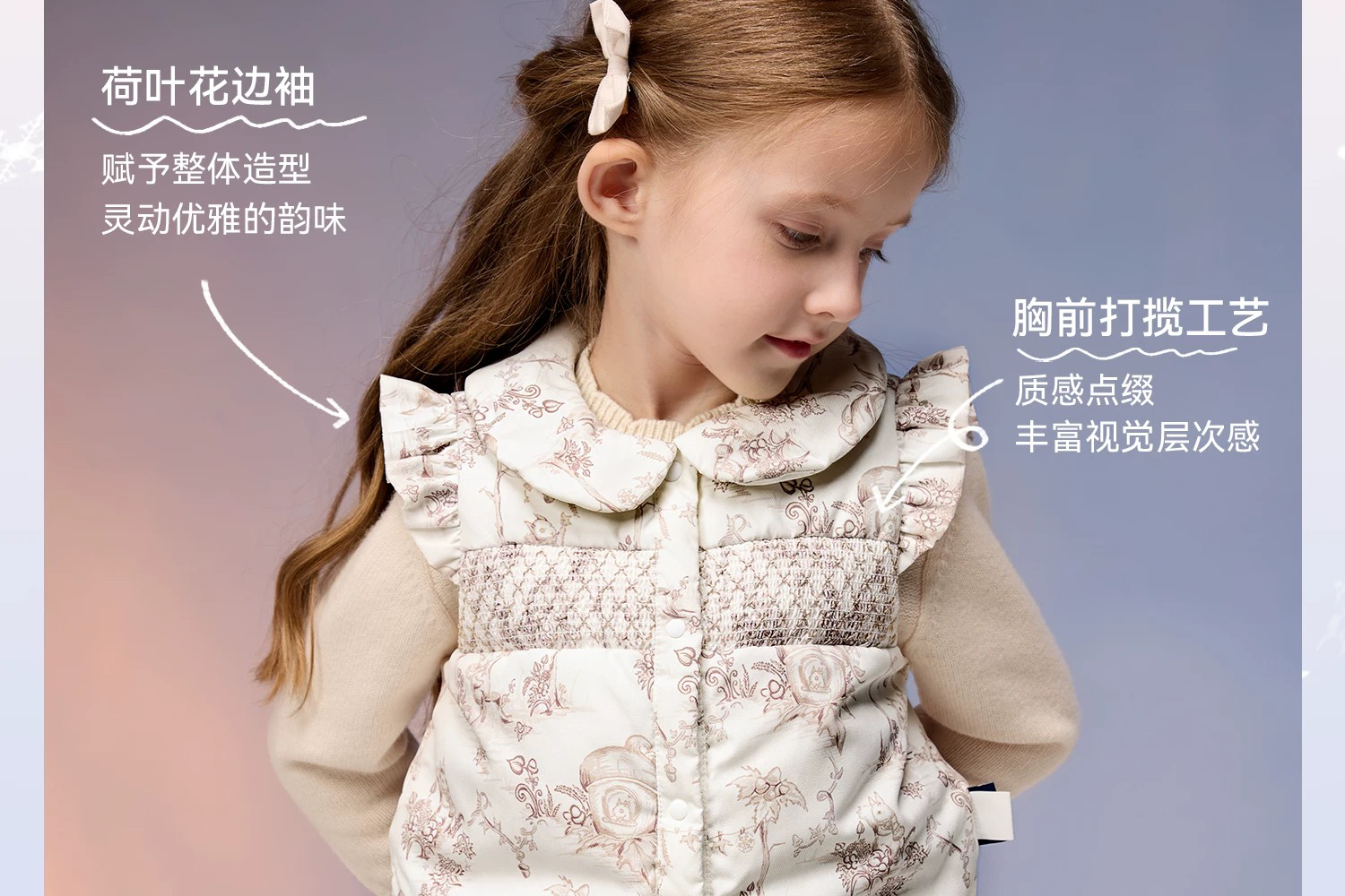 Domiamia 女童羽绒翻领花边袖马甲 春秋冬款外穿内搭鹅绒百搭保暖背心