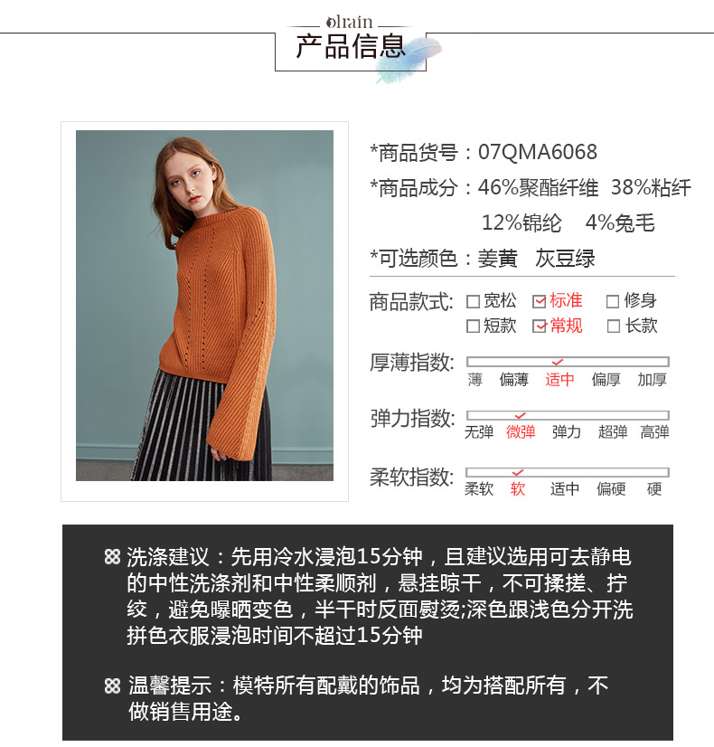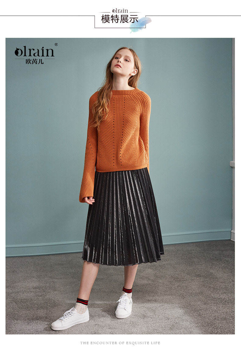 欧芮儿春秋装女2019长袖宽松套头毛衣女春秋百搭针织衫