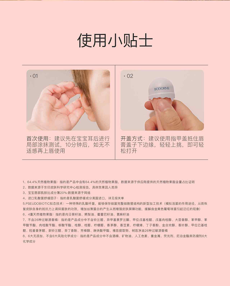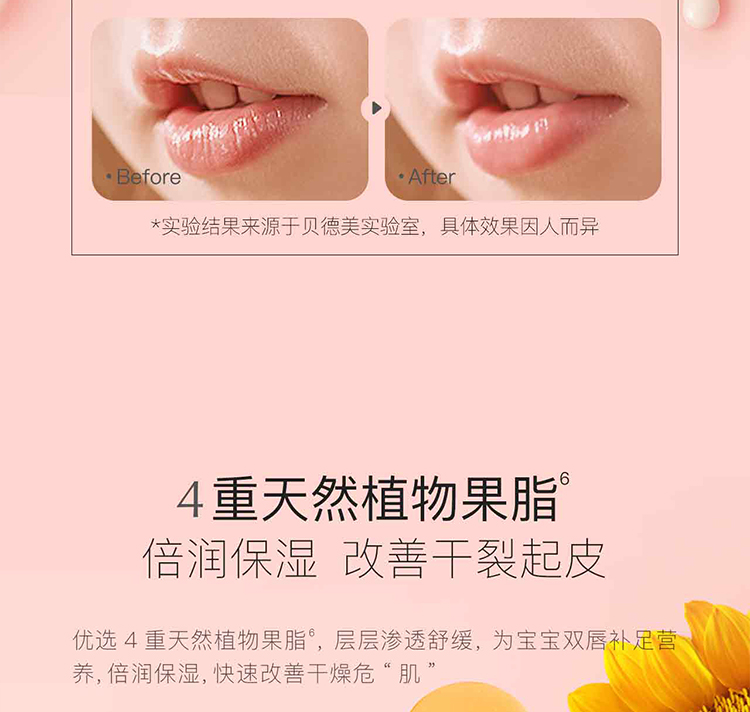 贝德美儿童润唇膏女保湿滋润防干裂婴儿女童母婴宝宝适用
