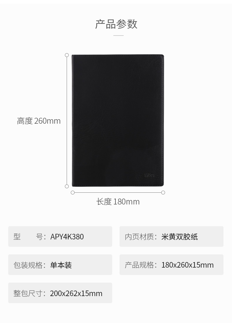晨光(M&G)文具B5/124页黑色皮面笔记本 商务办公记事本 会议记录本日记本笔记本子 单本装APY4K380