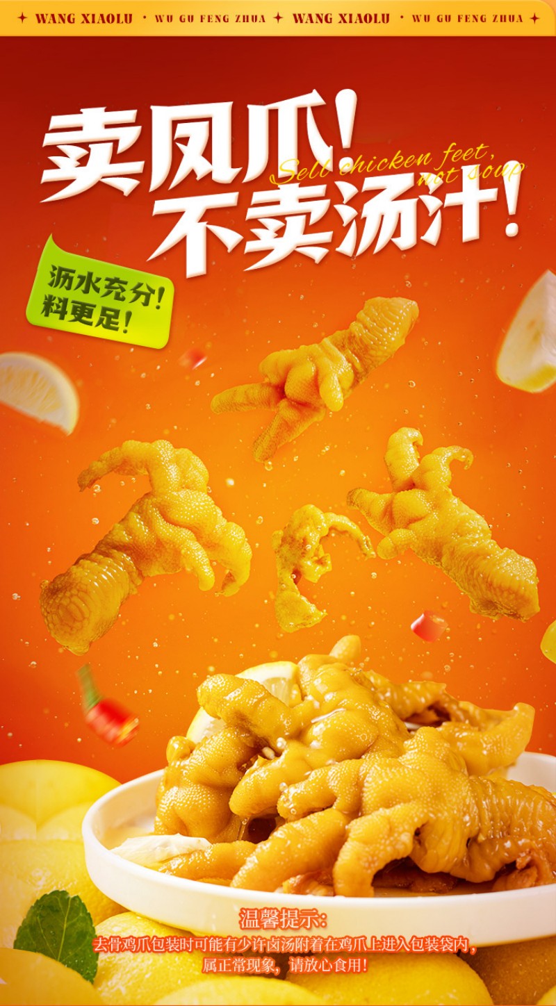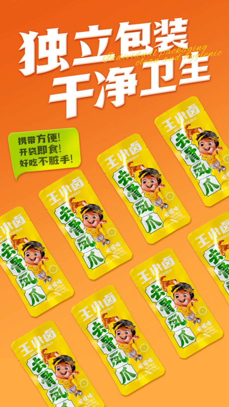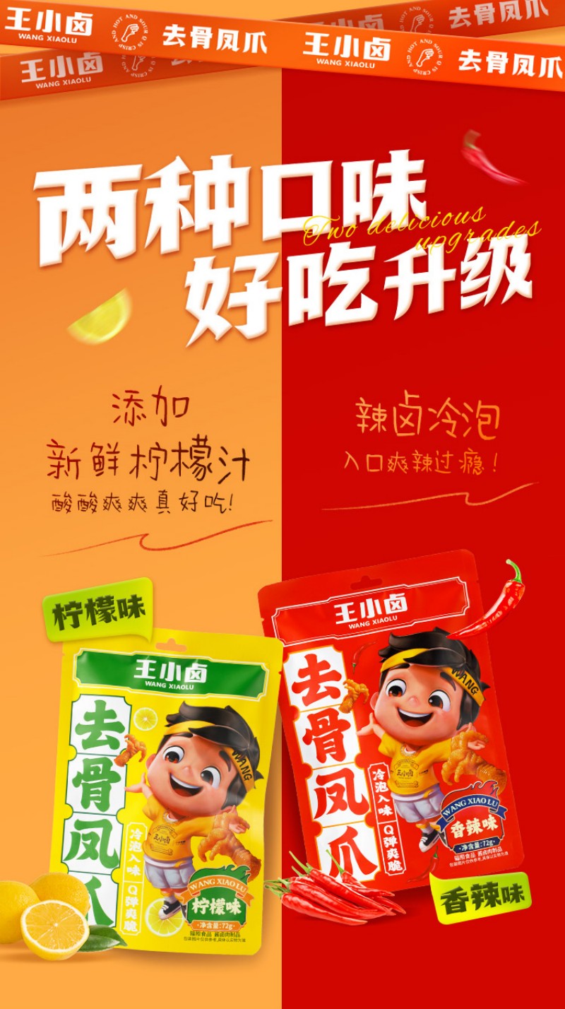 王小卤去骨鸡爪混合口味(柠檬味72g+香辣味72g)无骨鸡爪休闲零食独立包装开袋