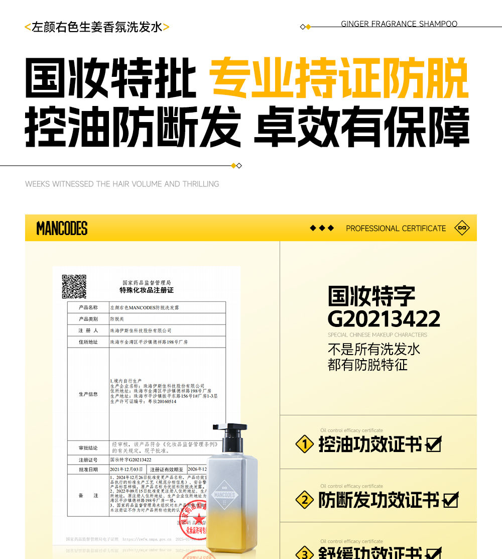 狂暑季🔥【𝟏𝟐𝟵任选𝟒件】🔹左颜右色 人参精华防脱洗发露密发蓬松固发根健发控油去屑洗发水
