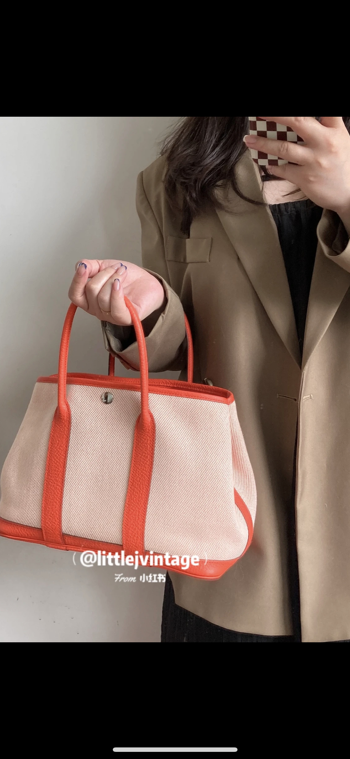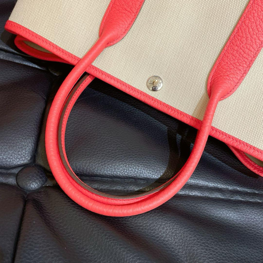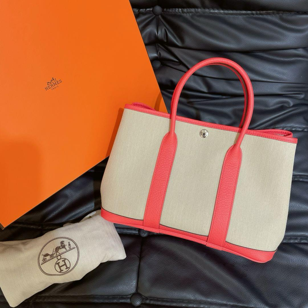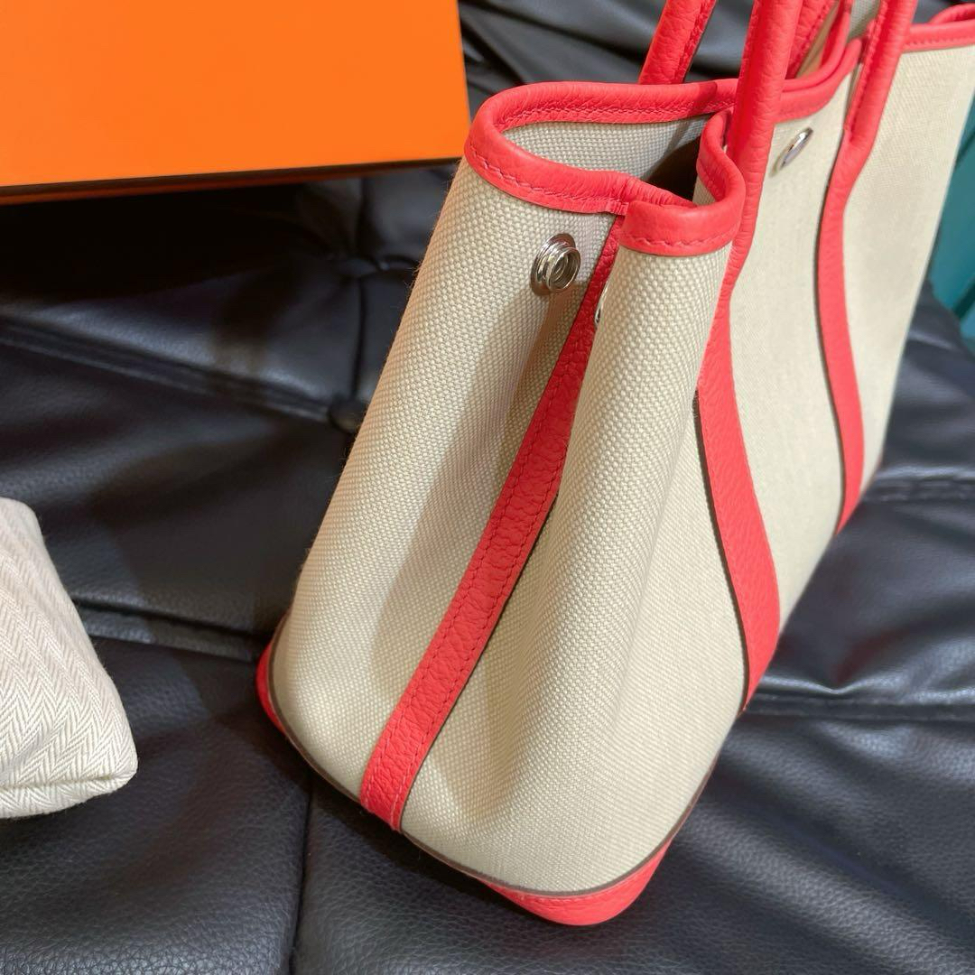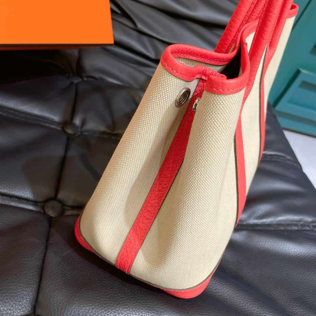 【商品详情】正品二手 爱马仕 花园 30 帆布拼皮 银扣 手提包🪐 99新 30x21 配件:盒子、防尘袋。整包状态良好干净 近新成色