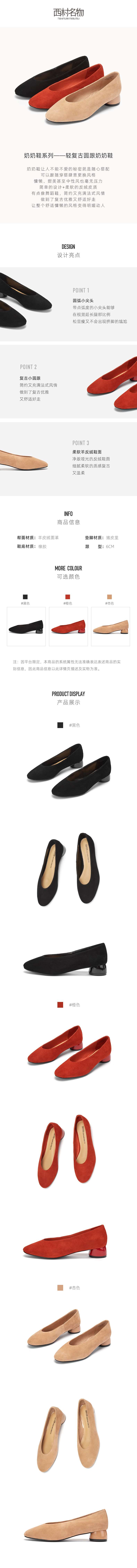 西村名物2020秋季新款浅口中跟羊皮绒面革复古奶奶鞋X20CE30851