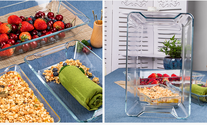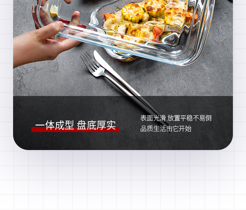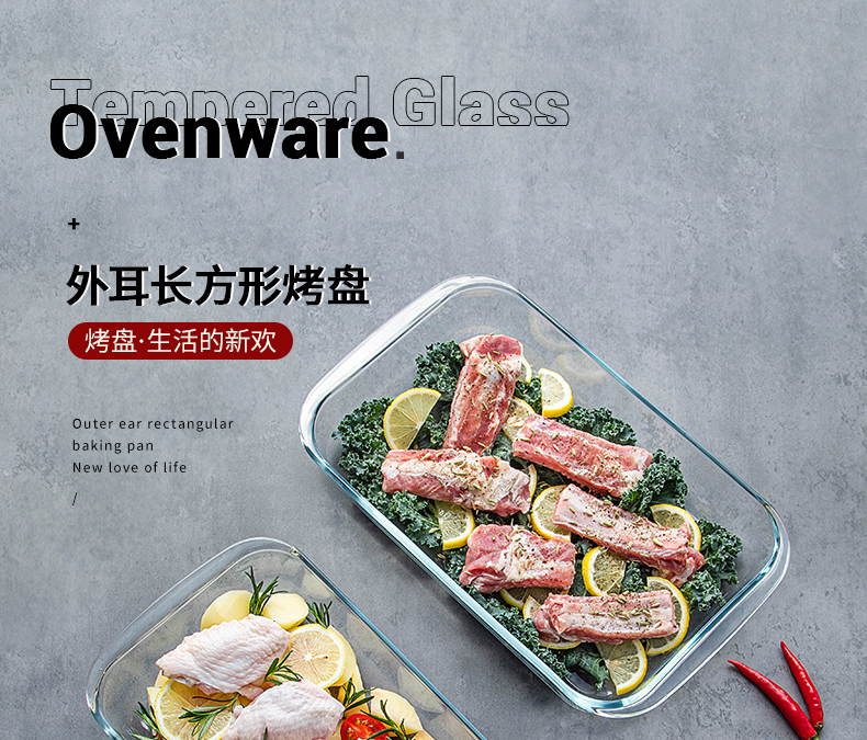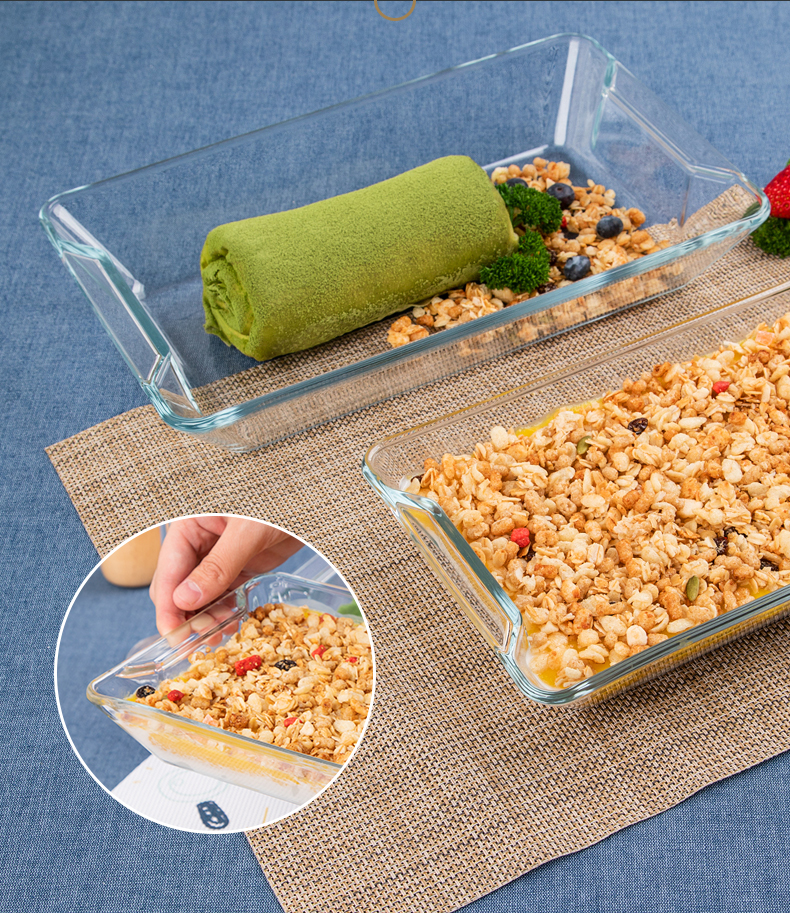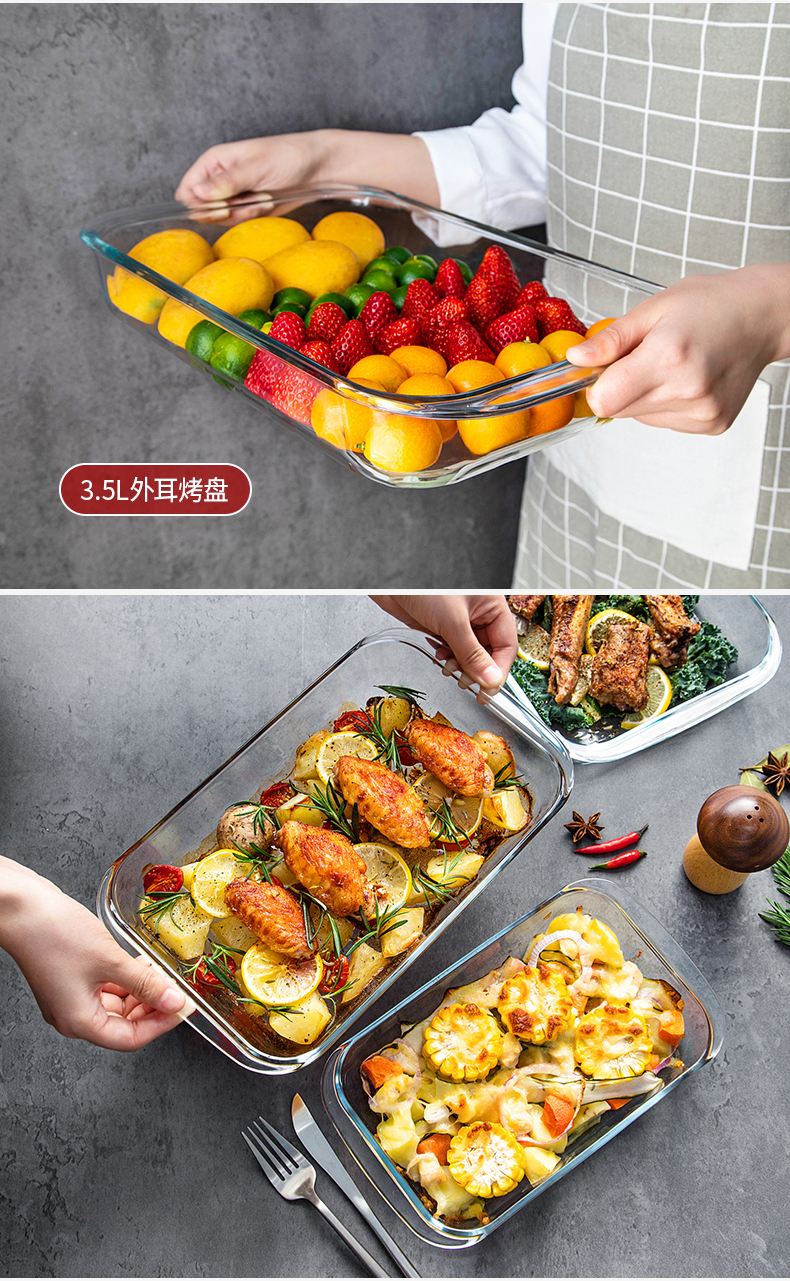【笑麻麻荟&菲内克斯】钢化玻璃长方形烤鱼盘微波炉烤箱蒸鱼盘透明餐盘家用商用装鱼盘子A