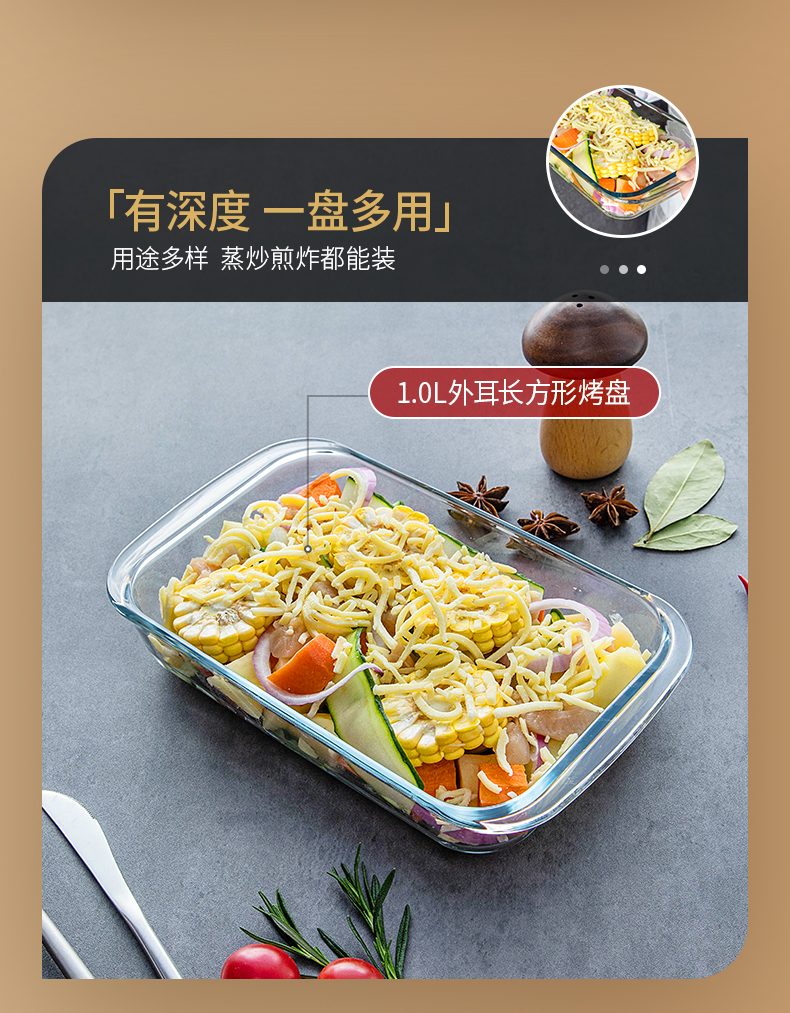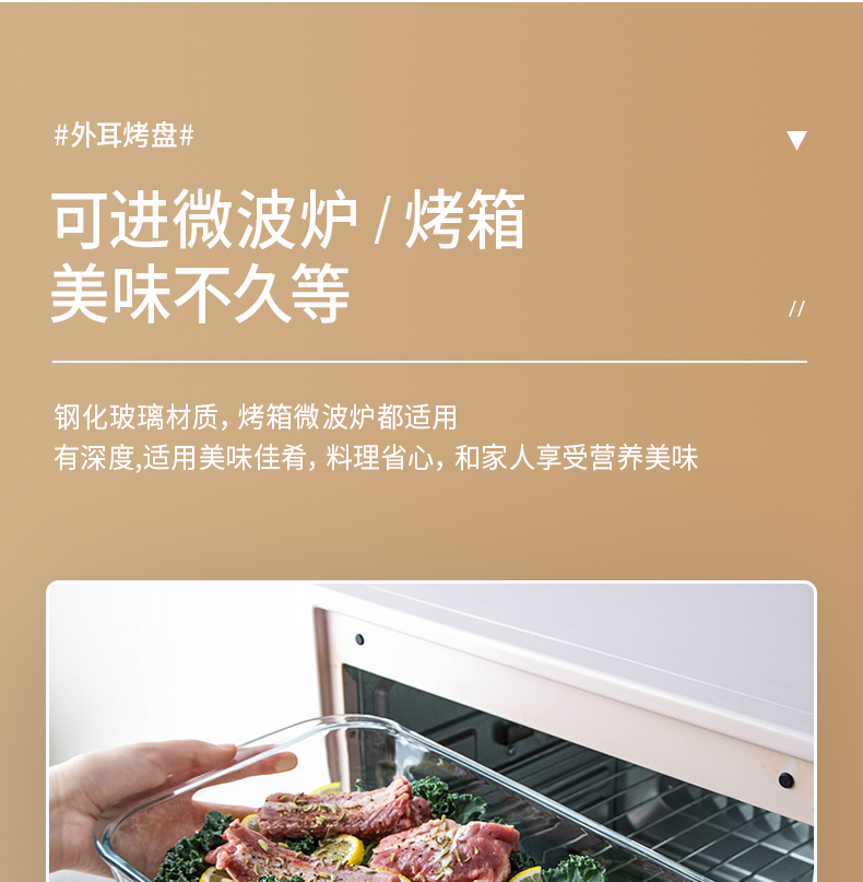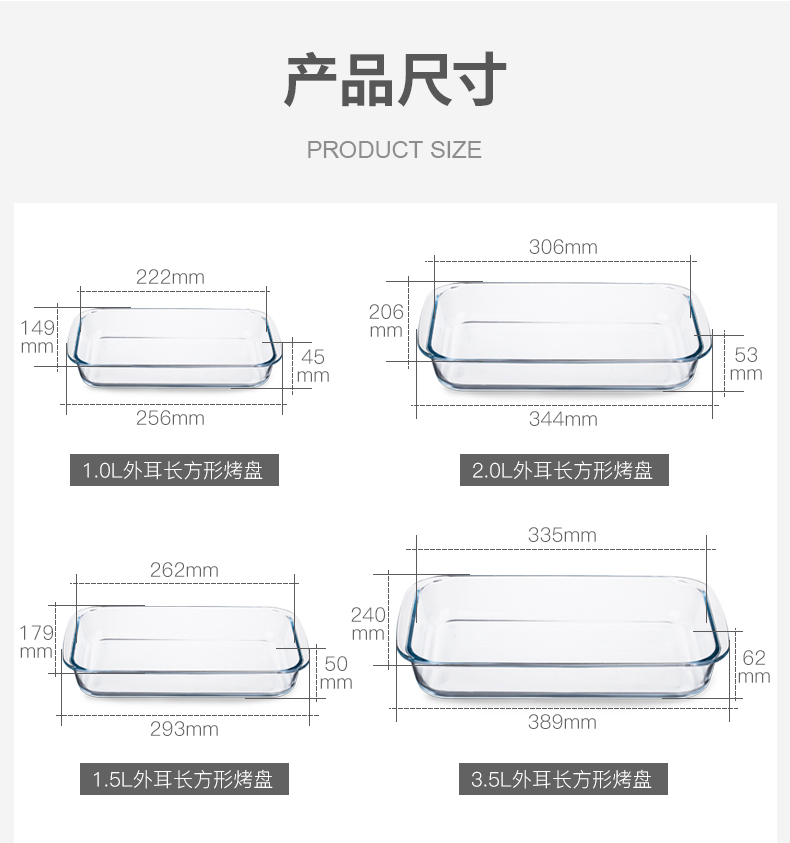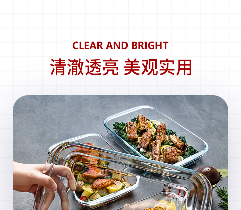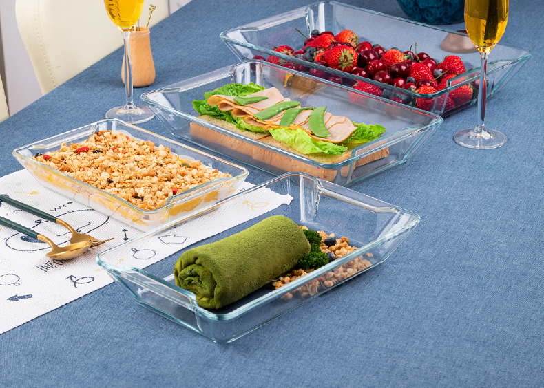【笑麻麻荟&菲内克斯】钢化玻璃长方形烤鱼盘微波炉烤箱蒸鱼盘透明餐盘家用商用装鱼盘子A