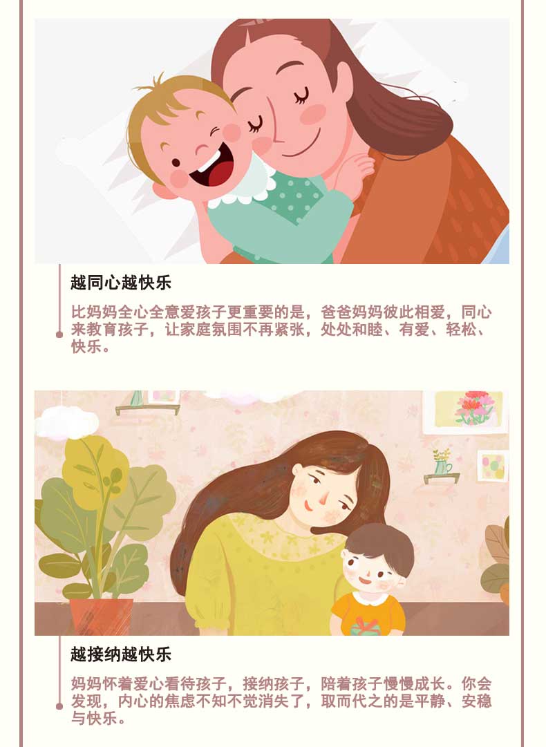 妈妈们怀着爱心看待孩子,接纳孩子,陪着孩子慢慢成长。你会发现,内心的焦虑不知不觉消失了,取而代之的是平静、安稳与快乐。