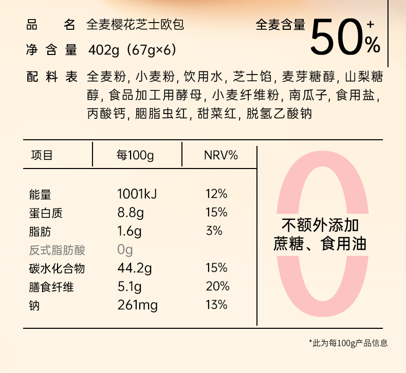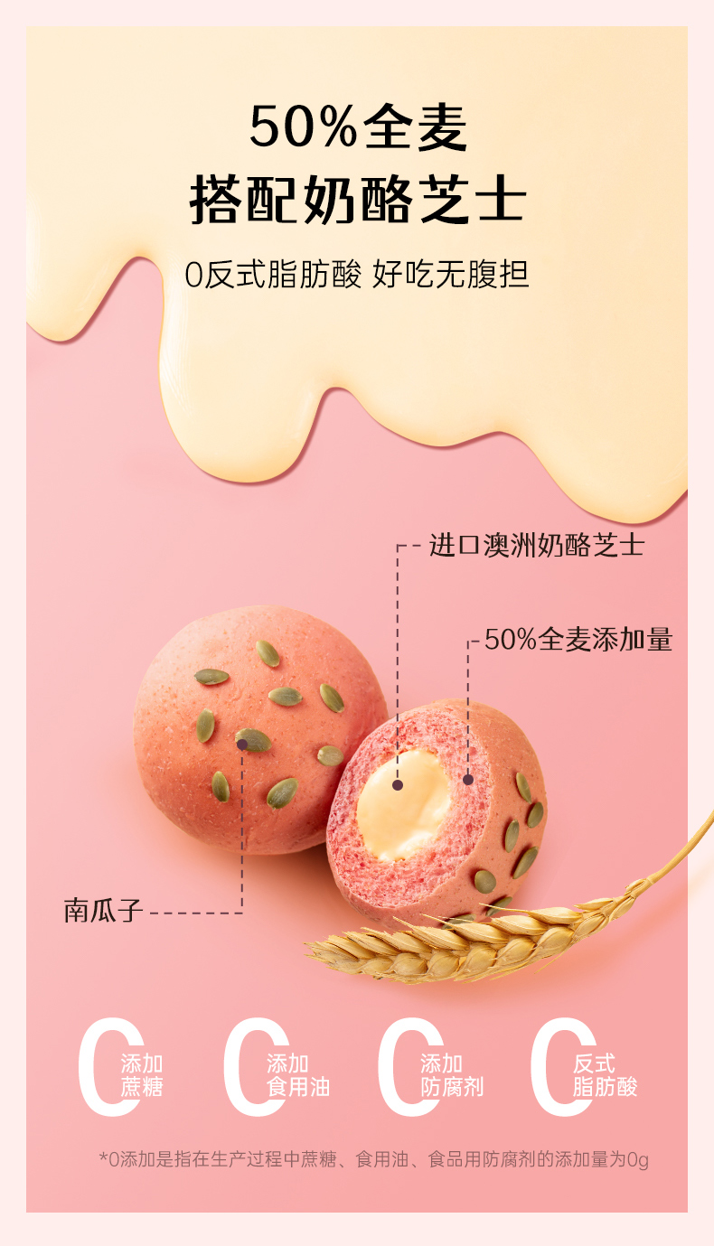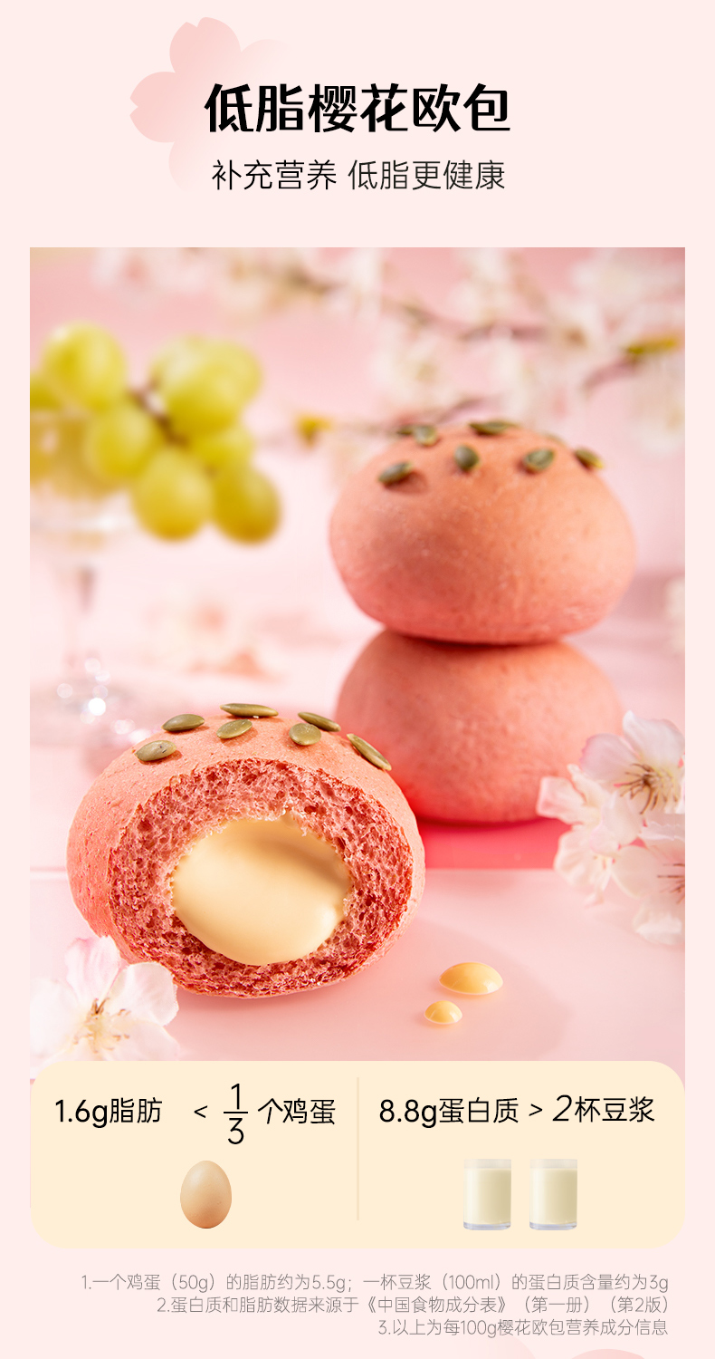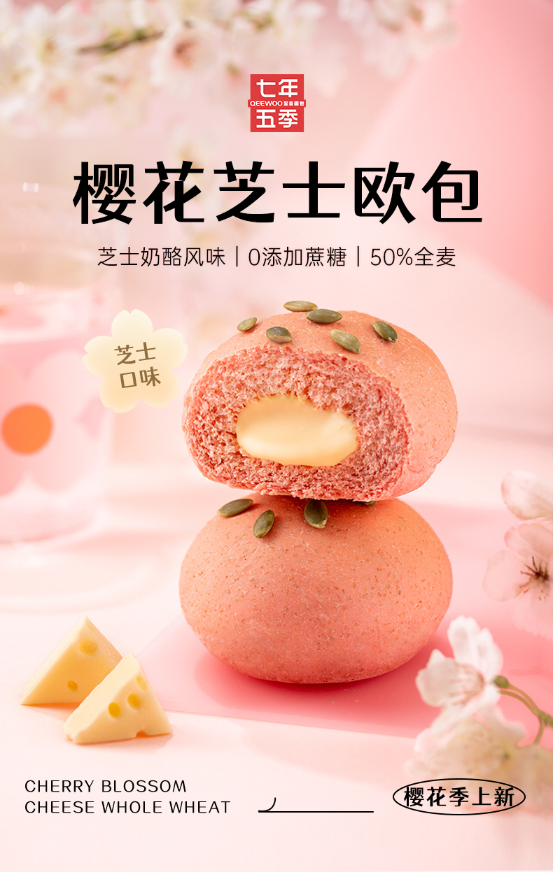 七年五季低脂全麦面包健康早餐夹心欧包零食代餐小吃-樱花芝士欧包