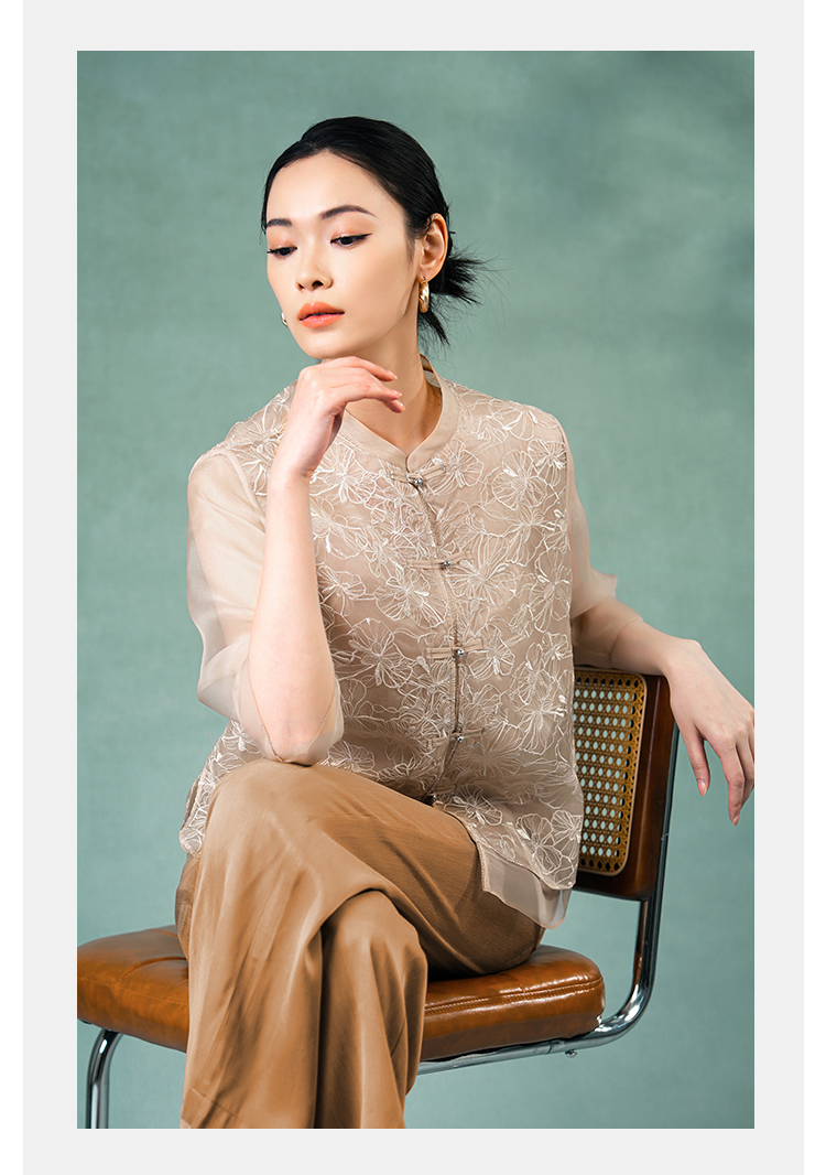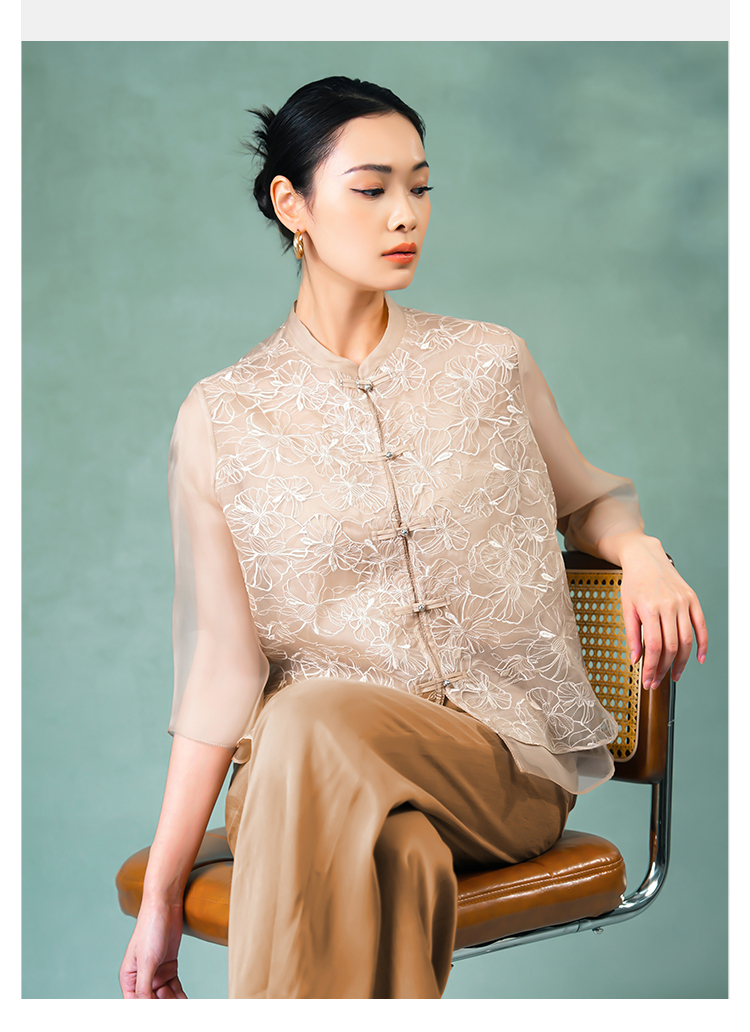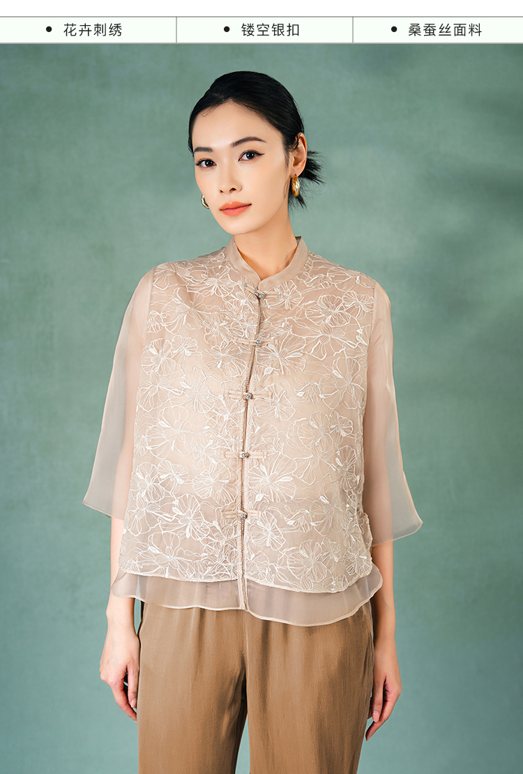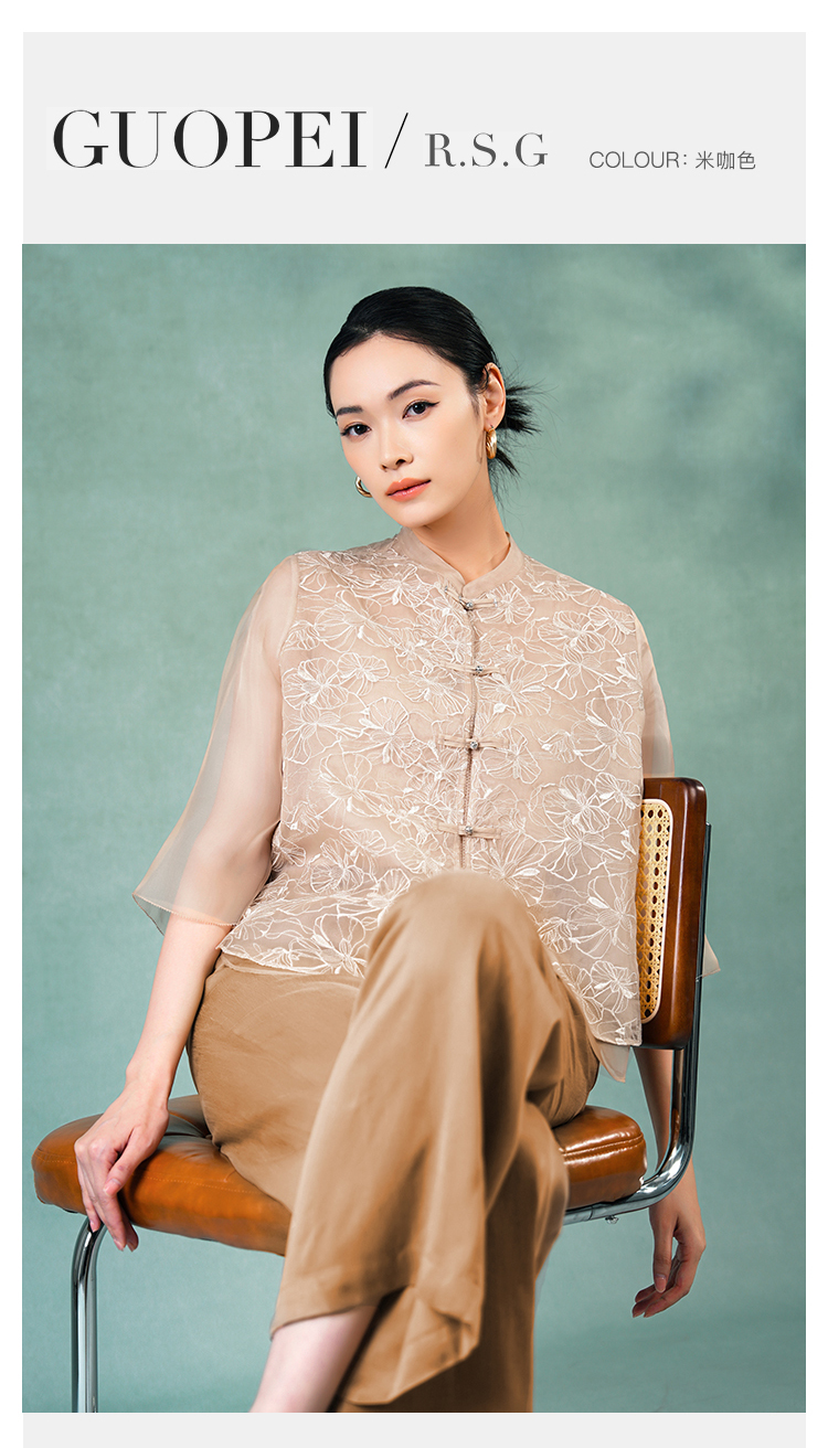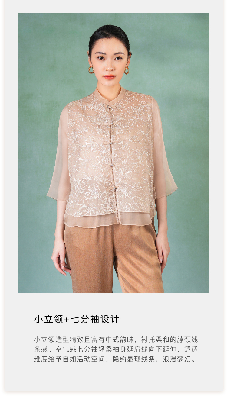 郭培成衣品牌精品系列《悦己花桑蚕丝系列》温暖沙丘七分袖薄上衣