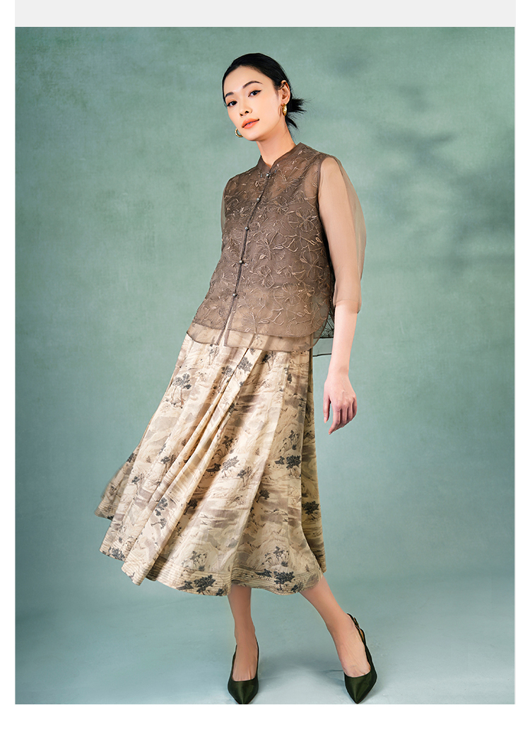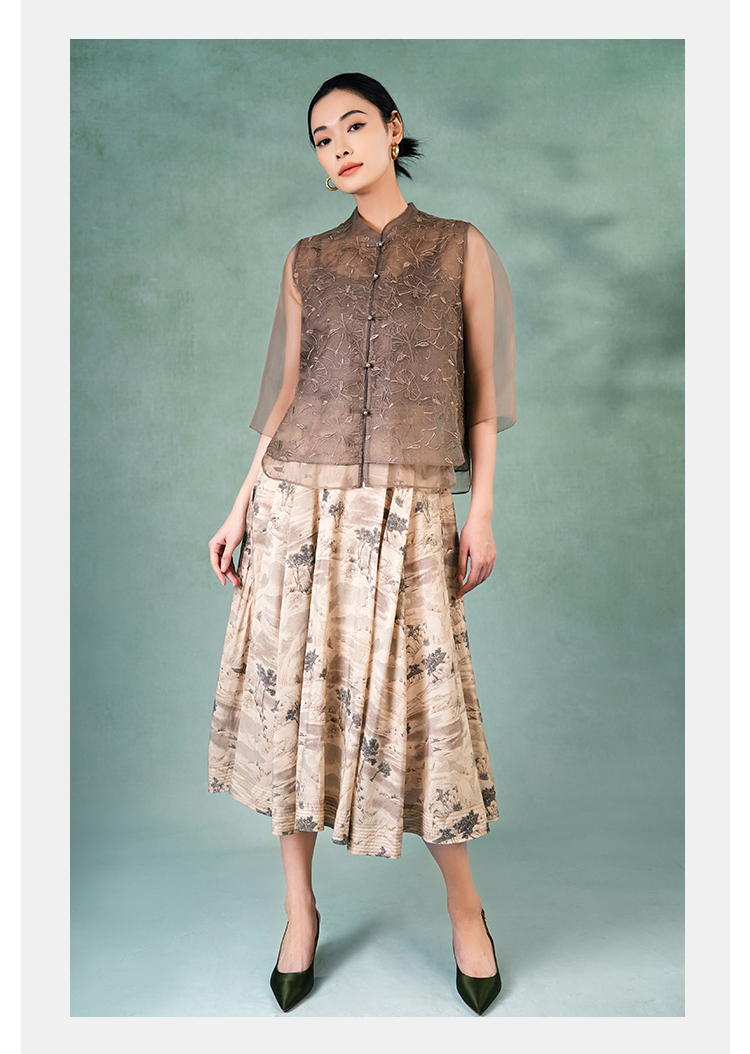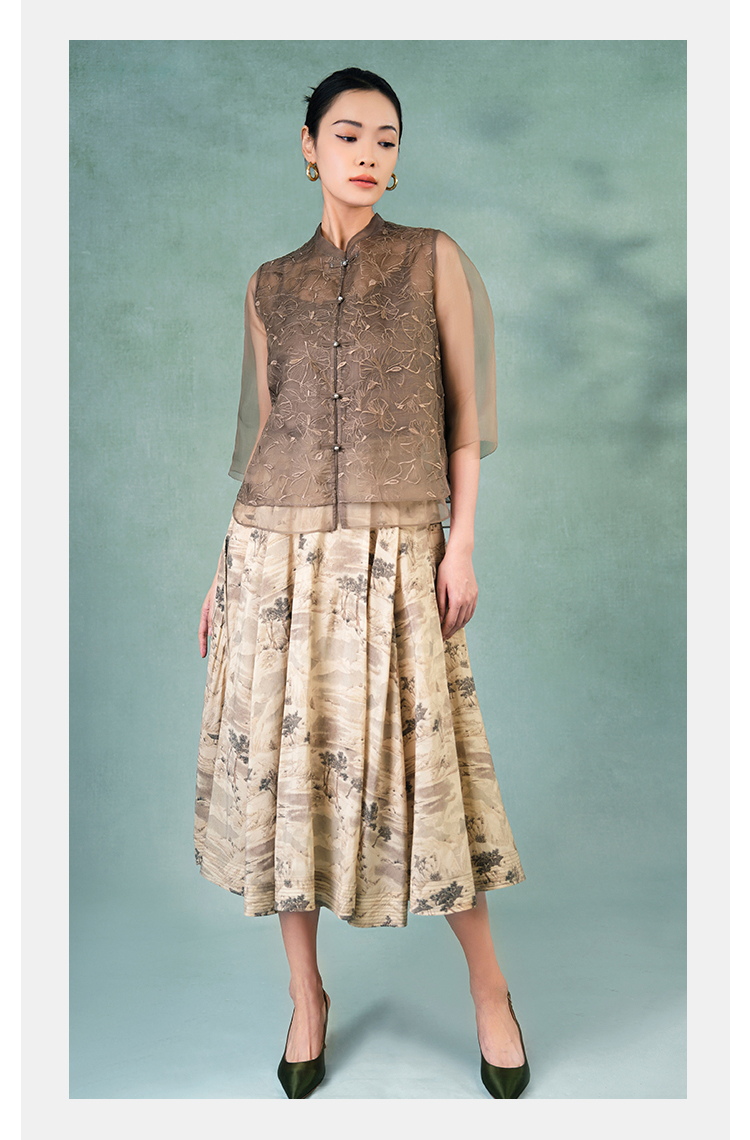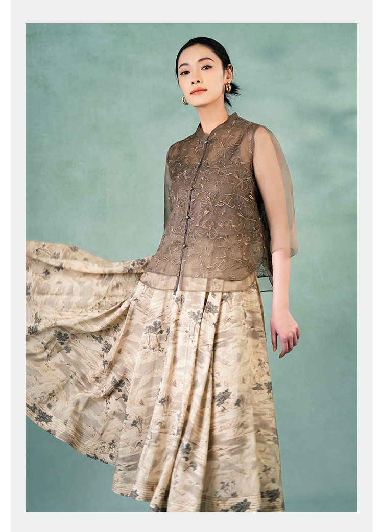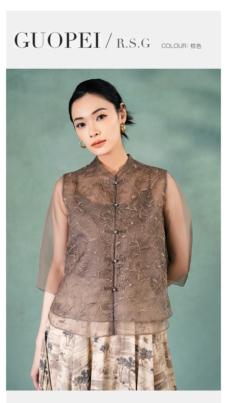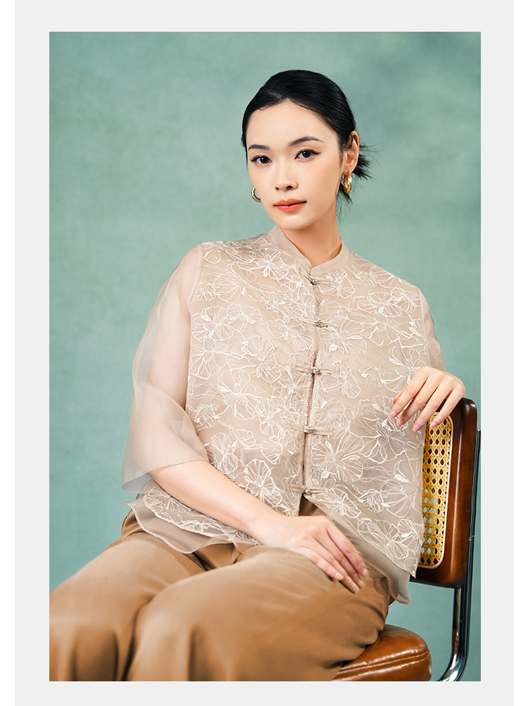 郭培成衣品牌精品系列《悦己花桑蚕丝系列》温暖沙丘七分袖薄上衣
