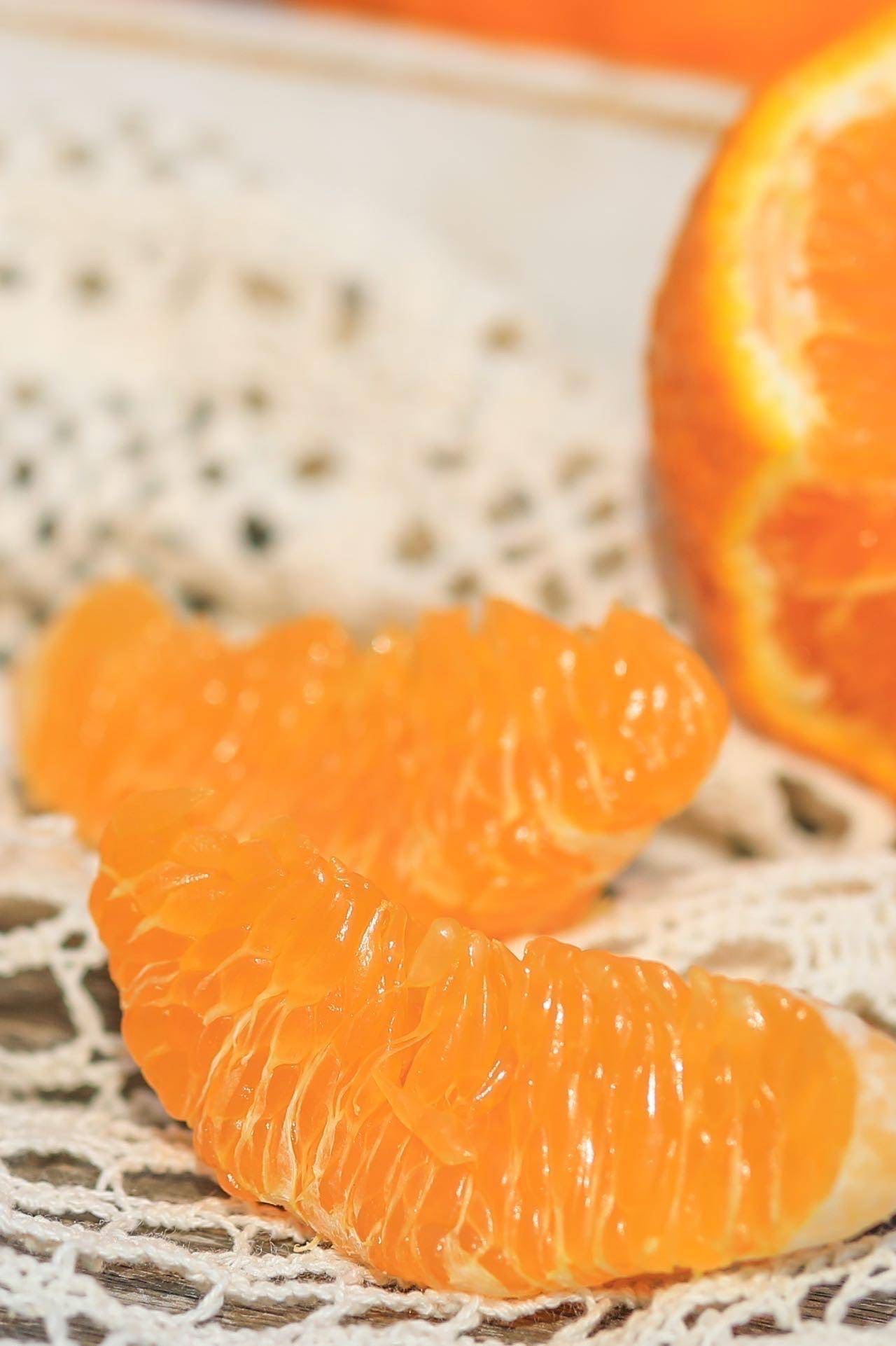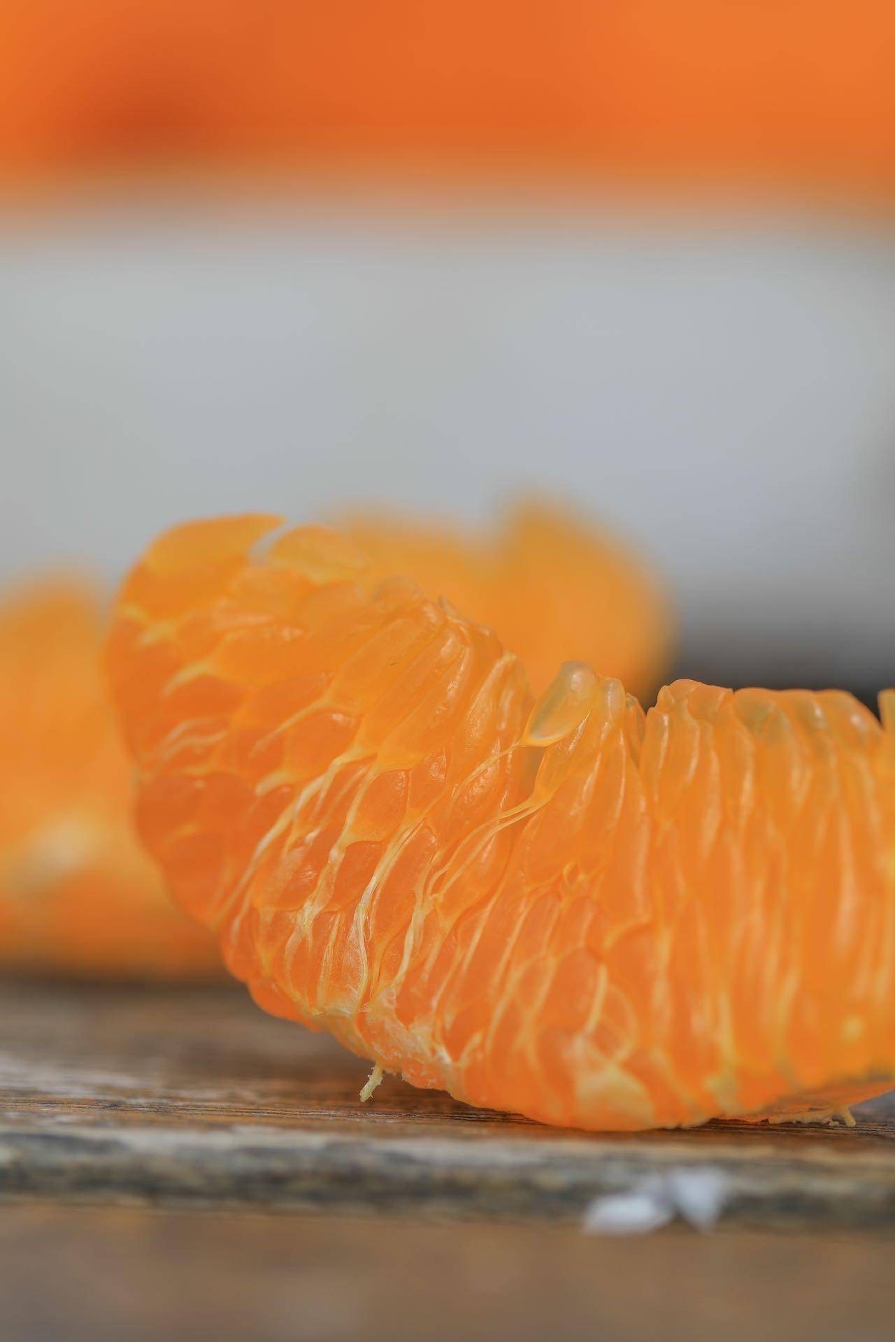 橙黄诱人的果肉瞬间映入眼睑,果瓣里的果肉粒粒分明,仿佛能看到包裹着的果汁在流动。