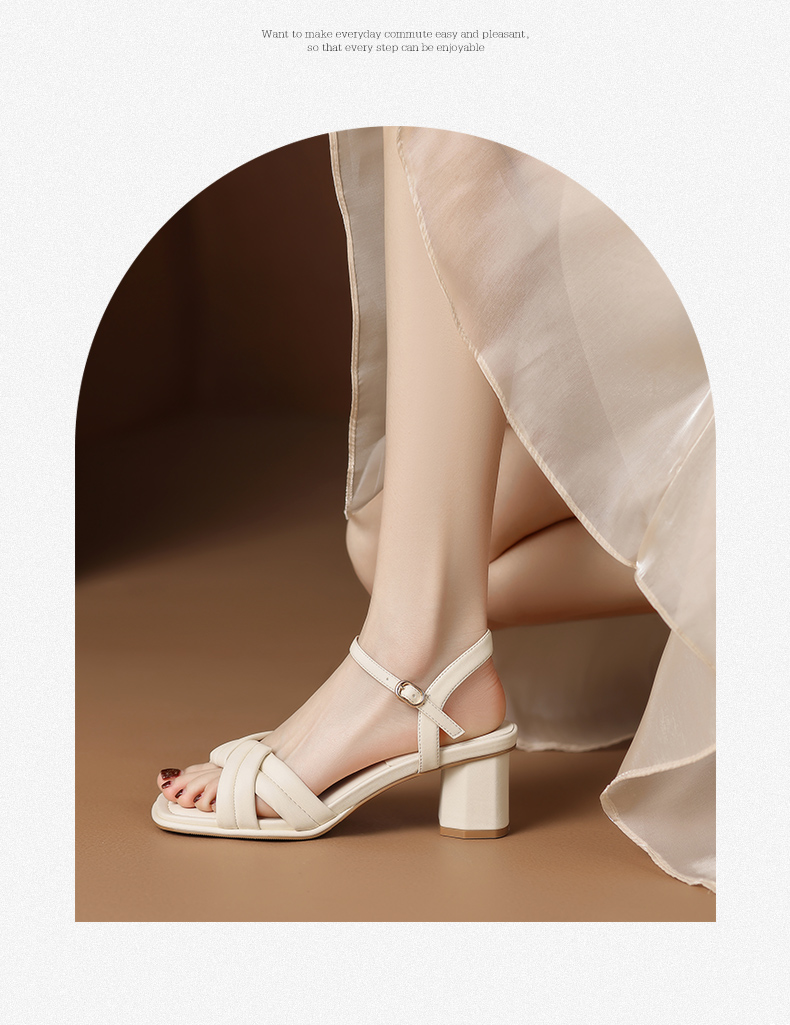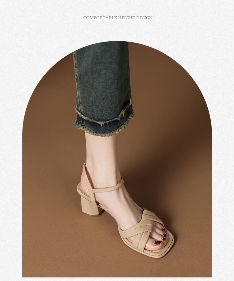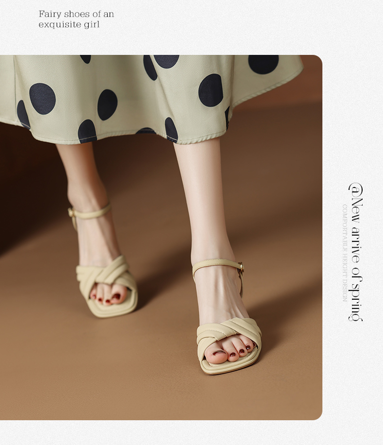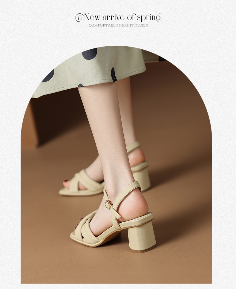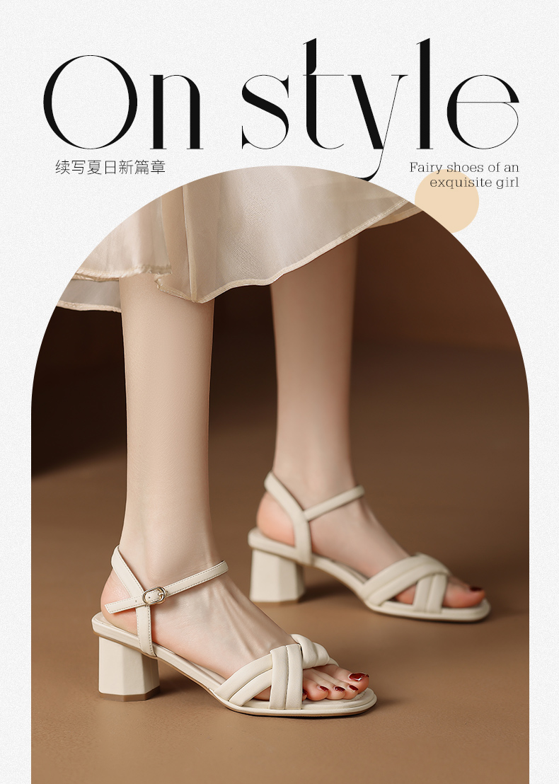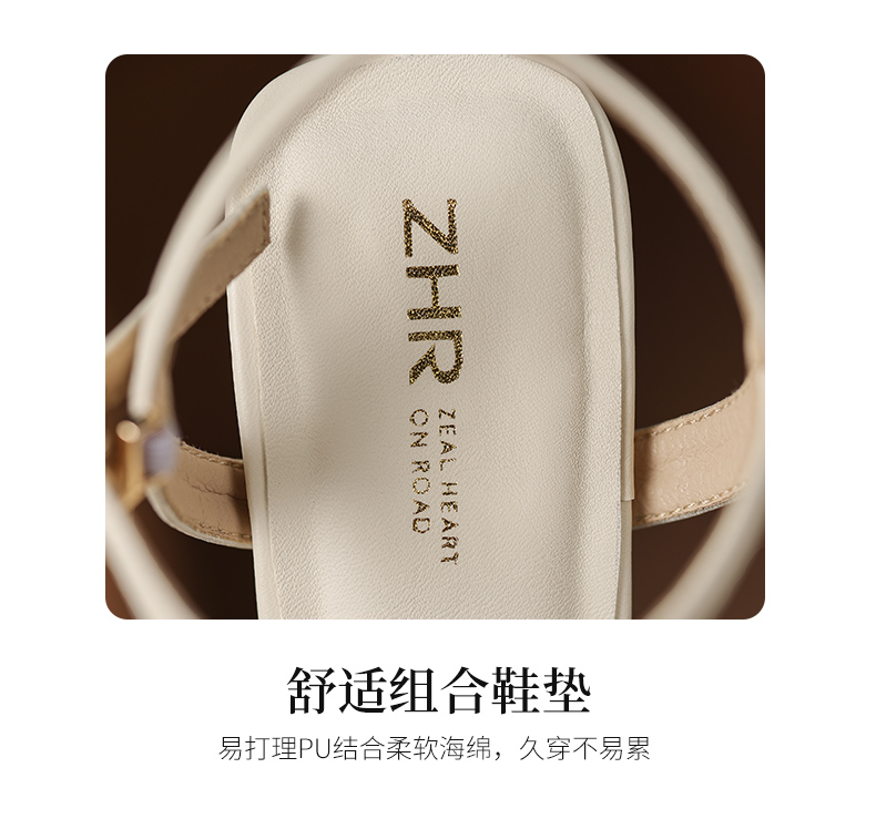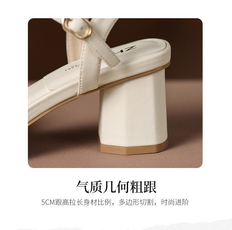 ZHR温柔复古凉鞋女2023新款时尚粗跟高跟鞋一字带单鞋ins风鞋