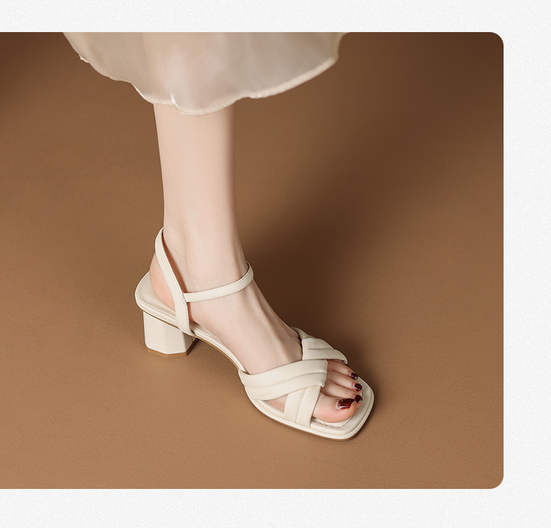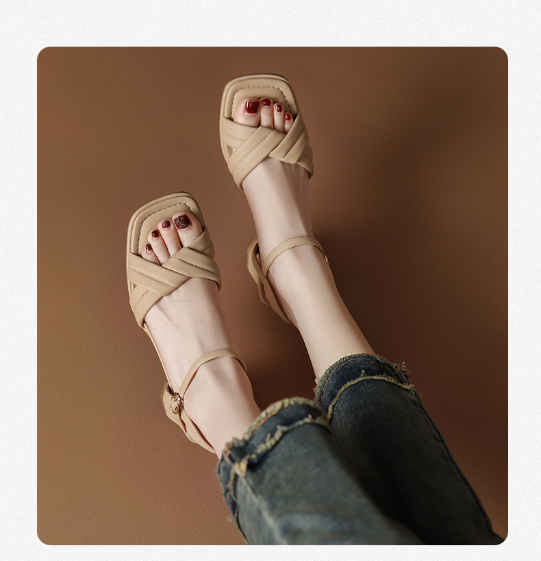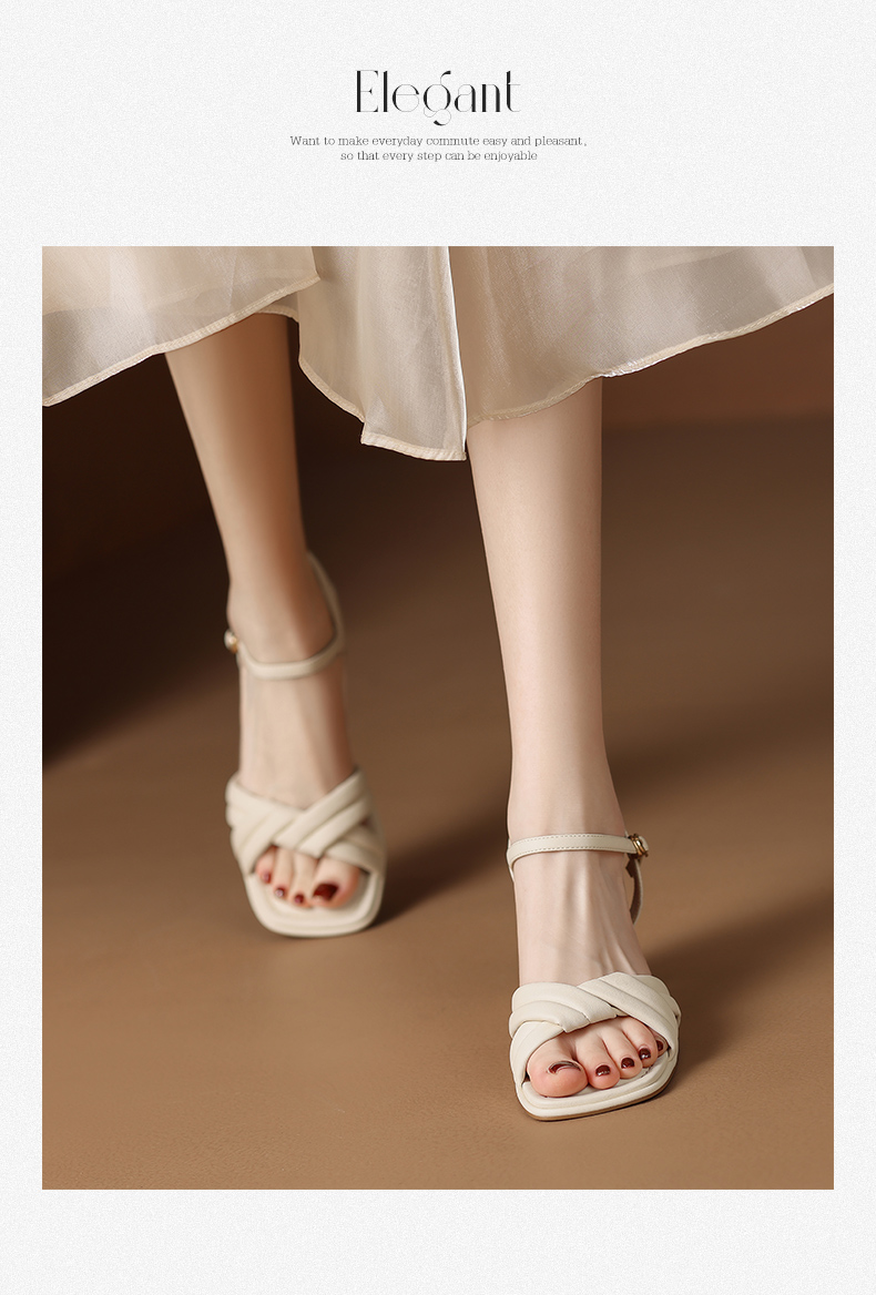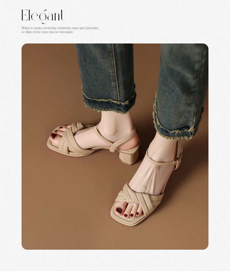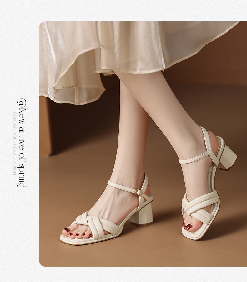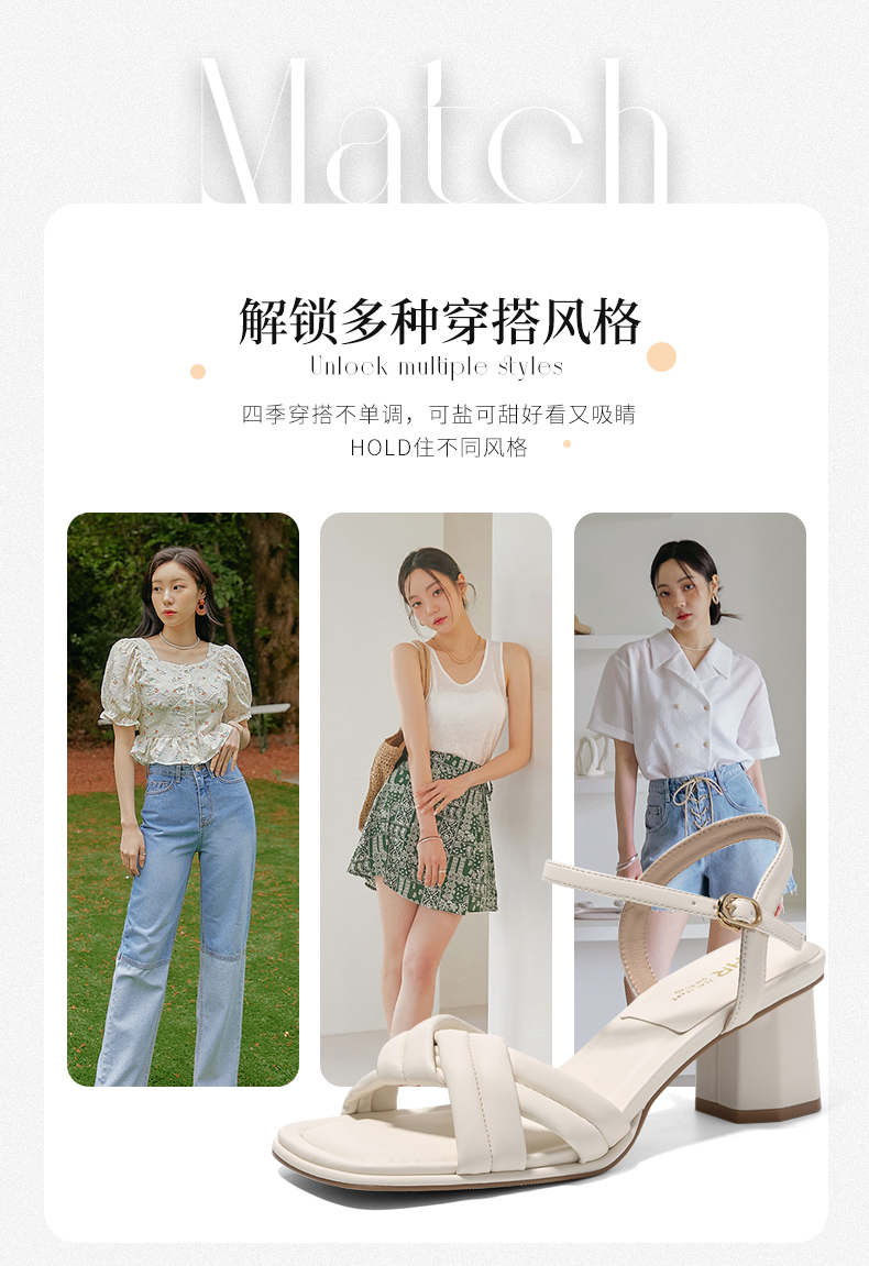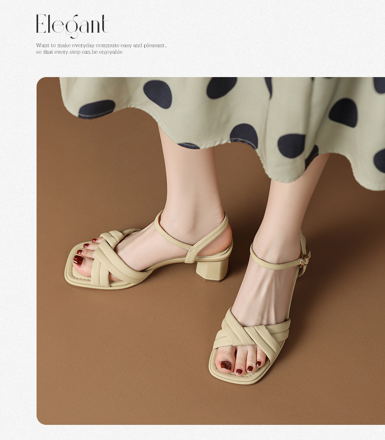 ZHR温柔复古凉鞋女2023新款时尚粗跟高跟鞋一字带单鞋ins风鞋
