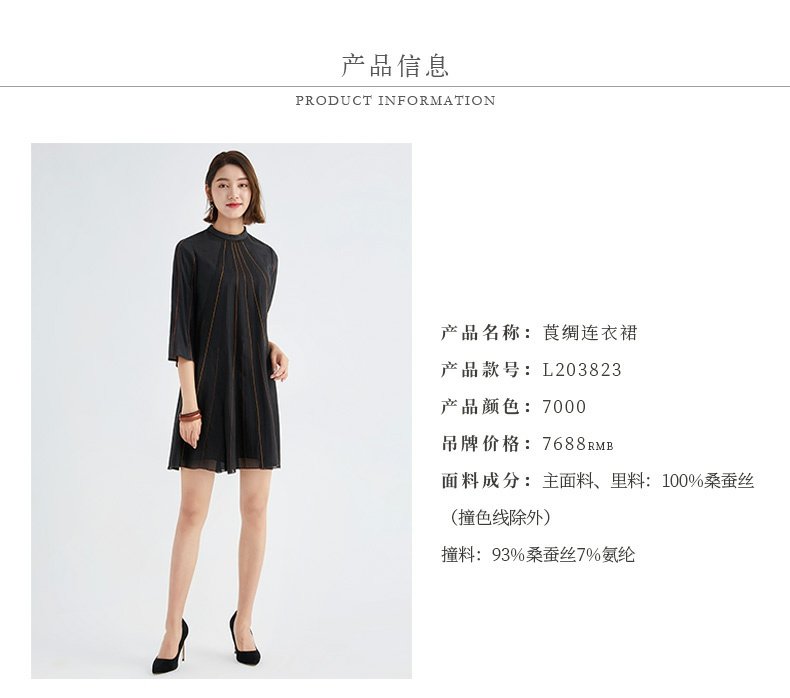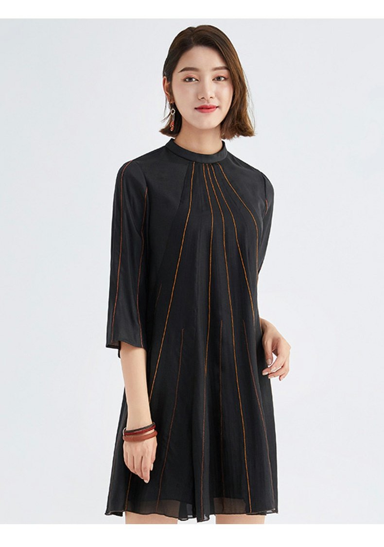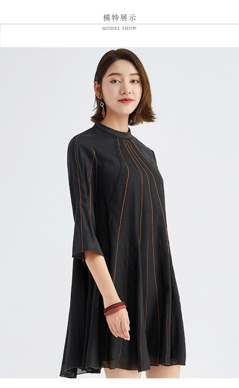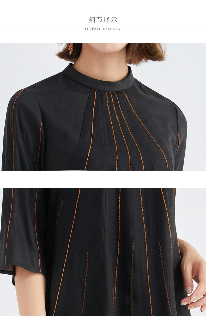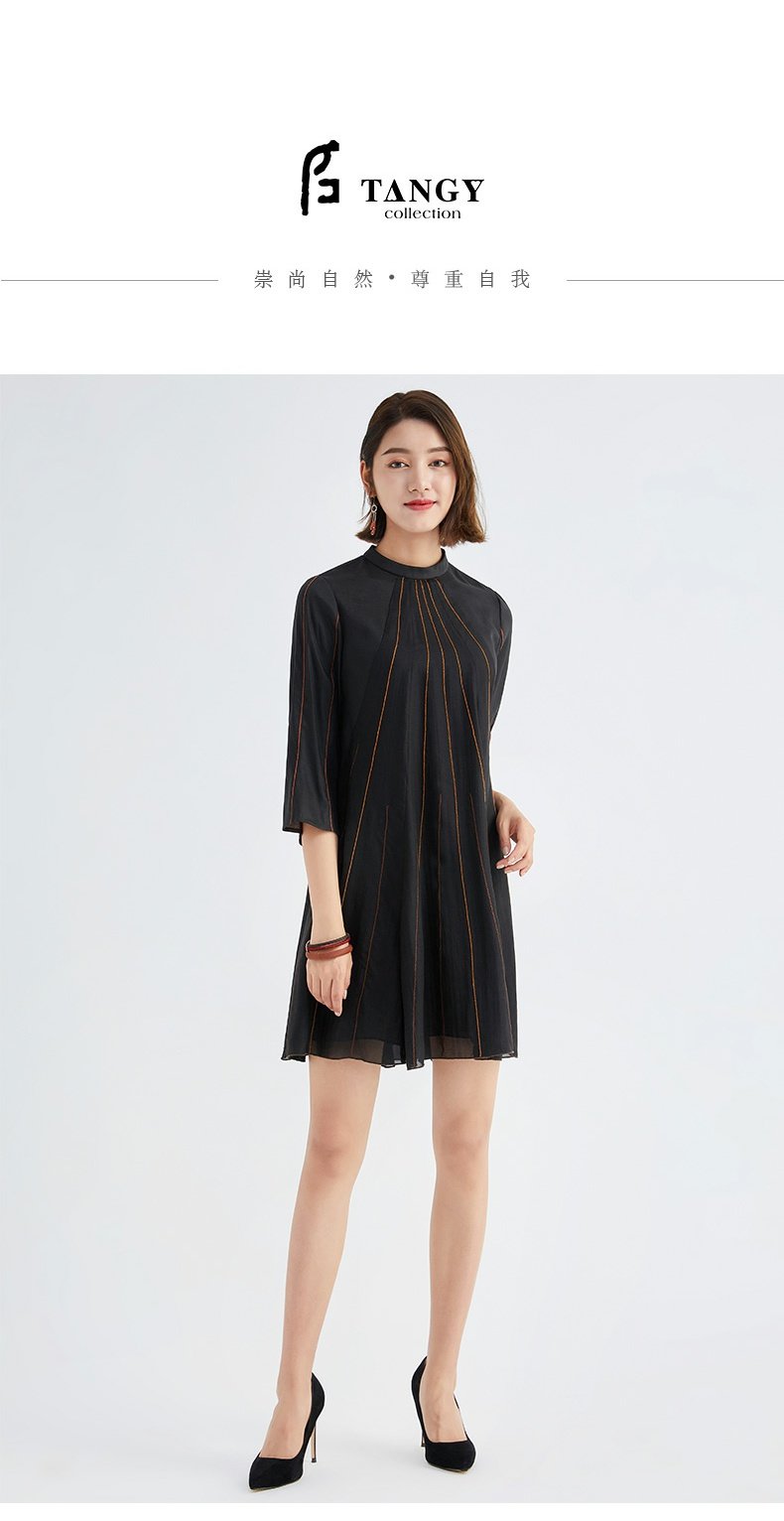 TANGY Collection/天意精品春秋新品林隐系列真丝线迹莨绸连衣裙