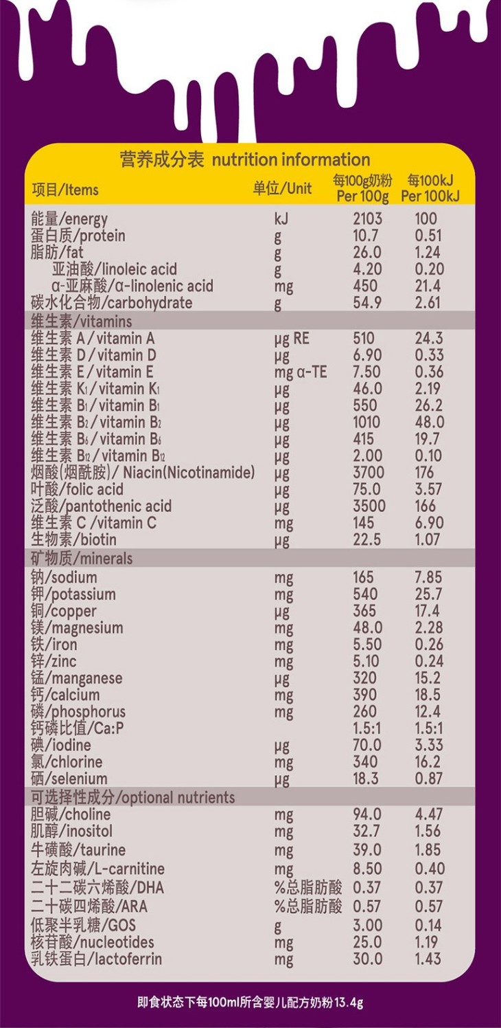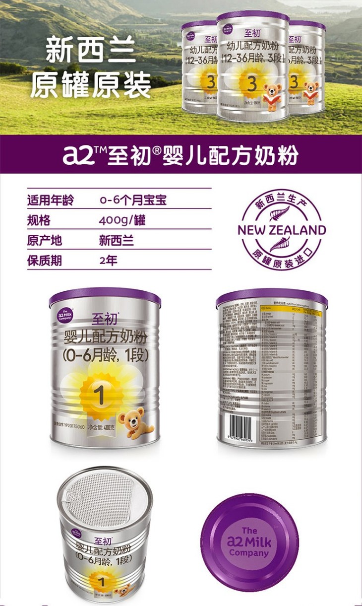a2白金婴儿配方奶粉(1段) 900g