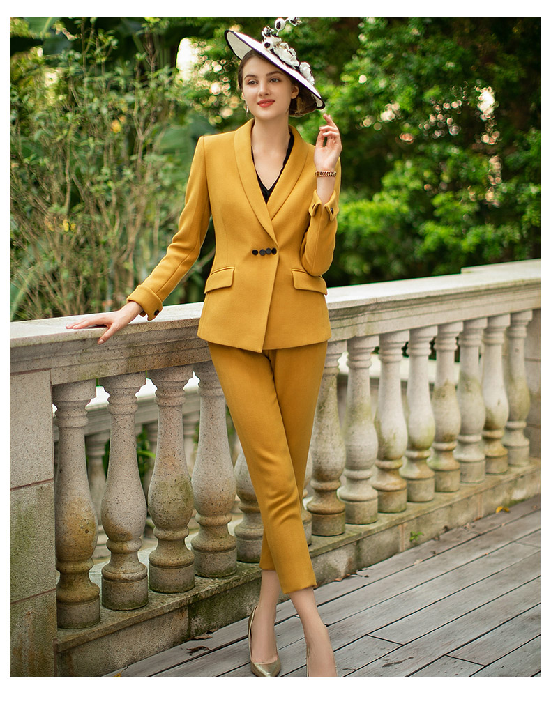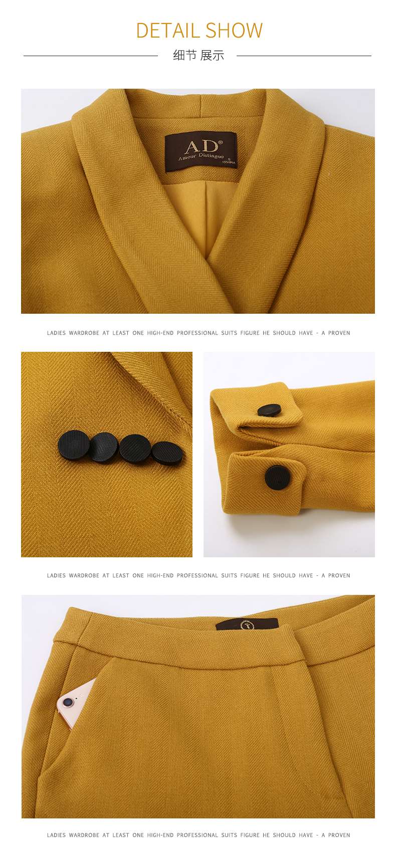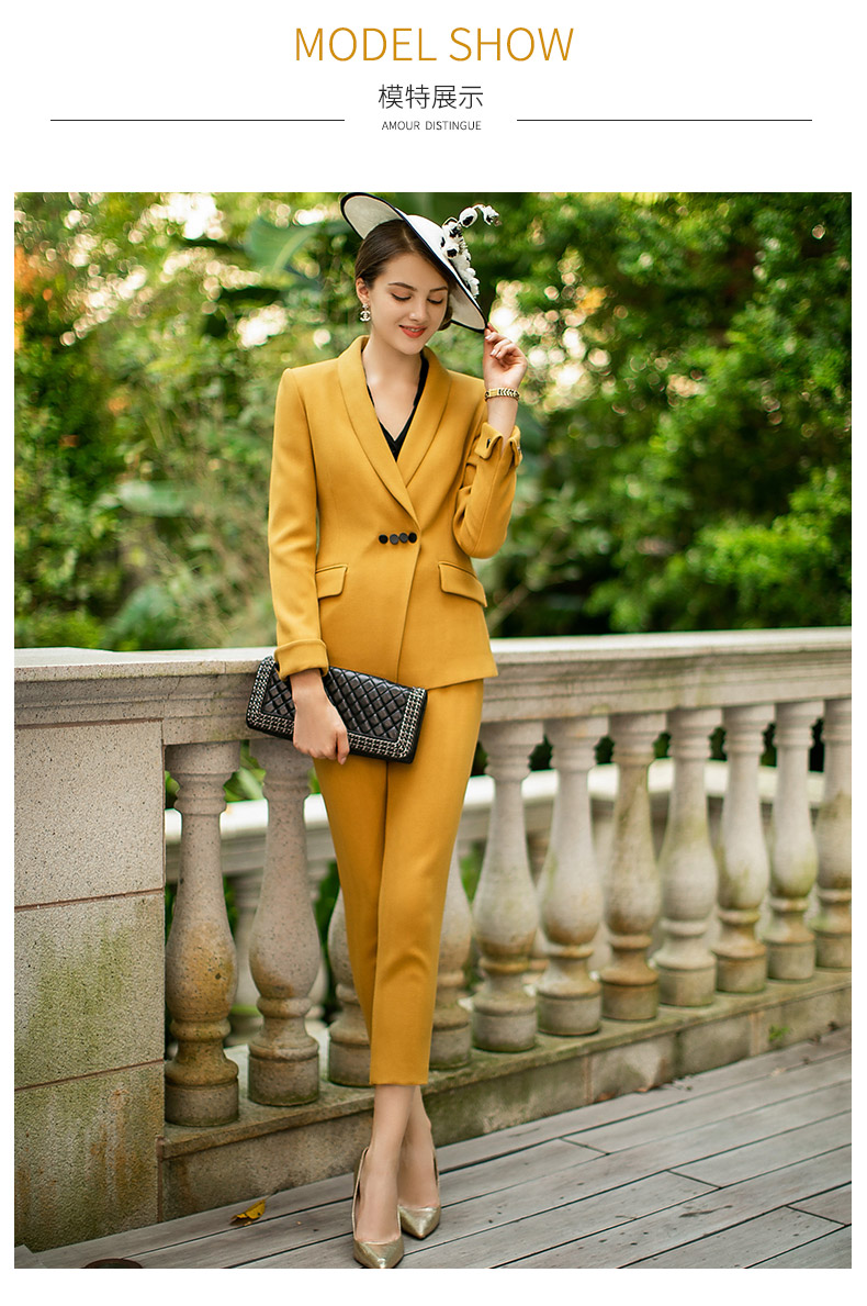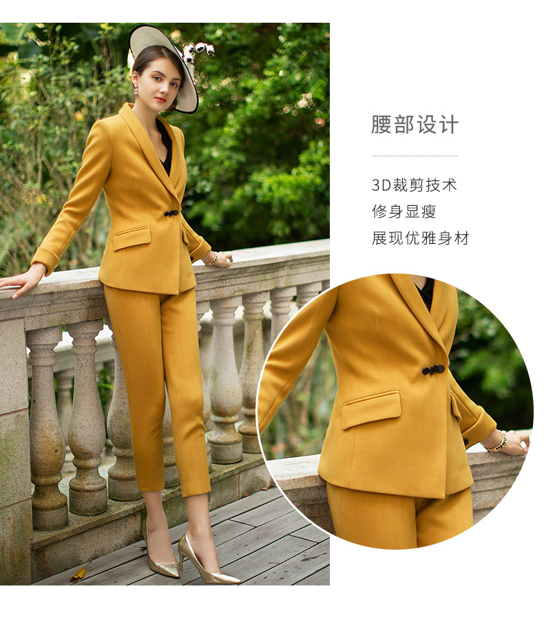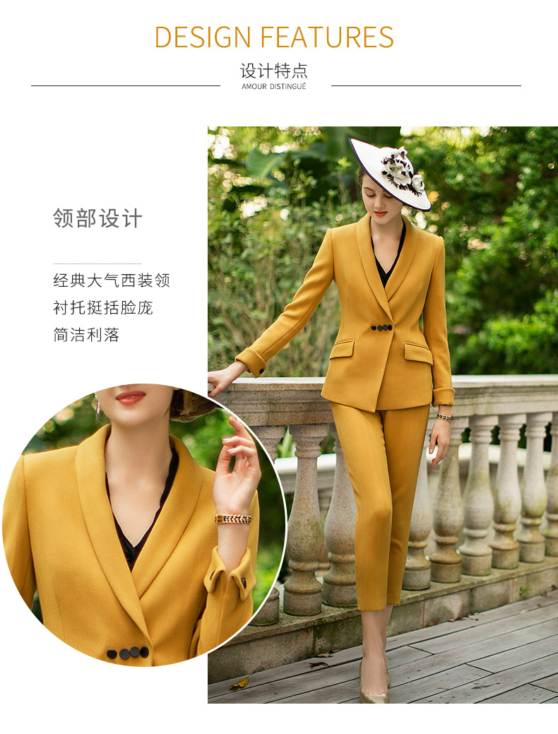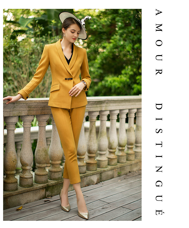 IWY/高端黄色西装套装女韩版休闲美容院工装干练职业装OL 213129C1+P3