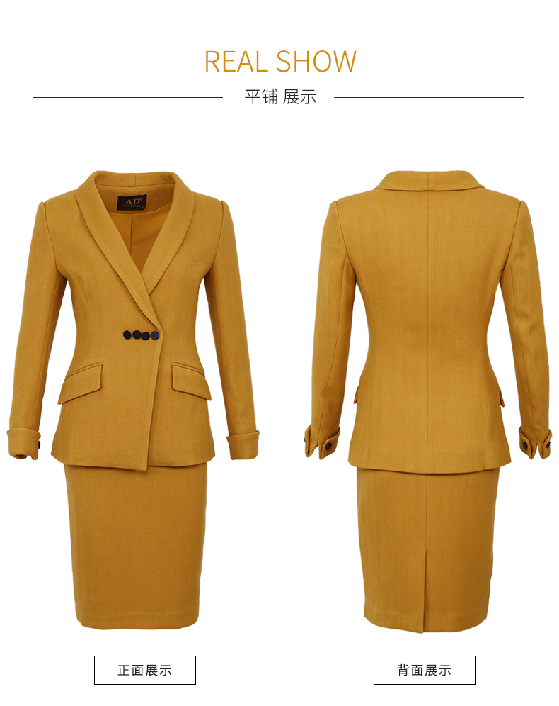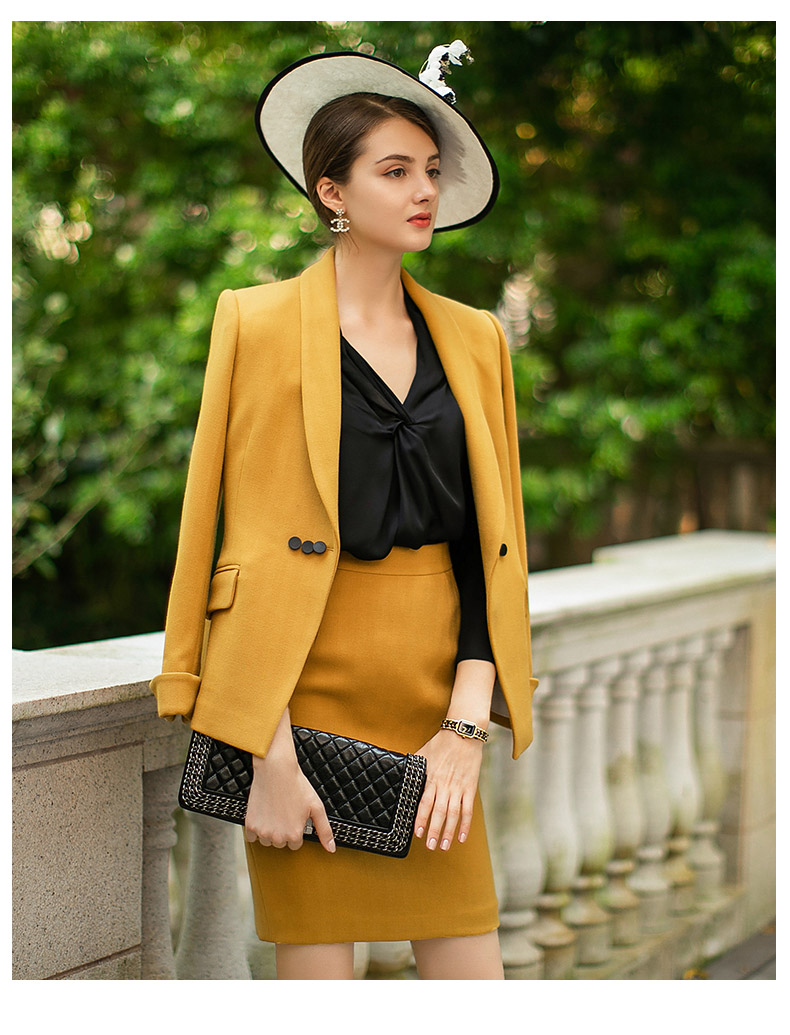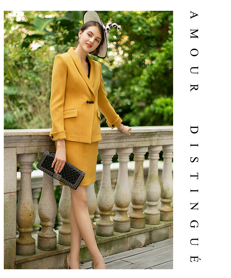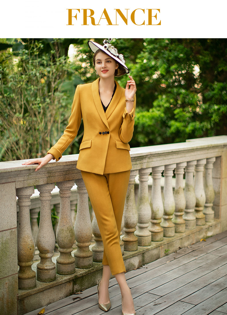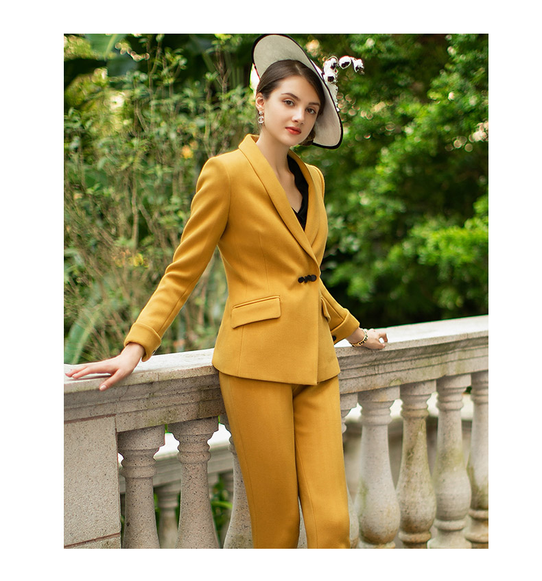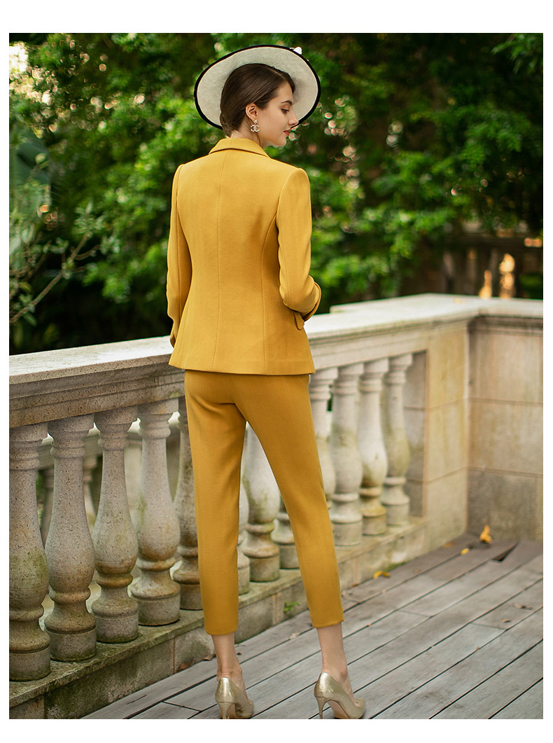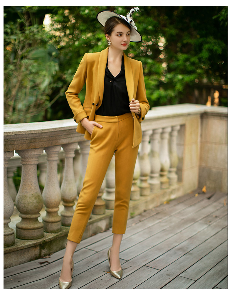 IWY/高端黄色西装套装女韩版休闲美容院工装干练职业装OL 213129C1+P3