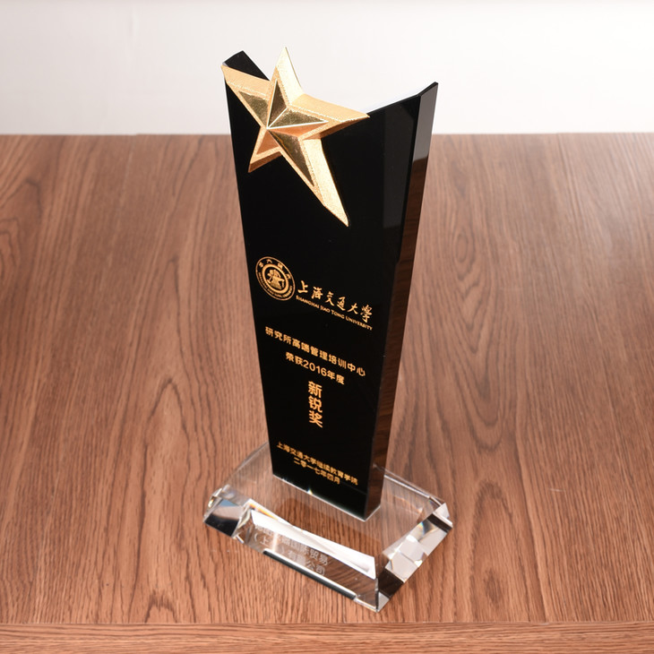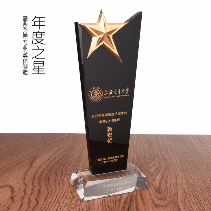 年度之星奖杯五角星奖杯定做黑水晶奖杯刻字高档商务纪念品授权牌