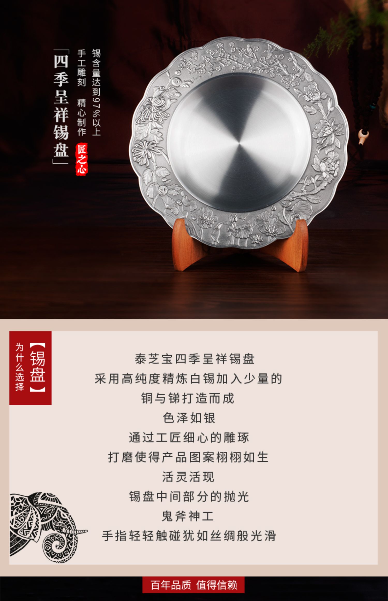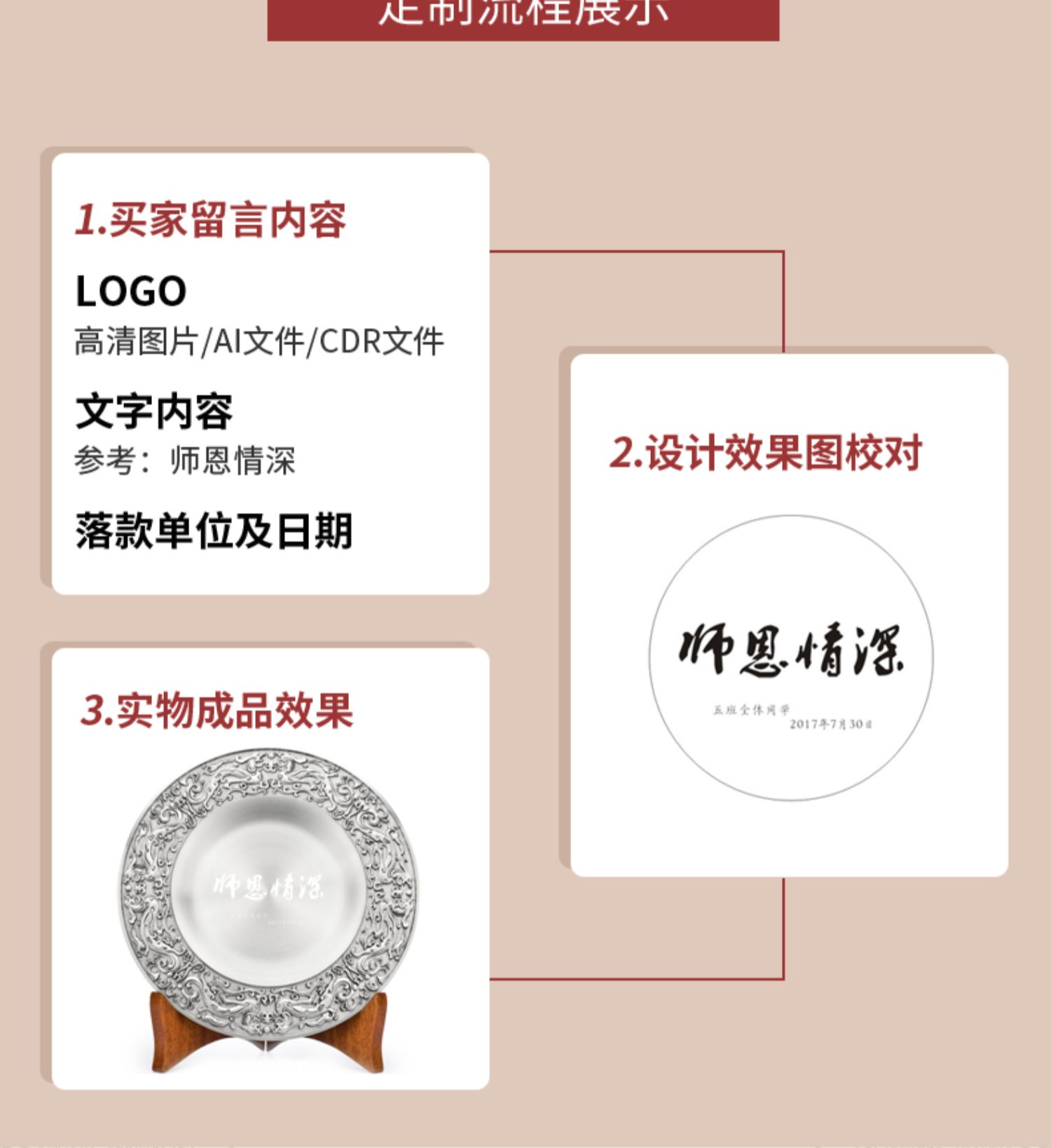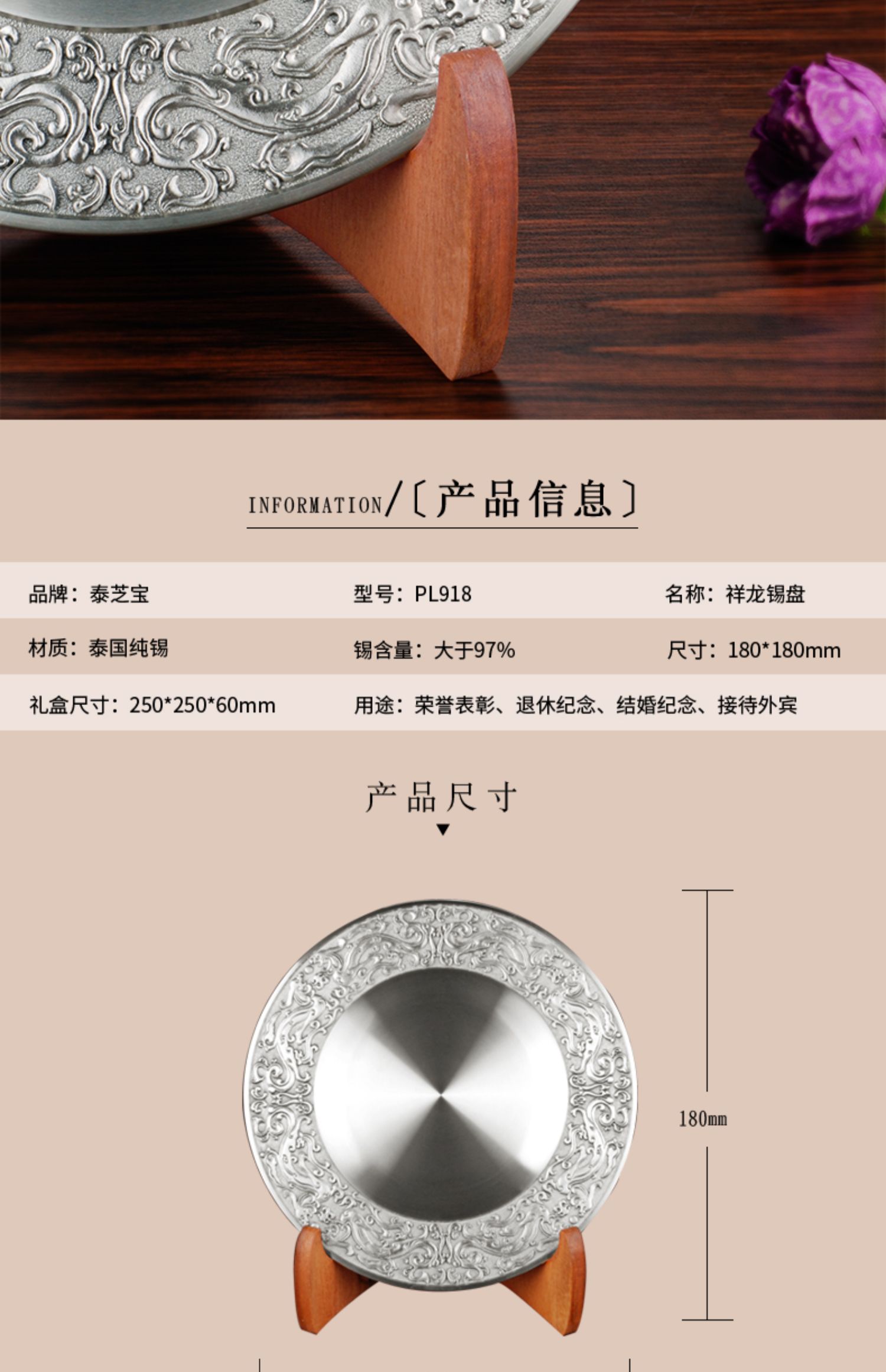 泰芝宝锡盘高档奖盘定制纪念品摆件退休同事纪念公司表彰礼品刻字PL024