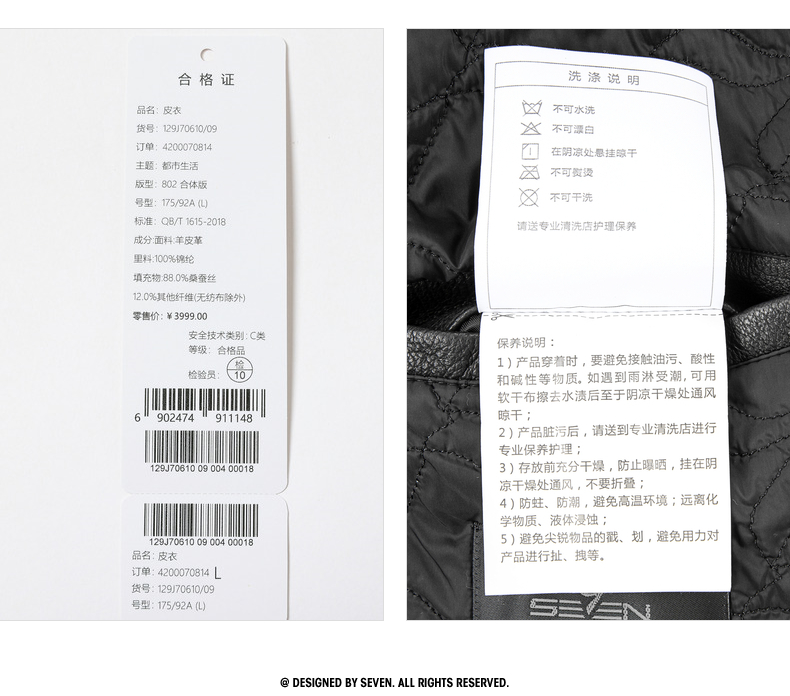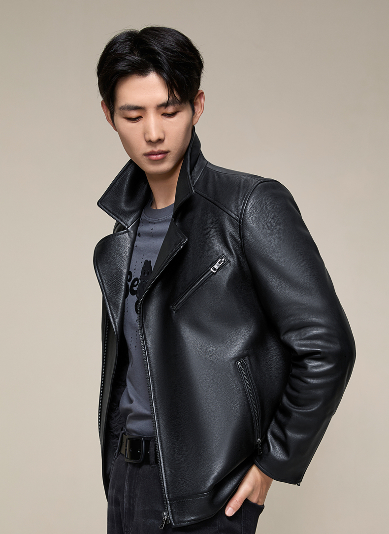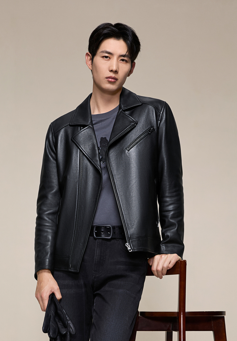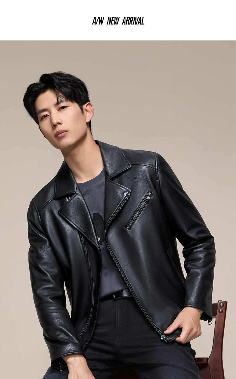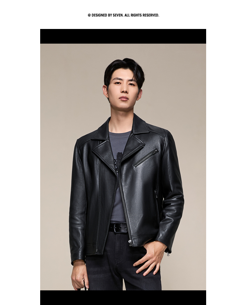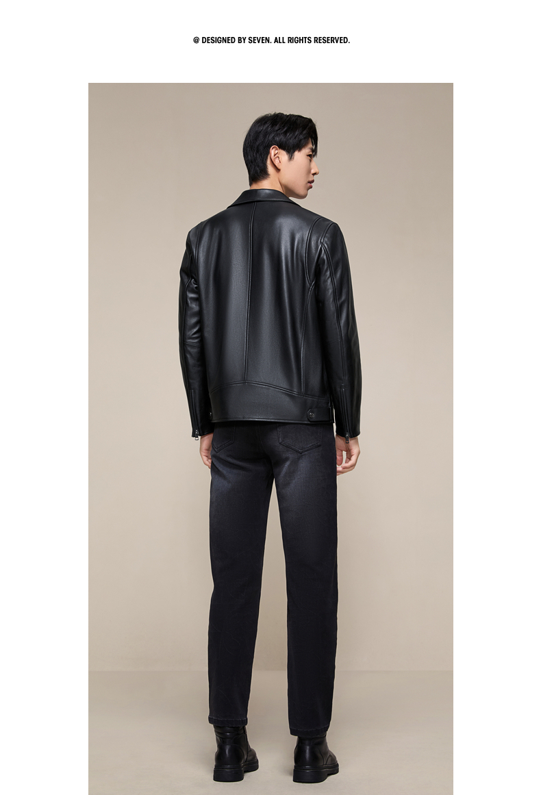 【绵羊皮/桑蚕丝填充】柒牌翻领真皮皮衣2025秋冬机车防风外套男129J70610