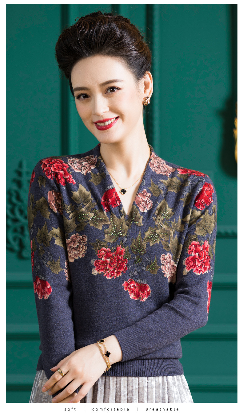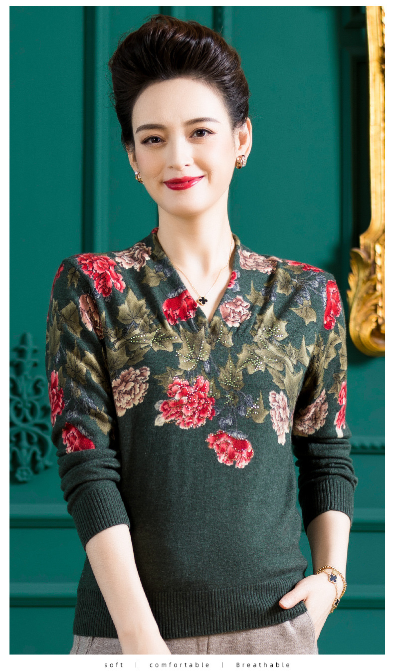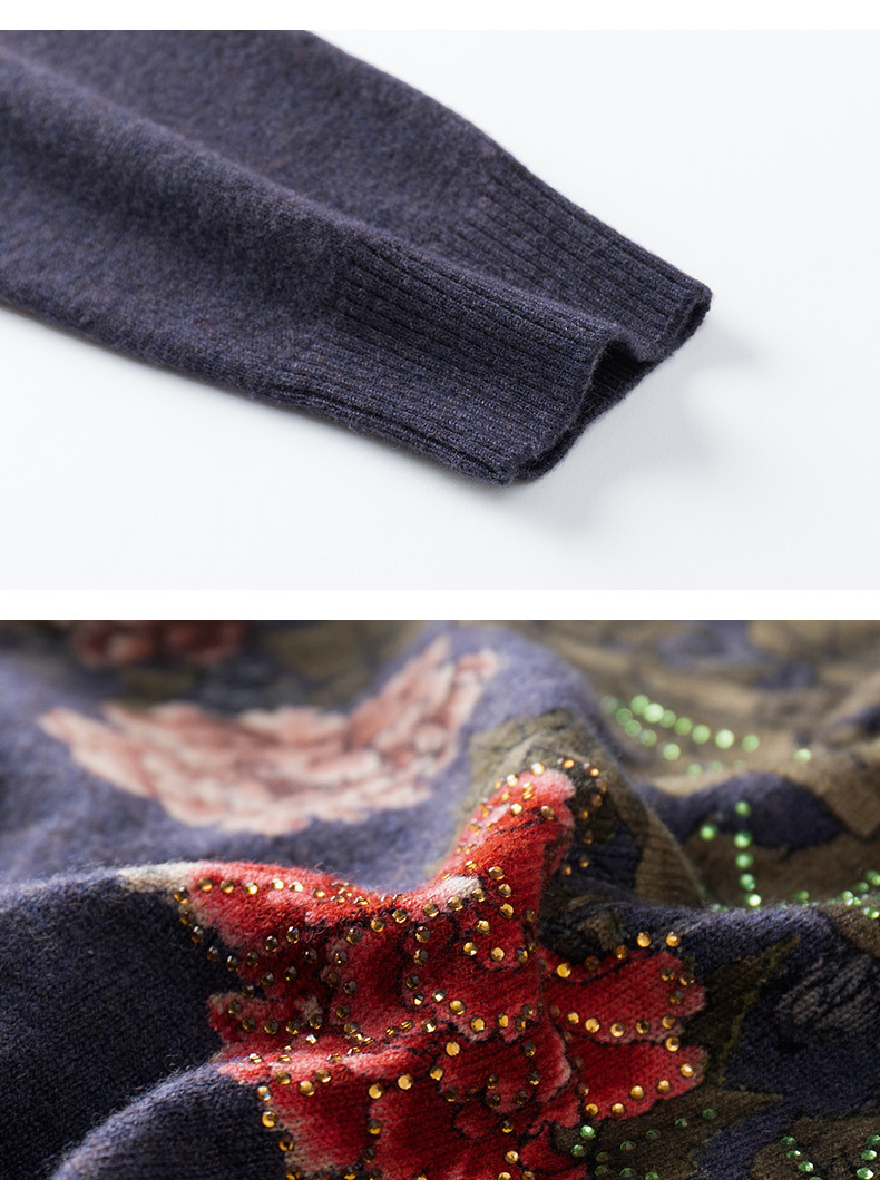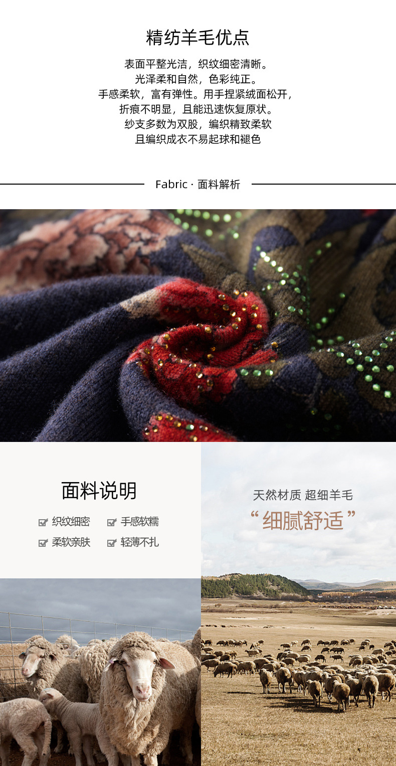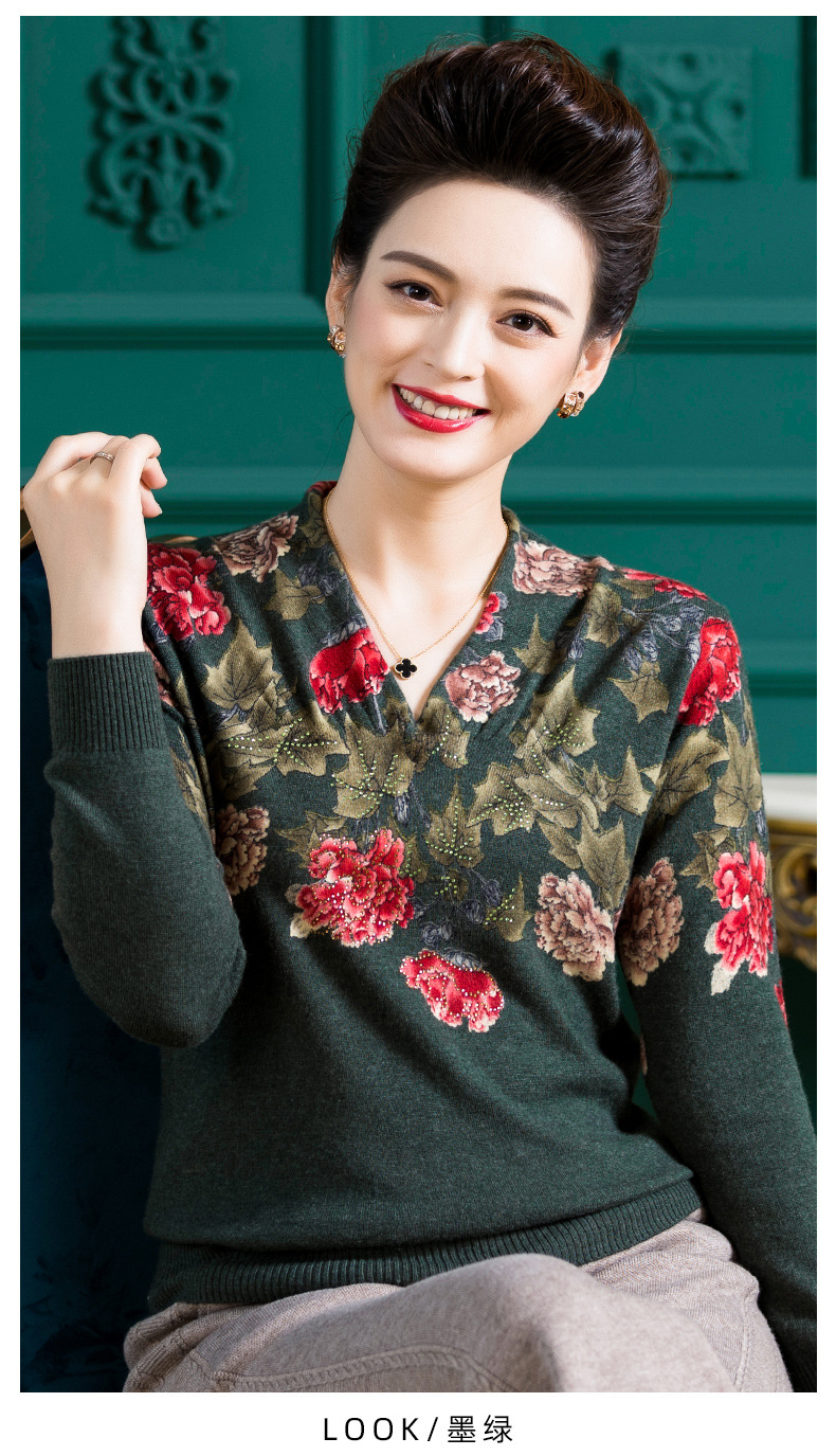 V领复古羊毛衫,镶钻针织毛衣长袖打底衫WY-M98939