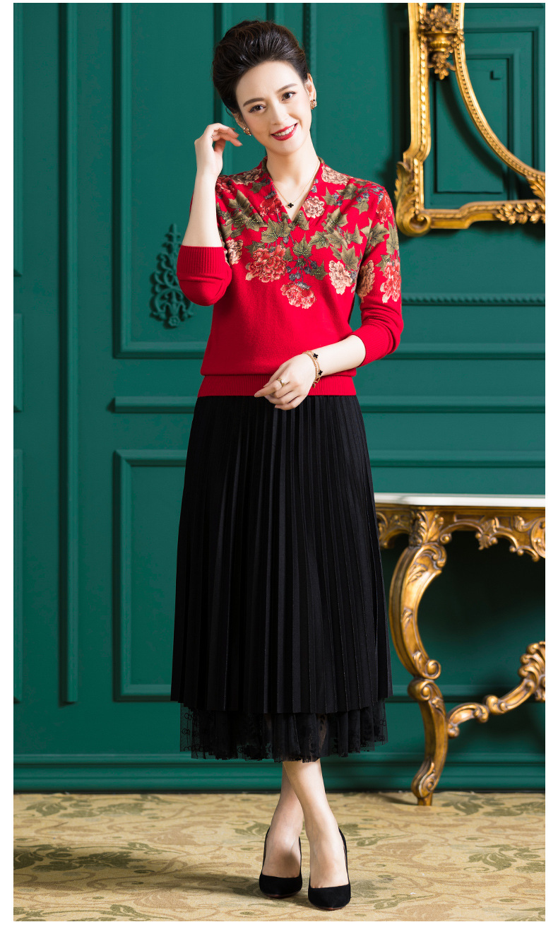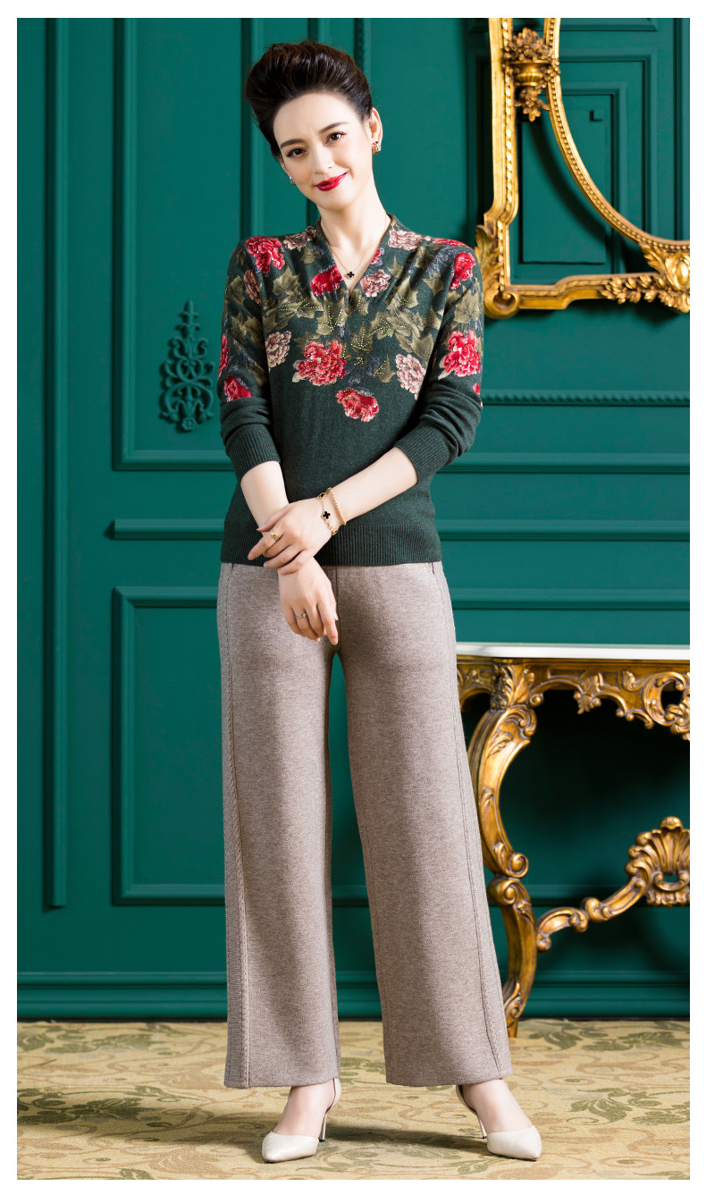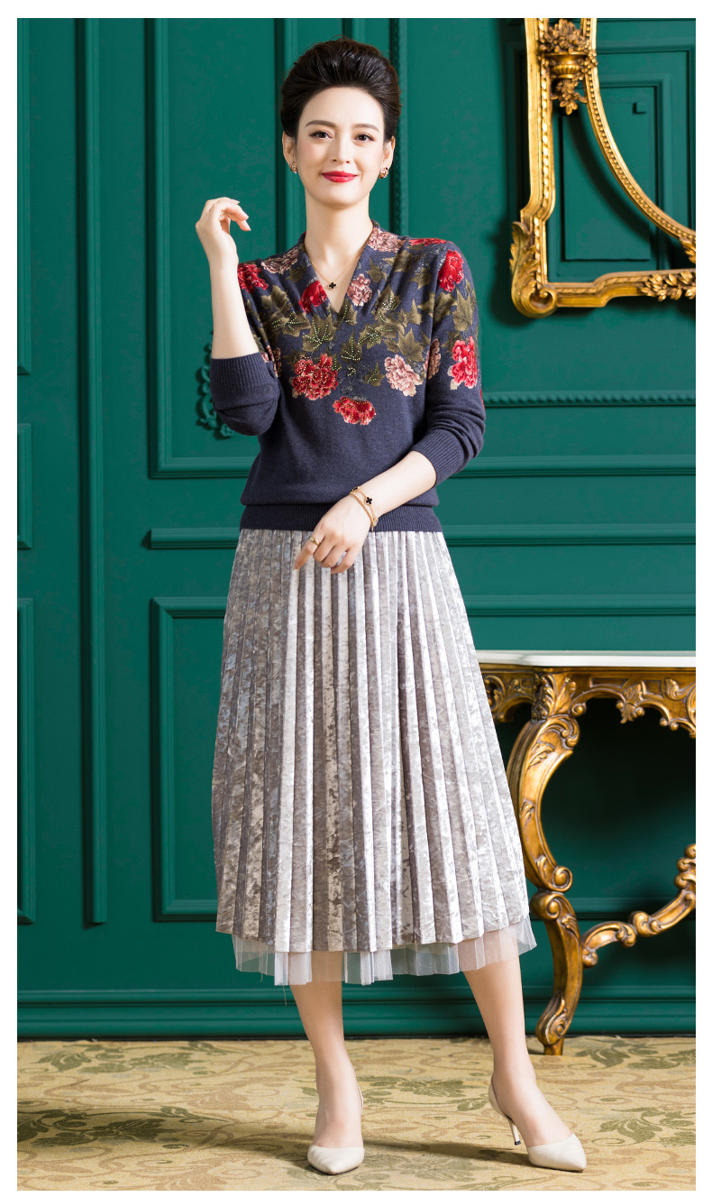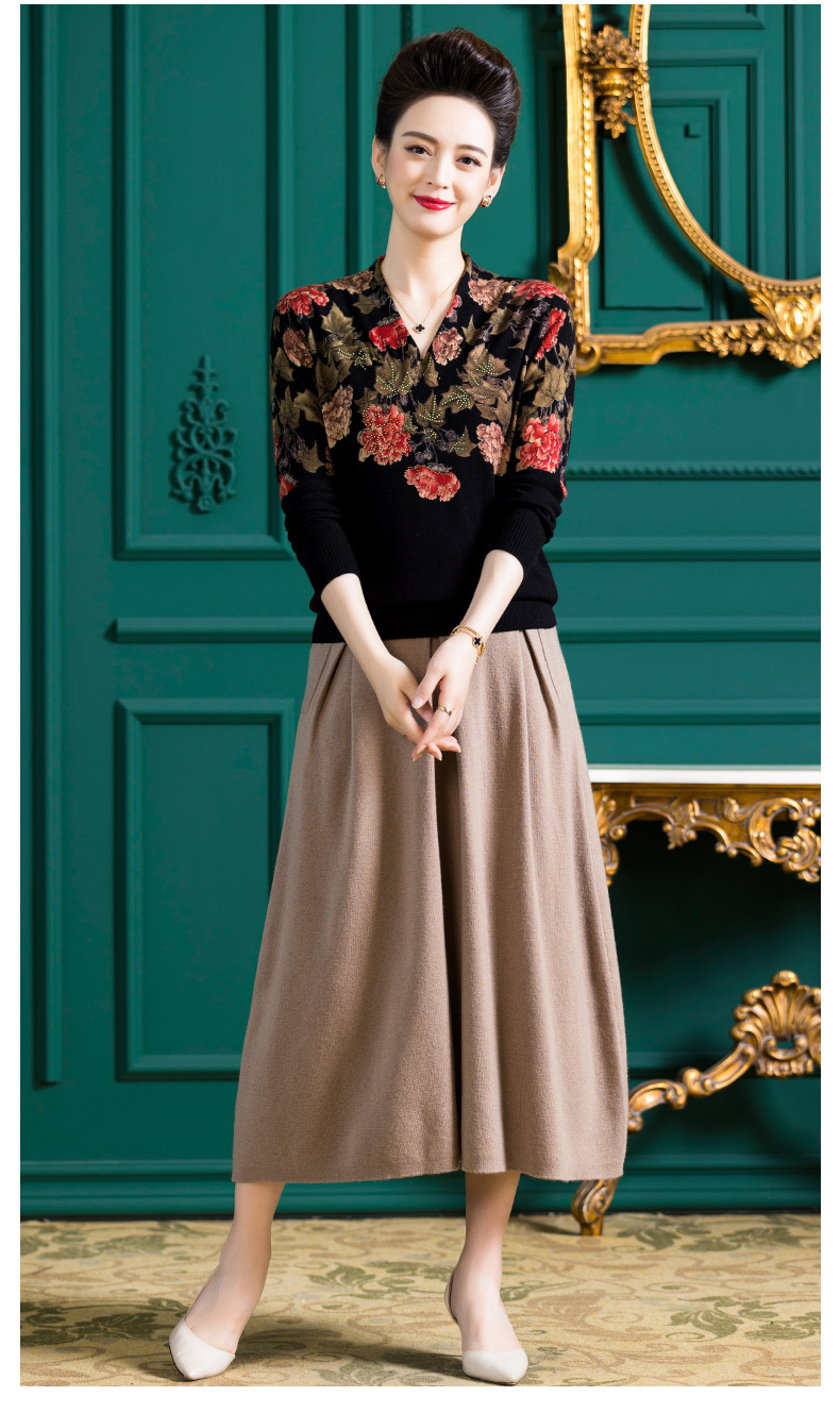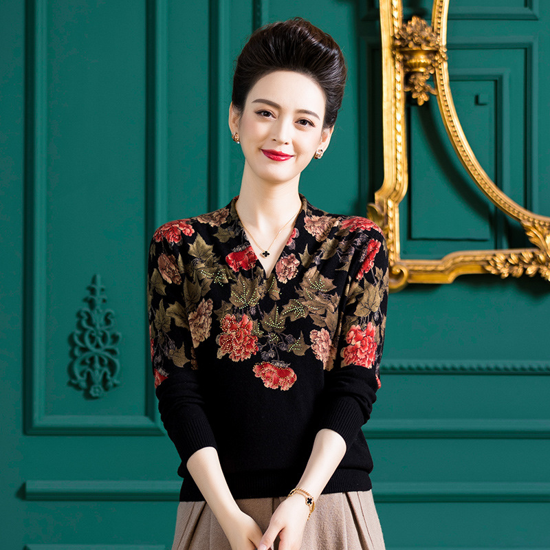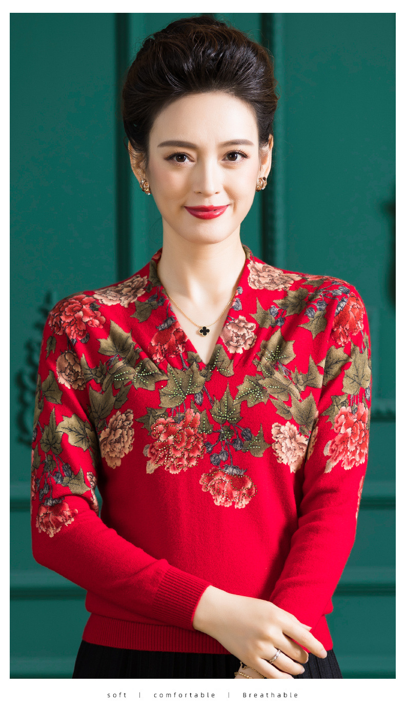 V领复古羊毛衫,镶钻针织毛衣长袖打底衫WY-M98939