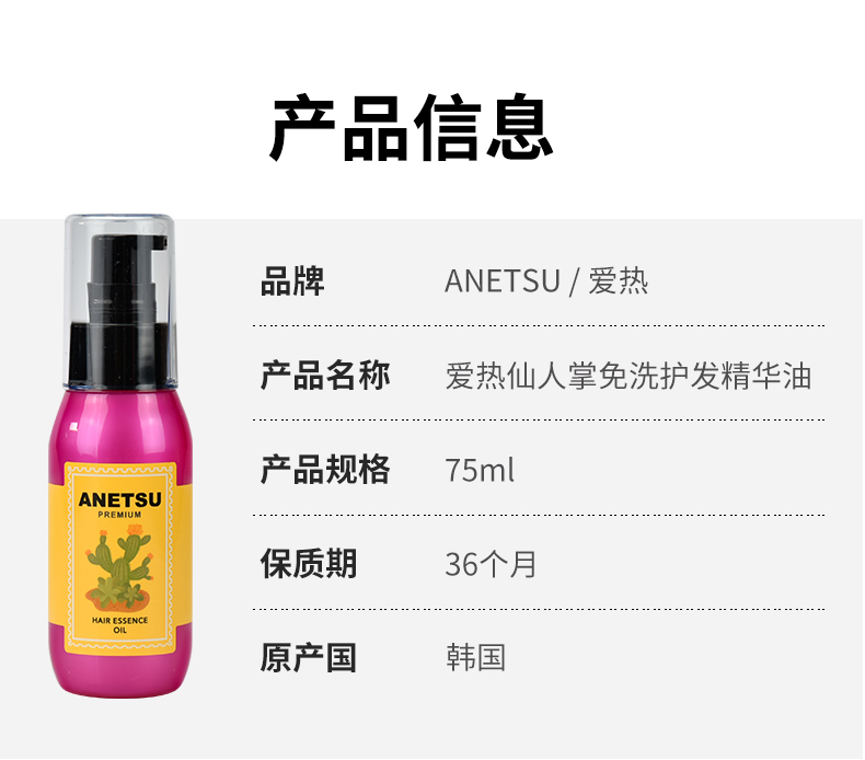 韩国原装进口爱热ANETSU仙人掌护发精华75ml/瓶 A-4171(27年6月)