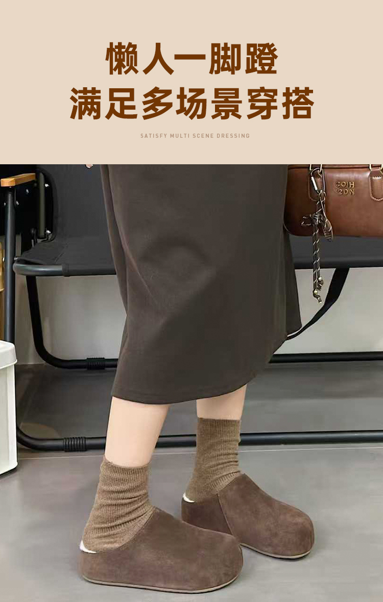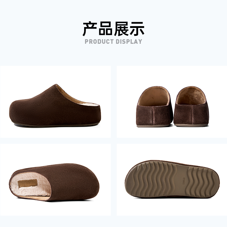 【实付满399送保温杯】【加绒厚底勃肯鞋】休闲保暖女士棉鞋一脚蹬居家棉拖鞋