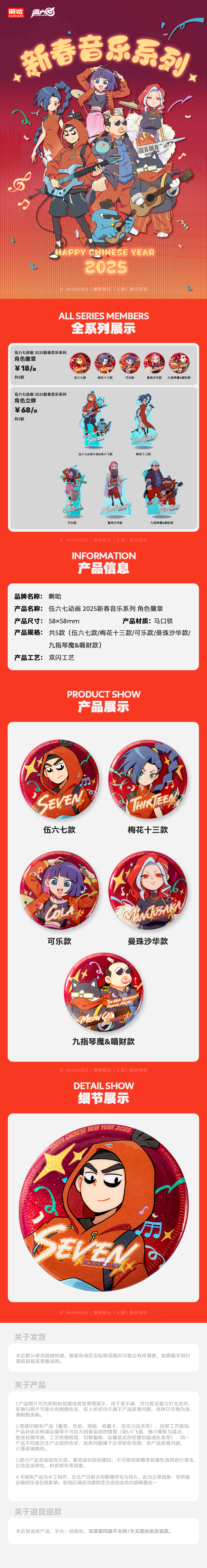 伍六七动画 官方周边 2025新春音乐系列 角色徽章