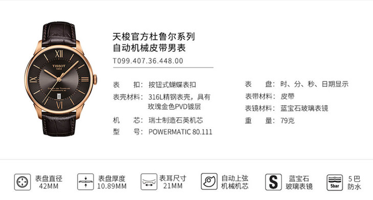 | 品牌 | 天梭 TISSOT | 型号 | T099.407.36.448.00 |