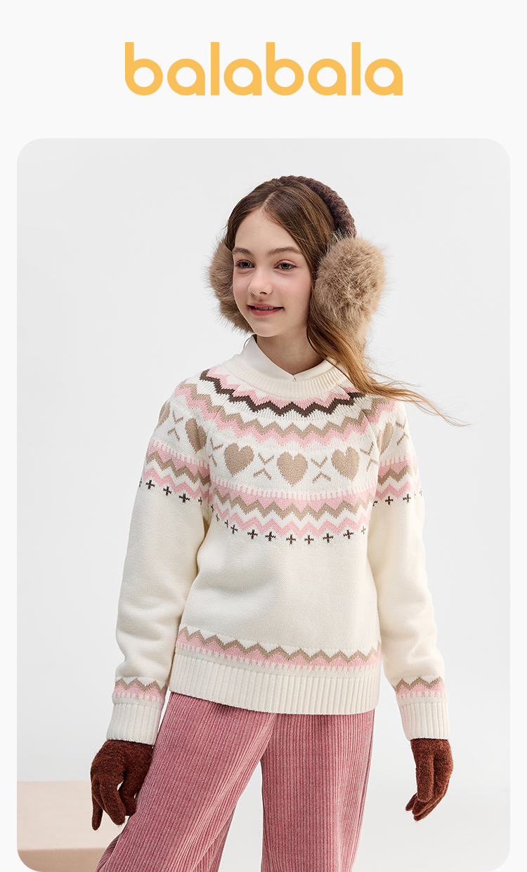 巴拉巴拉balaOne童装儿童毛衫2025新款冬女童费尔岛毛衣时尚上衣