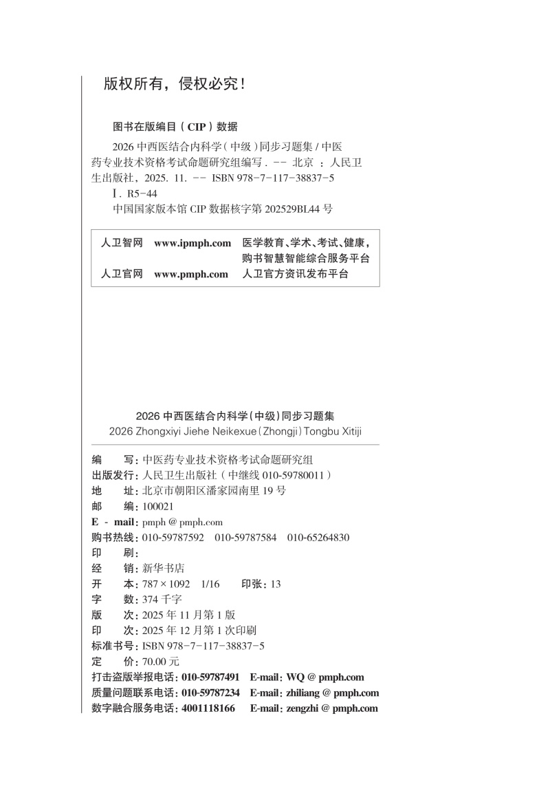 2026中西医结合内科学(中级)同步习题集 中医药专业技术资格考试命题研究组编写 2026职称考试 9787117388375人民卫生出版社