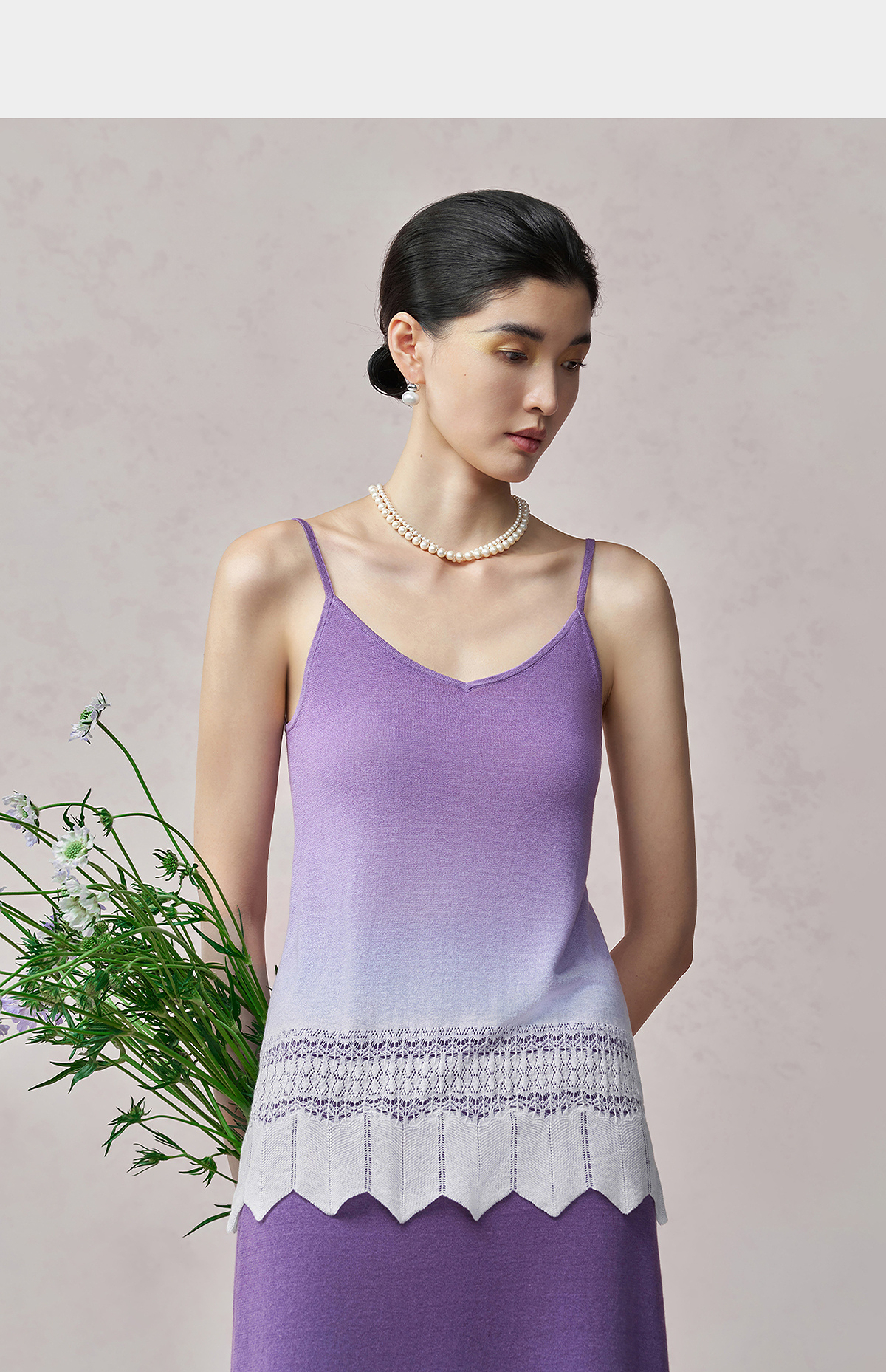 【林栖设计小店】渐变色镂空针织吊带背心2025早秋新款度假多色毛织多色上衣女1953273