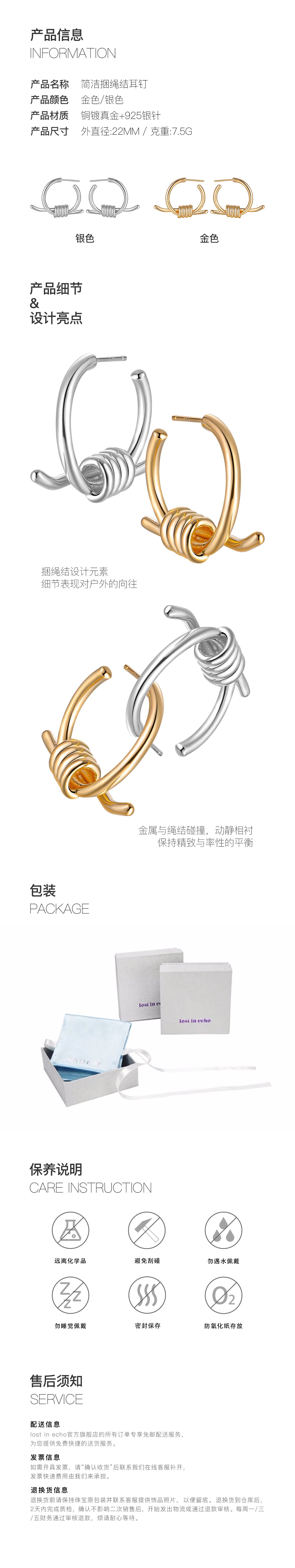 lost in echo 设计感轻奢小众简洁捆绳结耳钉