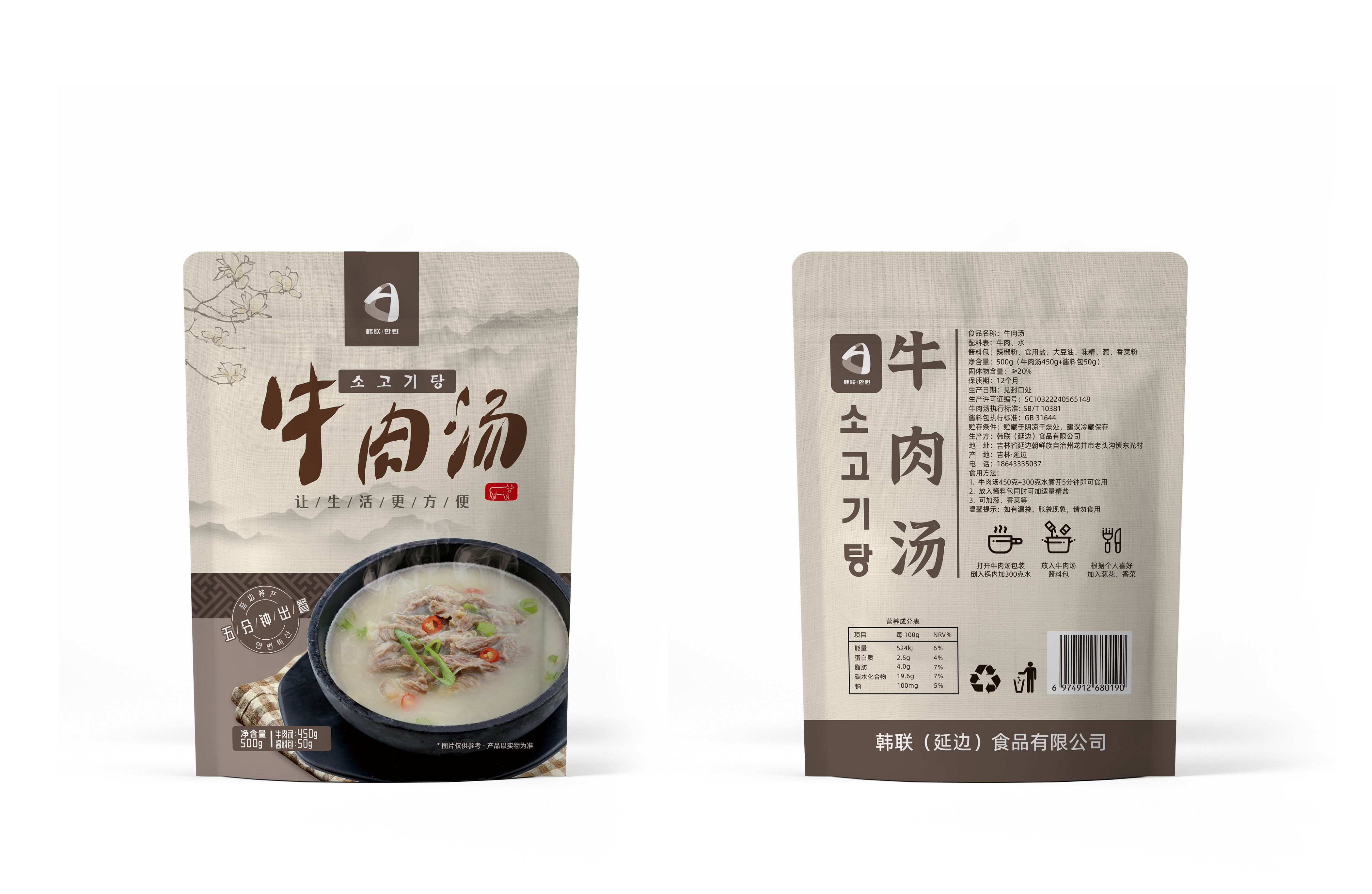 【直播专享】韩联延边牛肉汤500g*袋 拍一发二 包邮