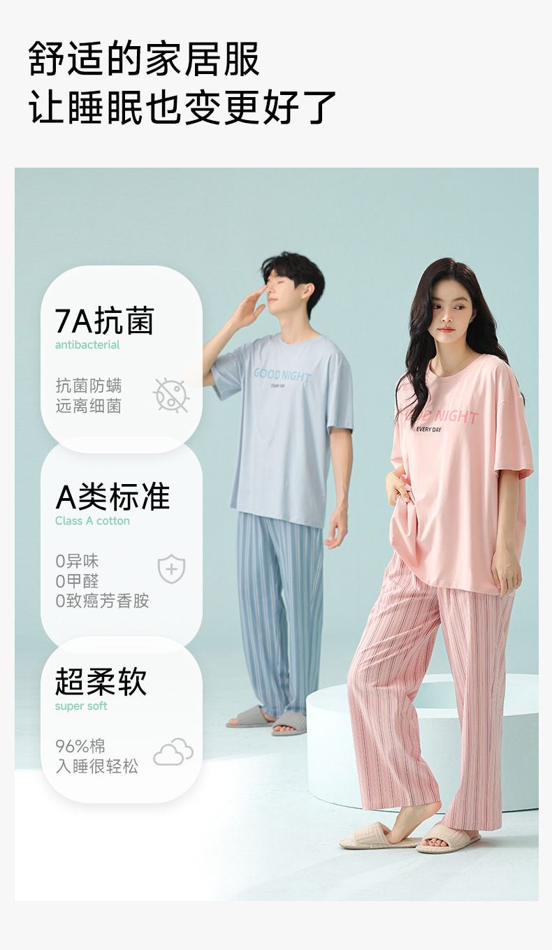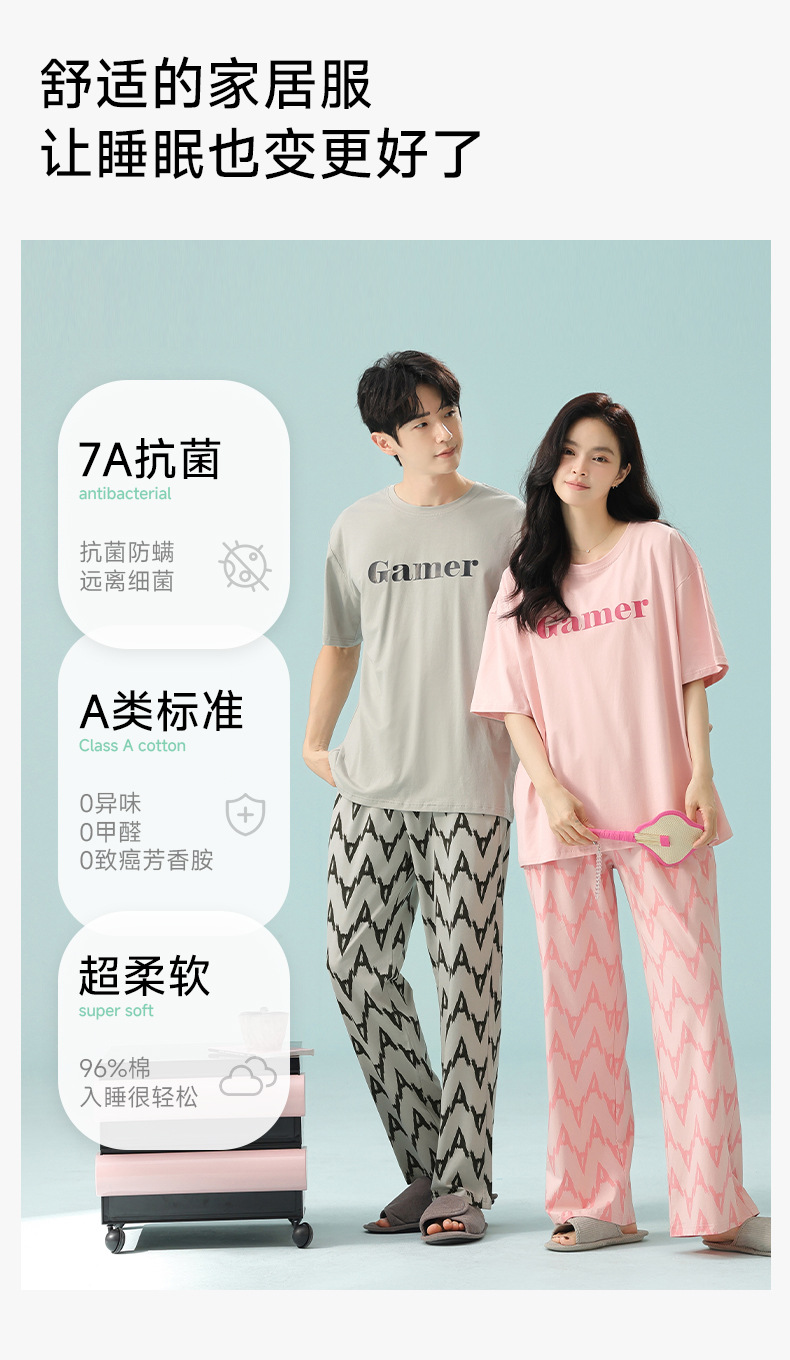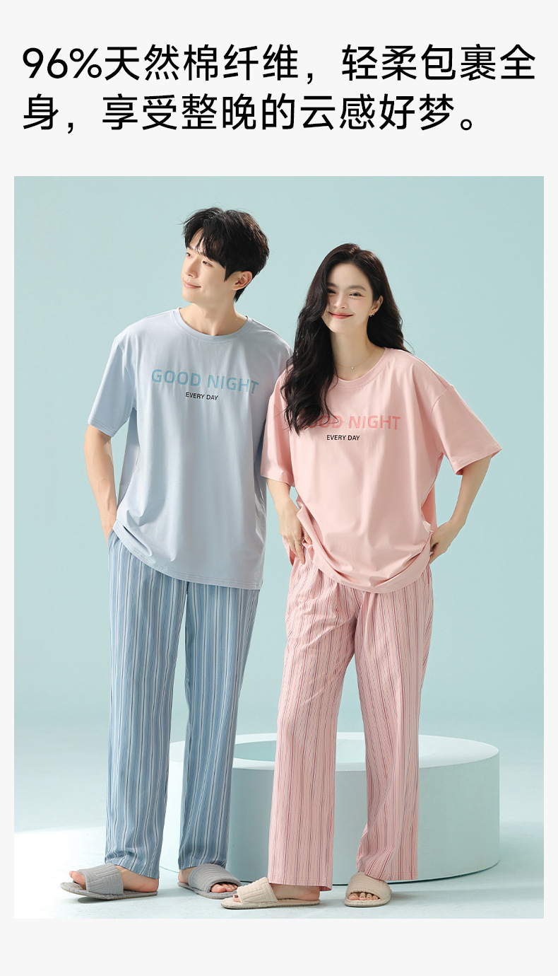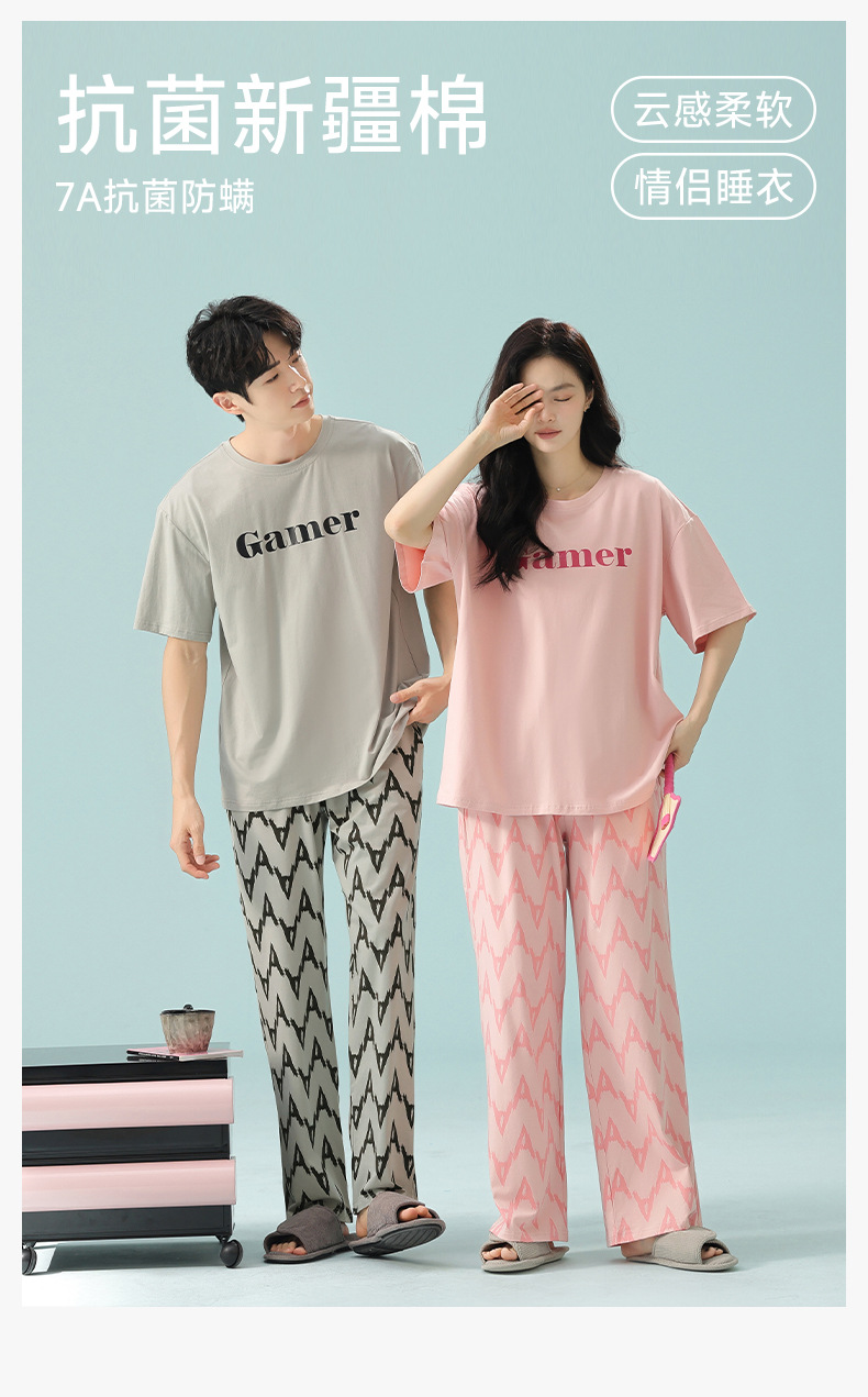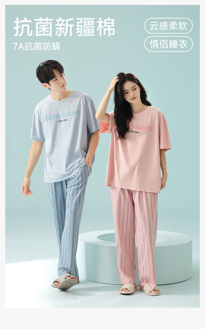 【188元2套】【大牌品质 抗菌新疆棉】2025春夏季短袖长裤情侣睡衣 凉感棉薄款家居服