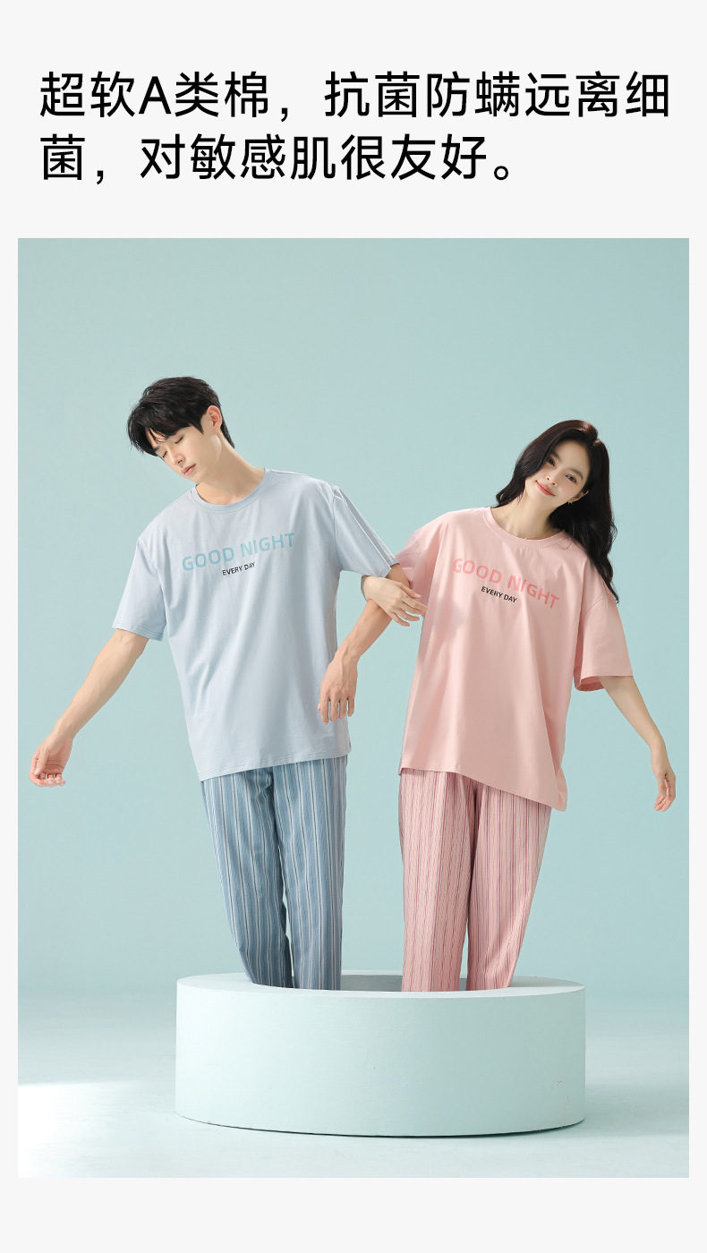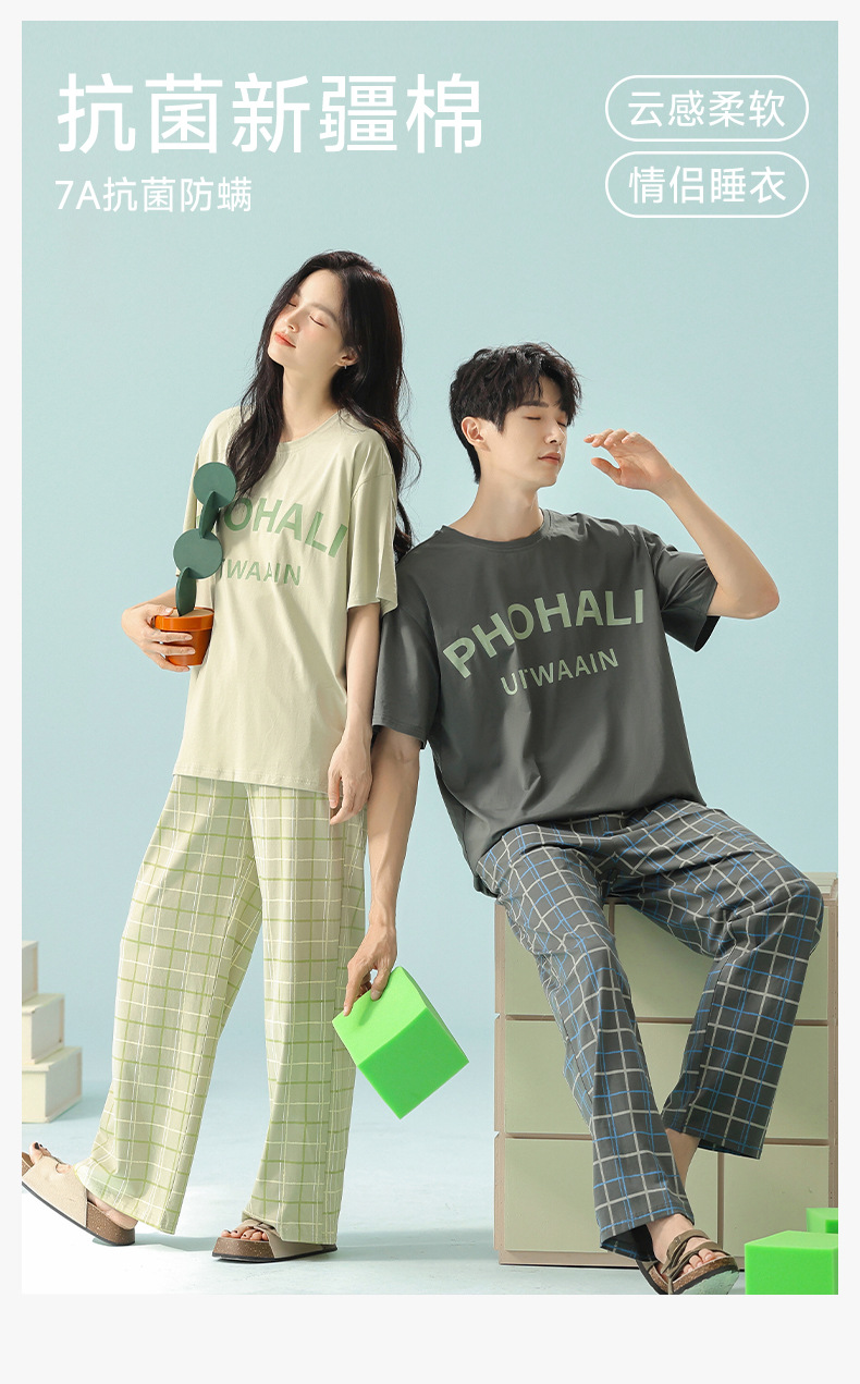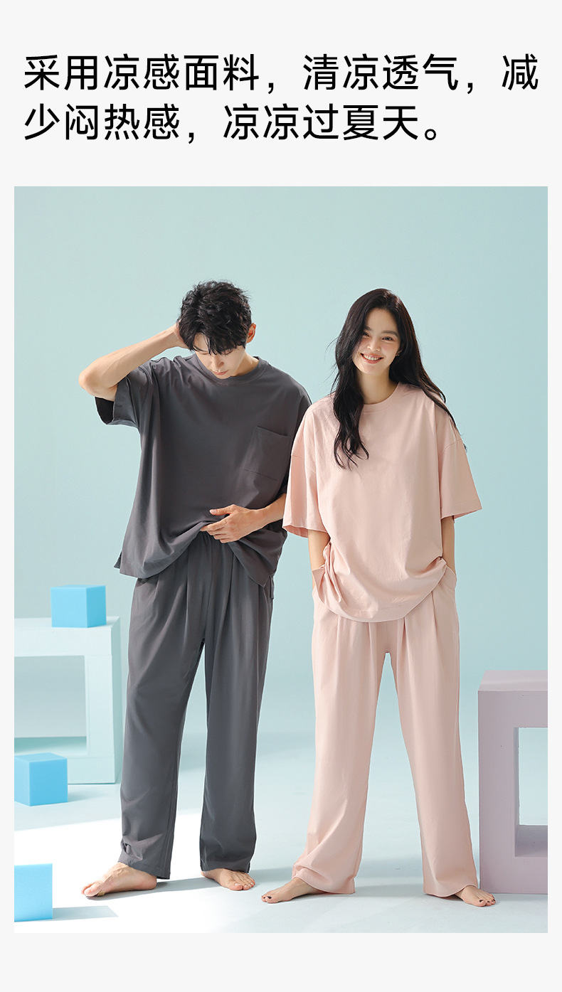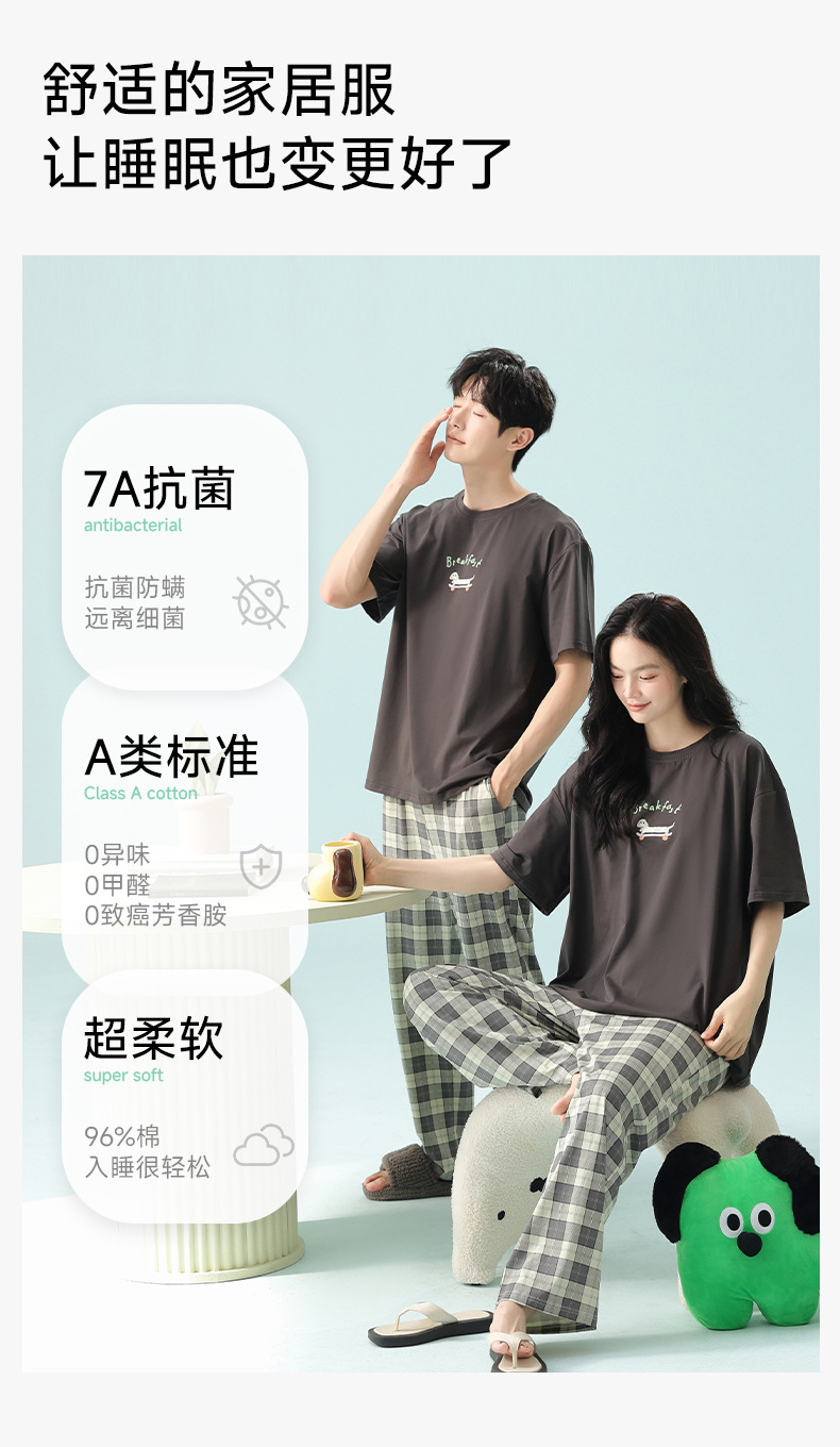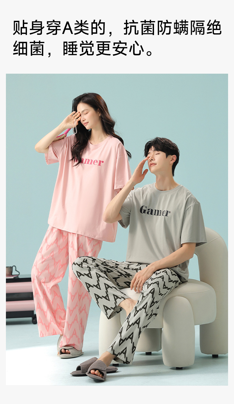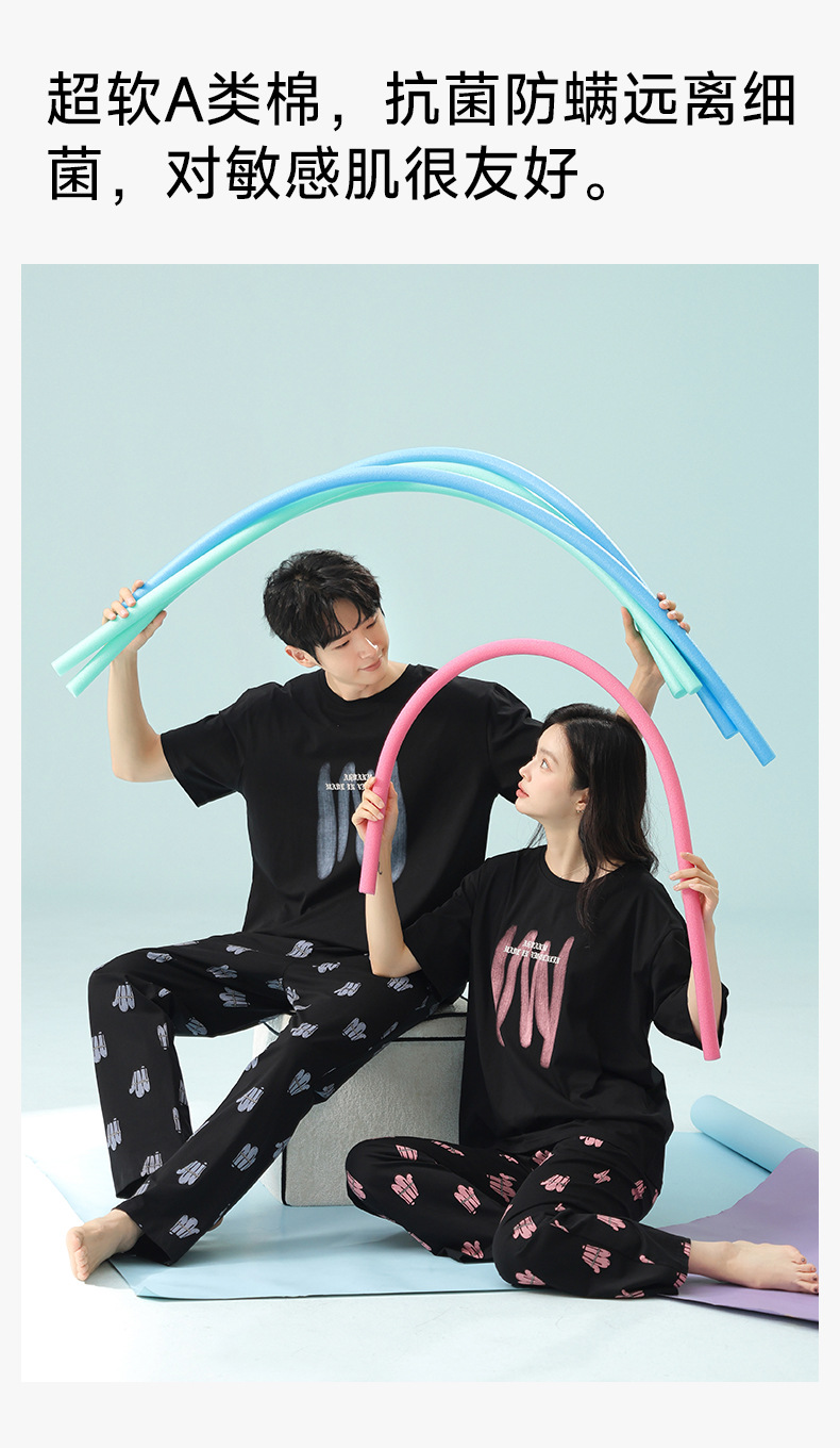 【188元2套】【大牌品质 抗菌新疆棉】2025春夏季短袖长裤情侣睡衣 凉感棉薄款家居服