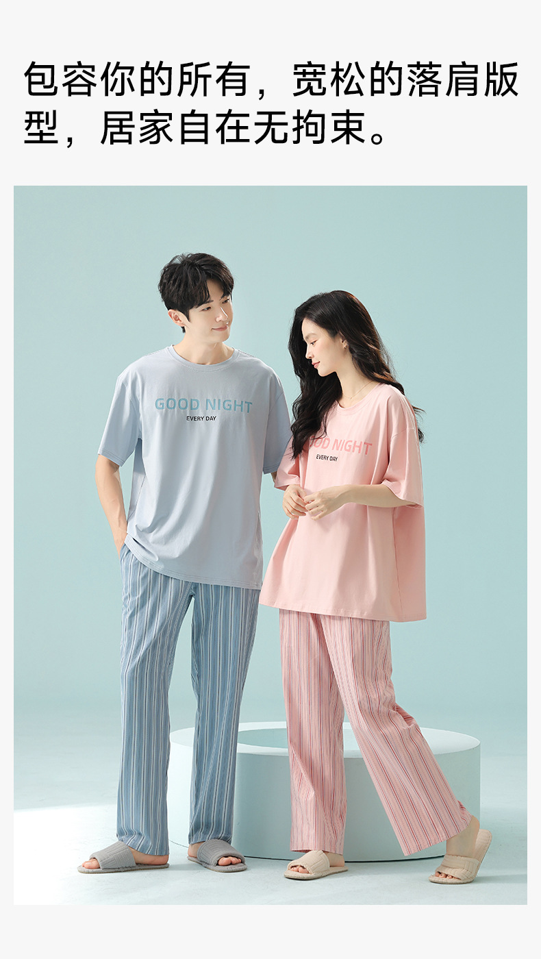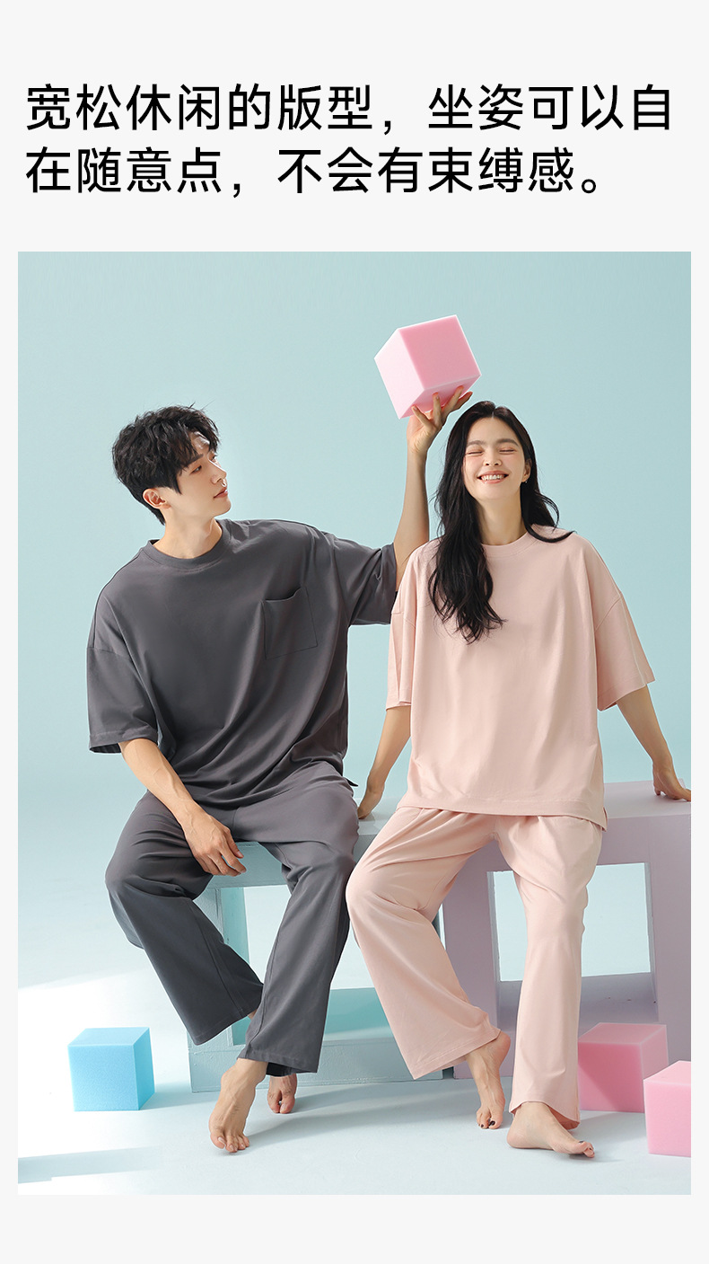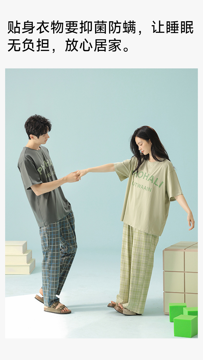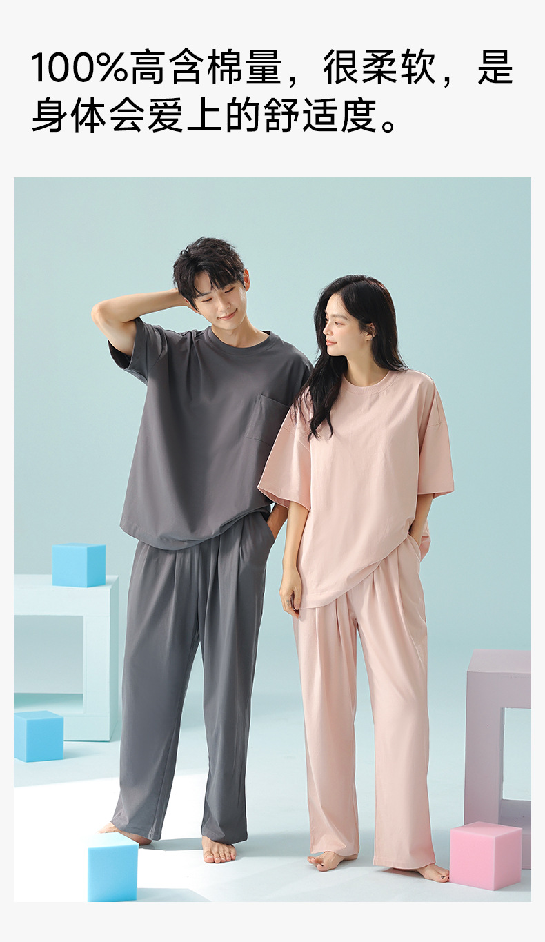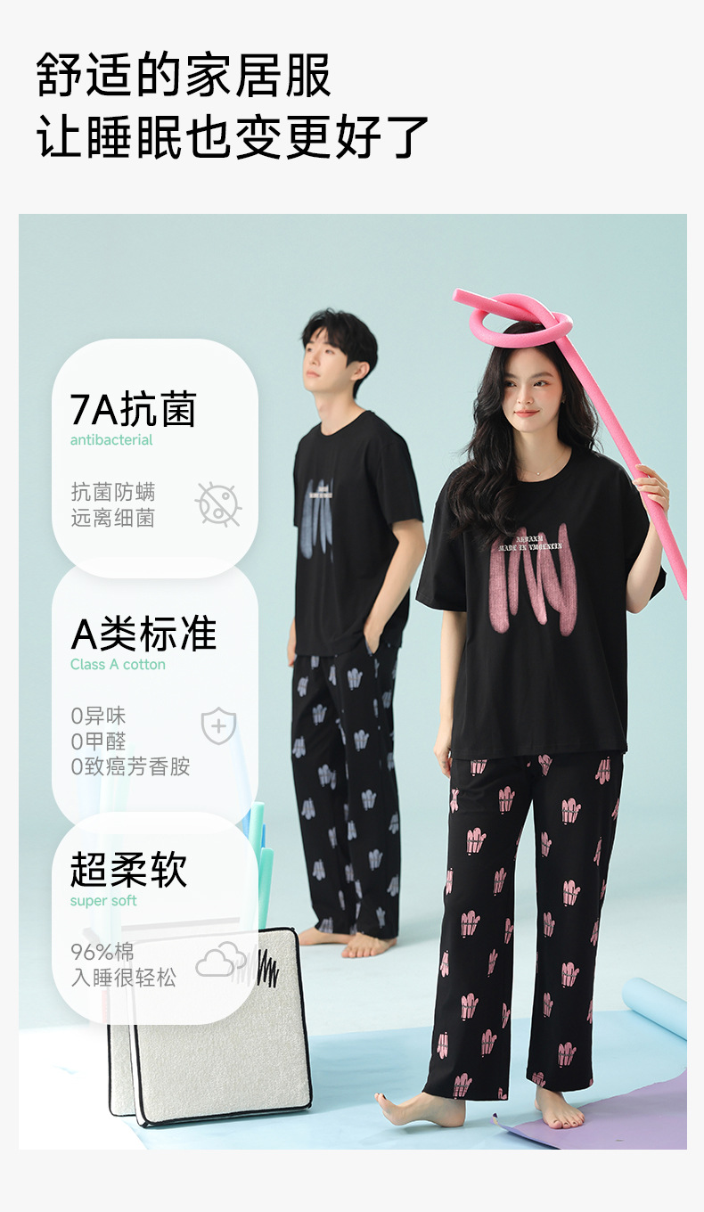 【188元2套】【大牌品质 抗菌新疆棉】2025春夏季短袖长裤情侣睡衣 凉感棉薄款家居服