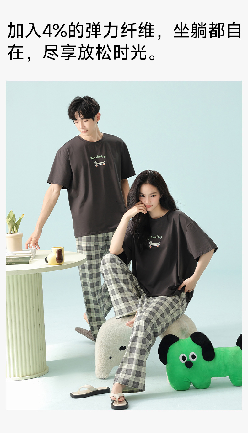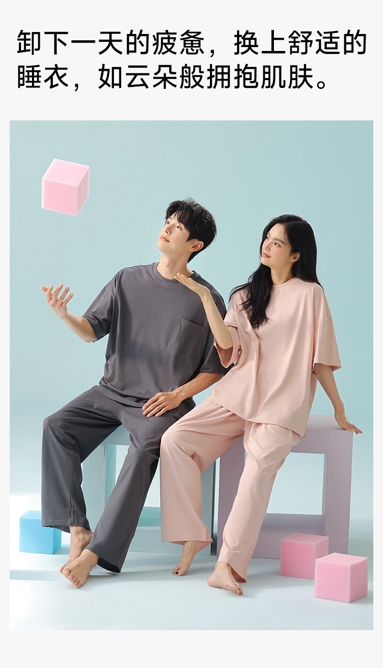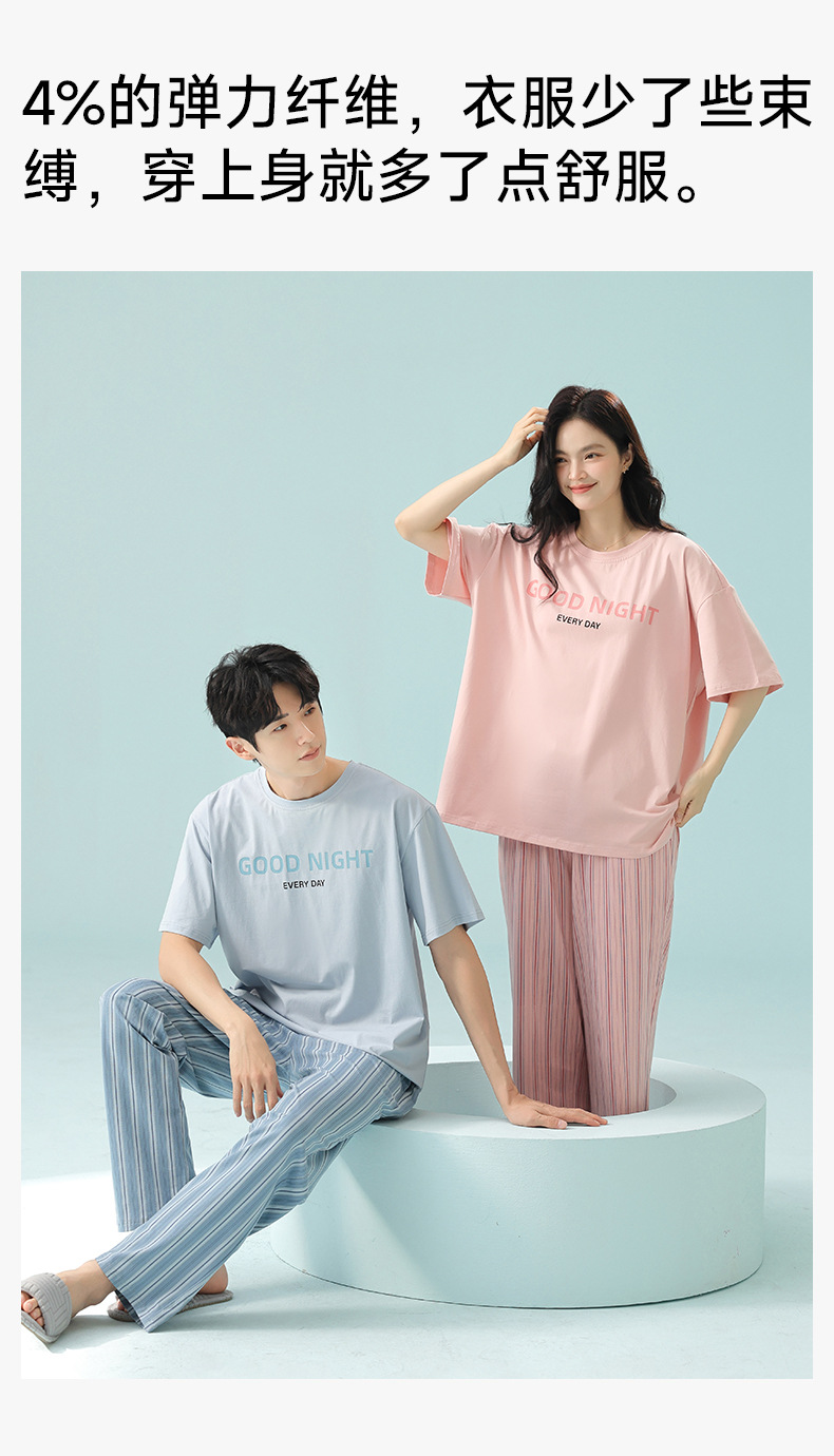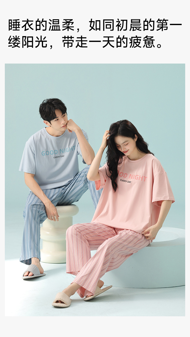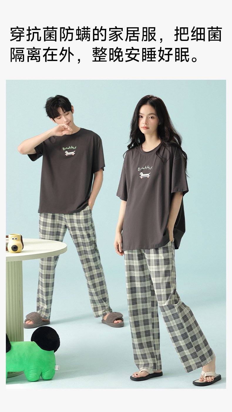 【188元2套】【大牌品质 抗菌新疆棉】2025春夏季短袖长裤情侣睡衣 凉感棉薄款家居服