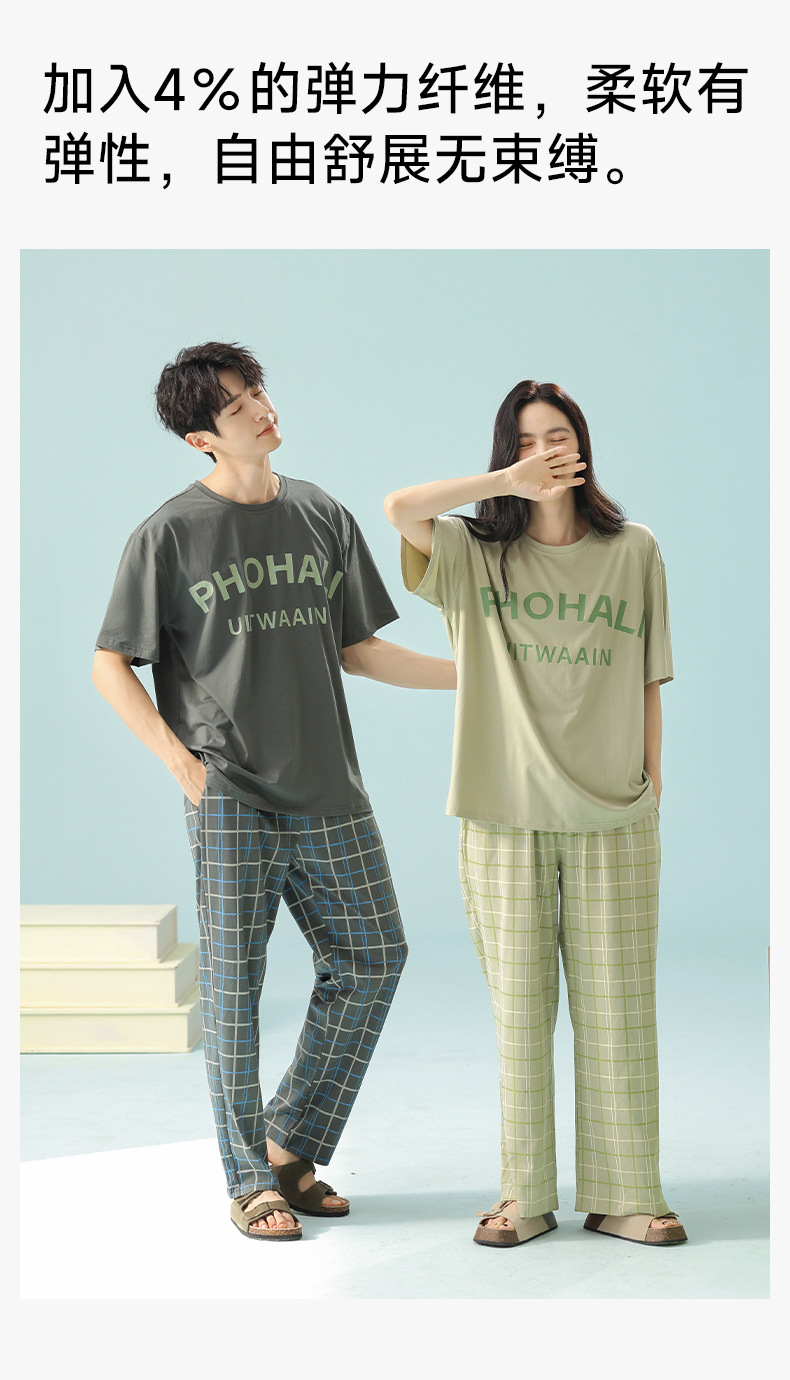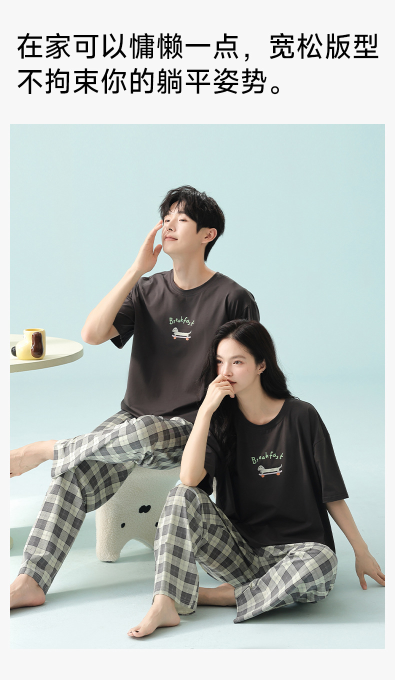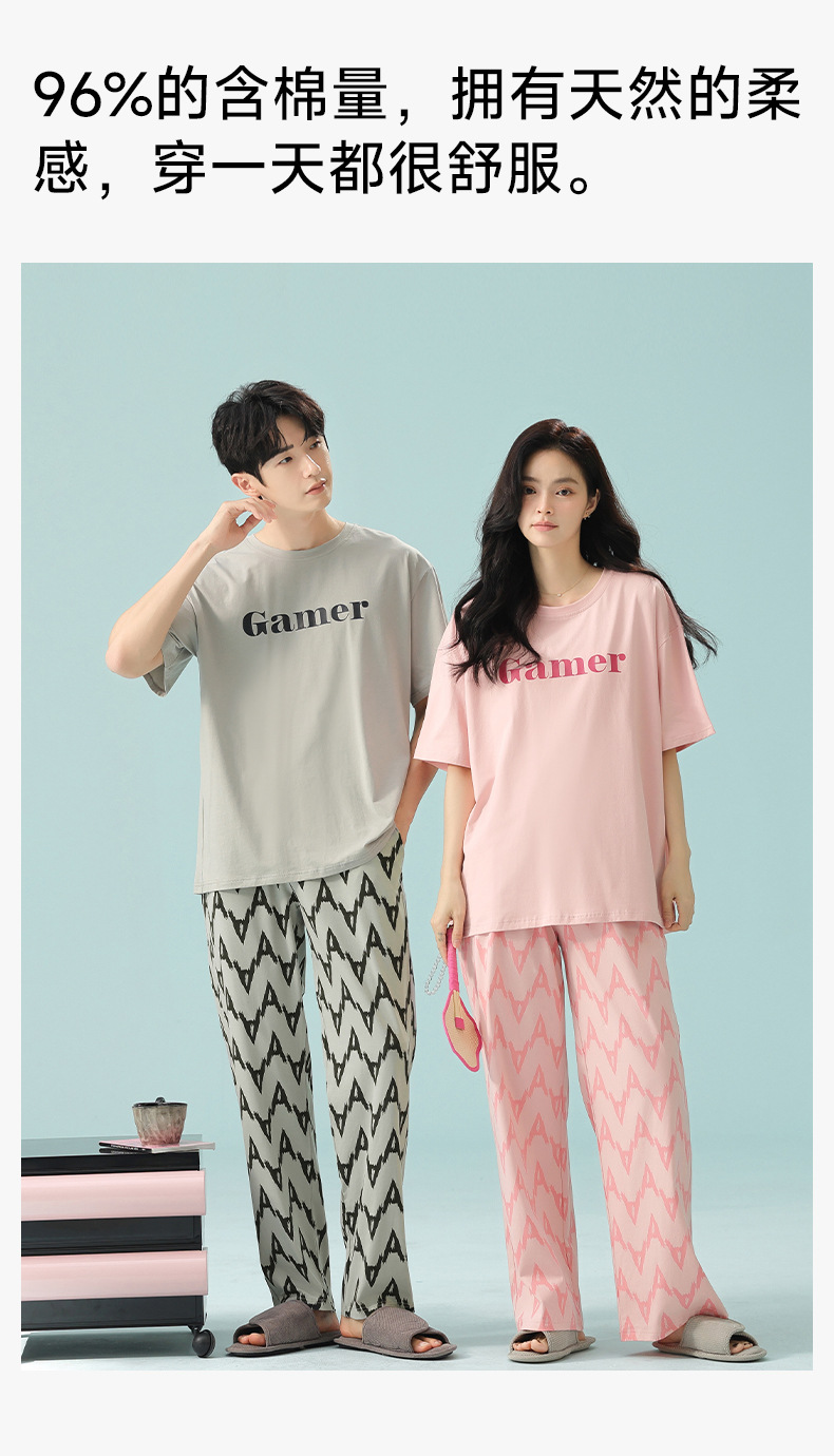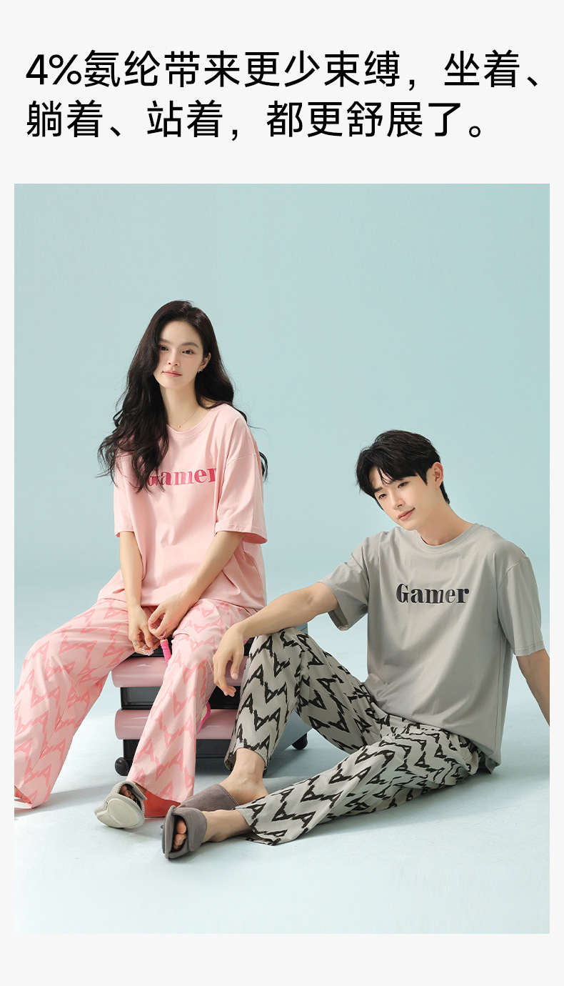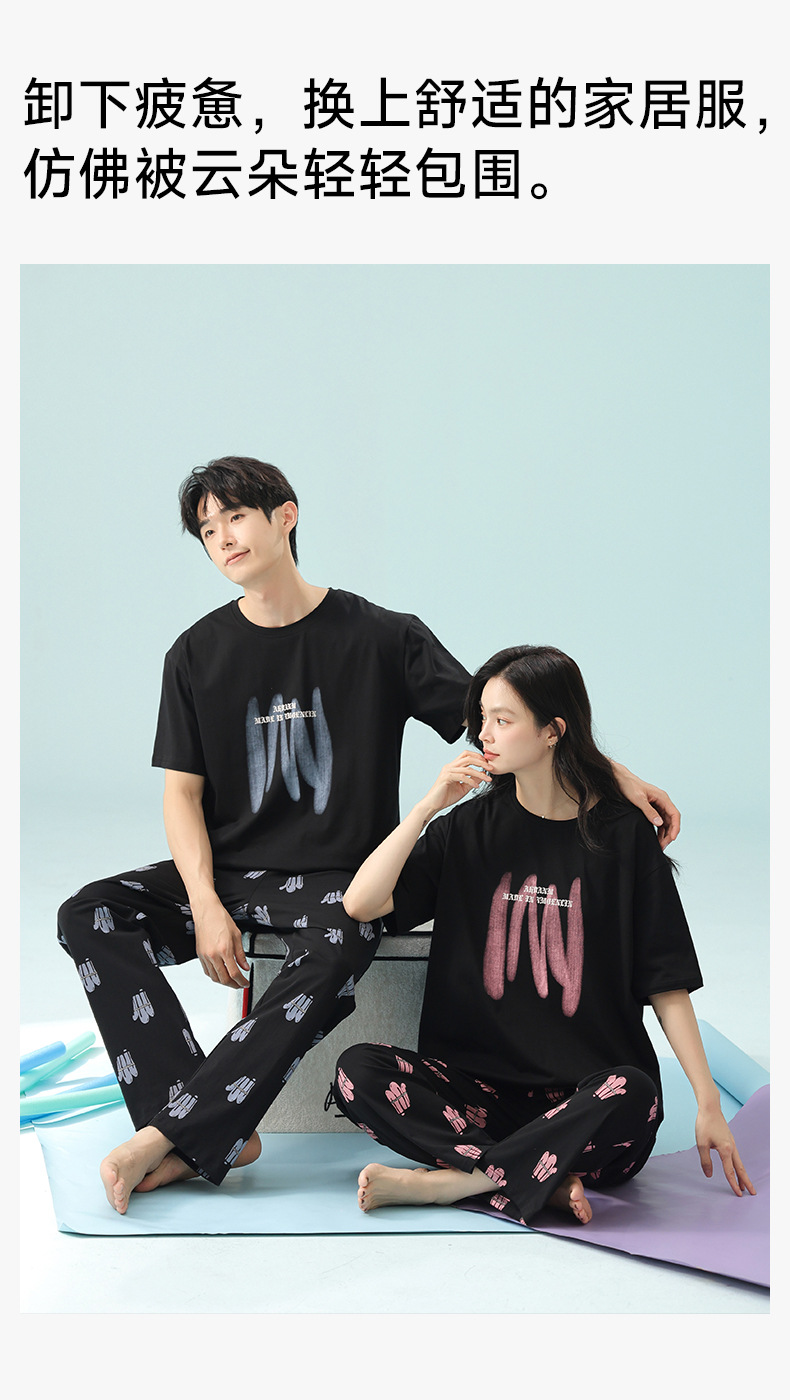 【188元2套】【大牌品质 抗菌新疆棉】2025春夏季短袖长裤情侣睡衣 凉感棉薄款家居服