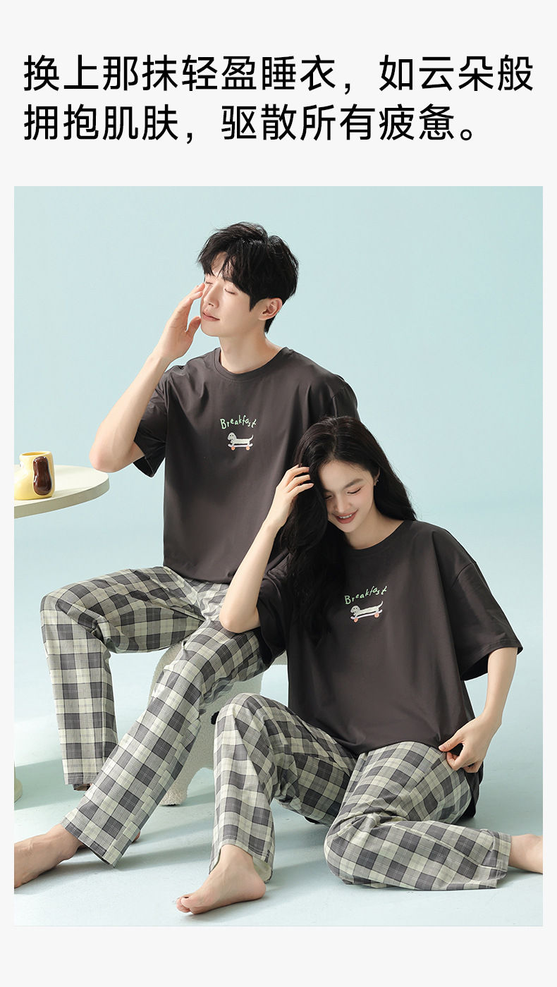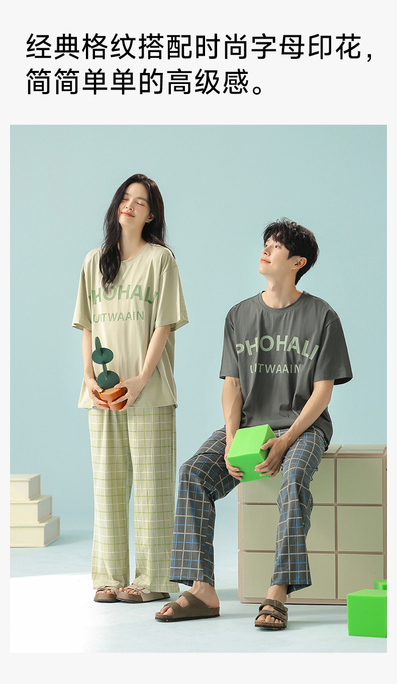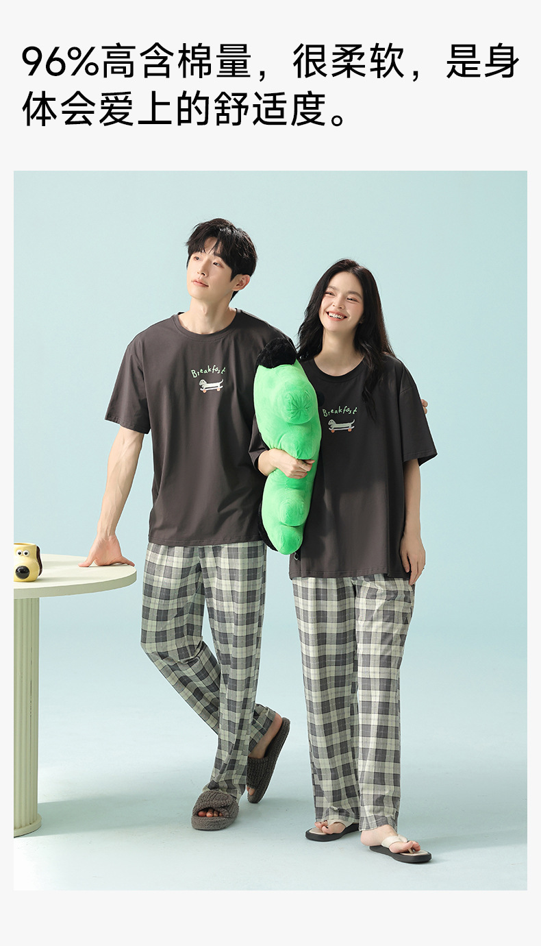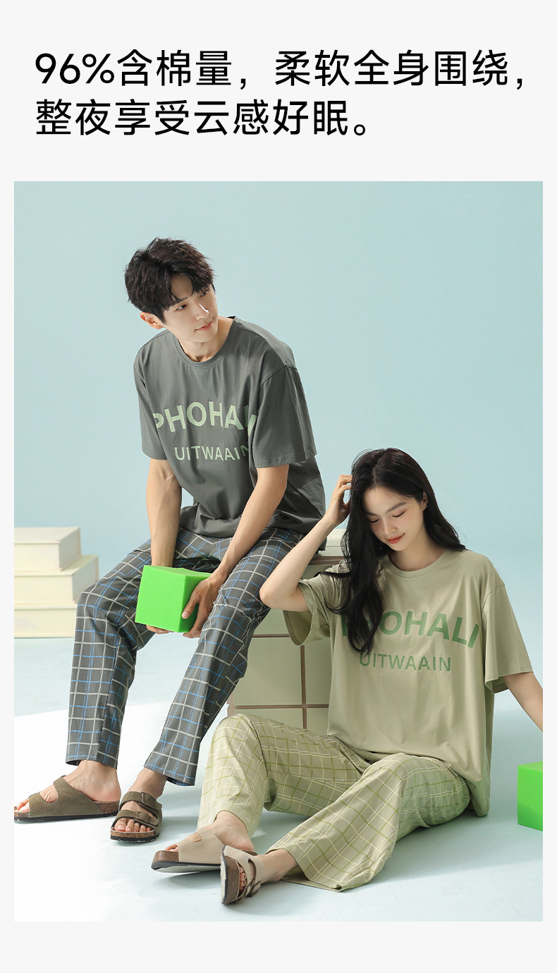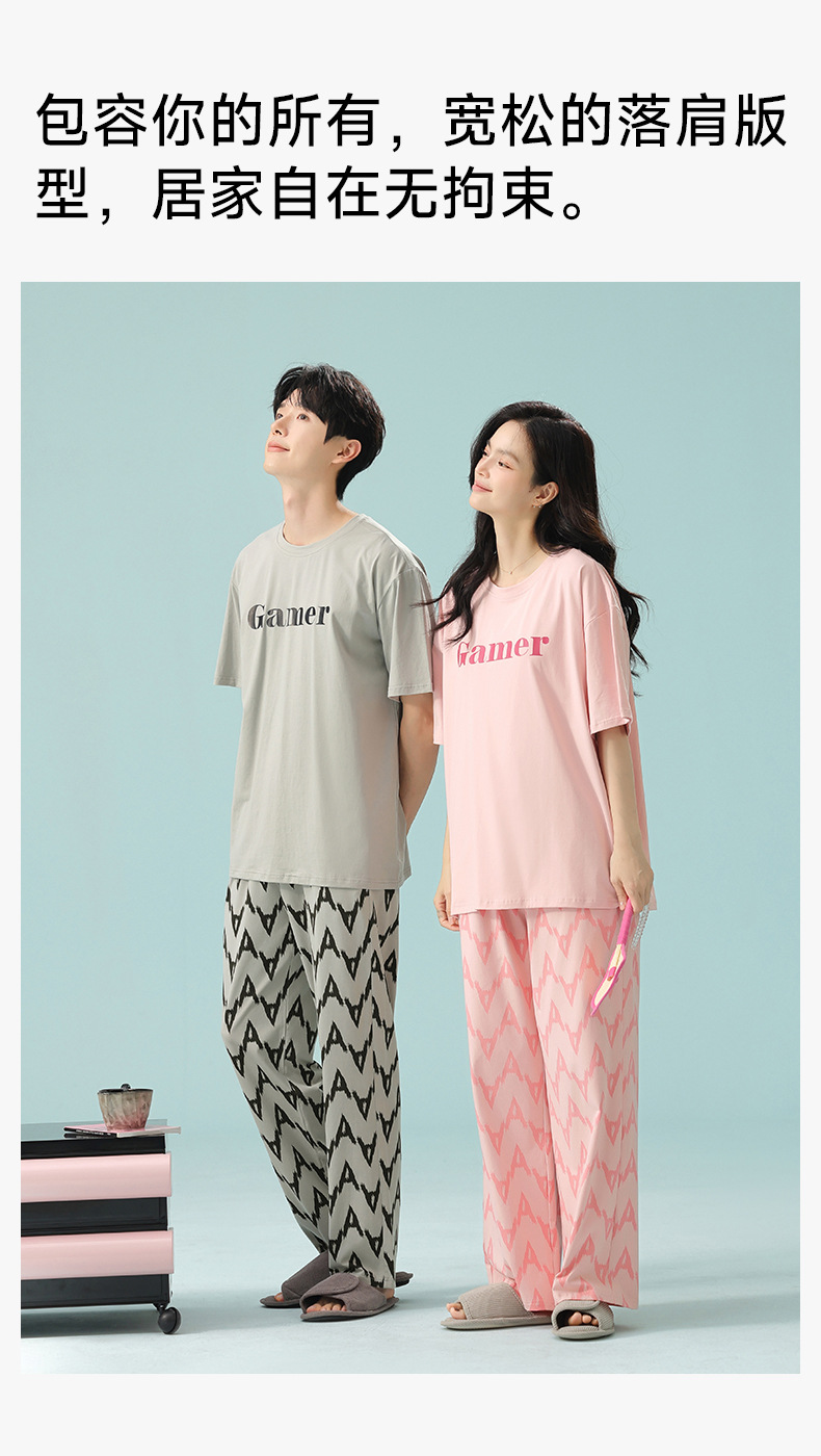 【188元2套】【大牌品质 抗菌新疆棉】2025春夏季短袖长裤情侣睡衣 凉感棉薄款家居服