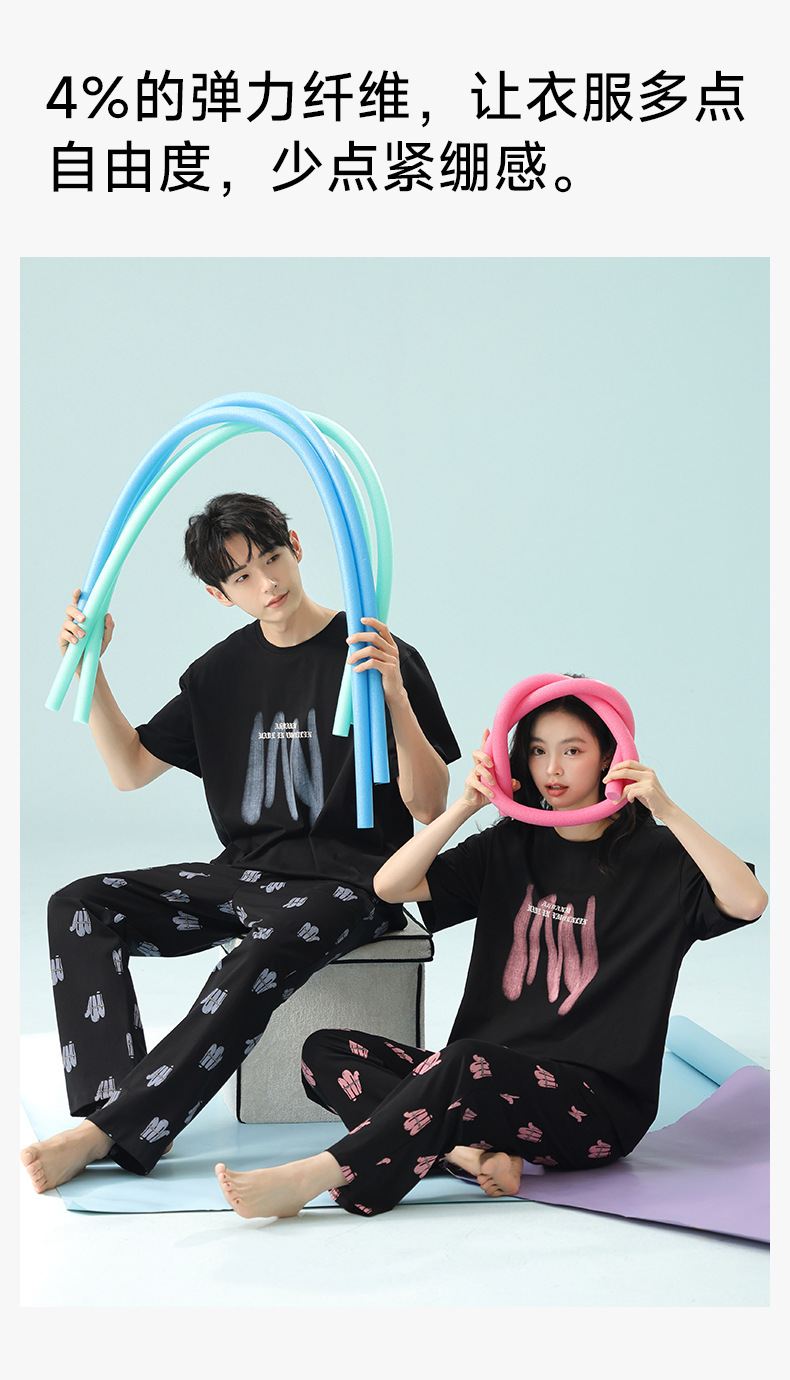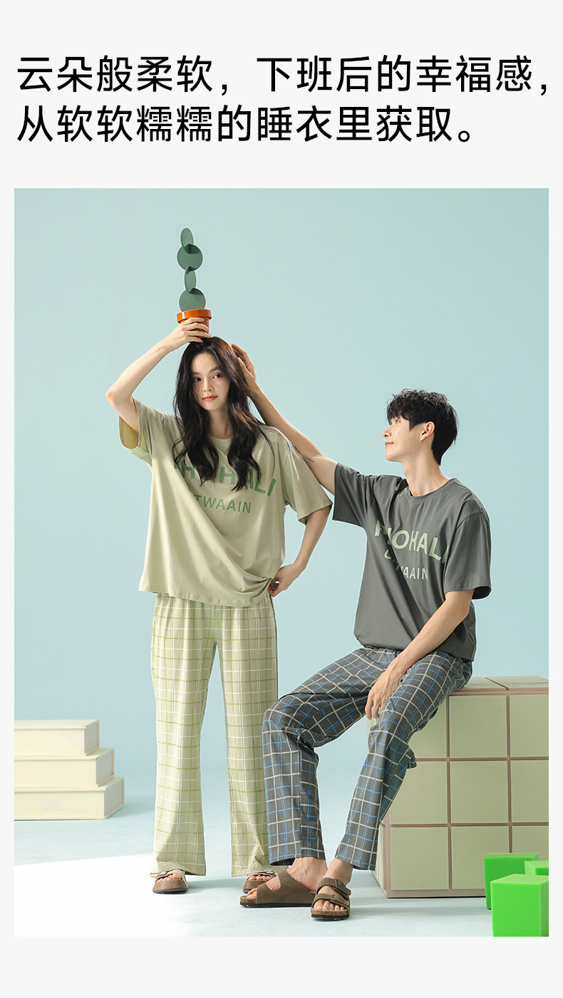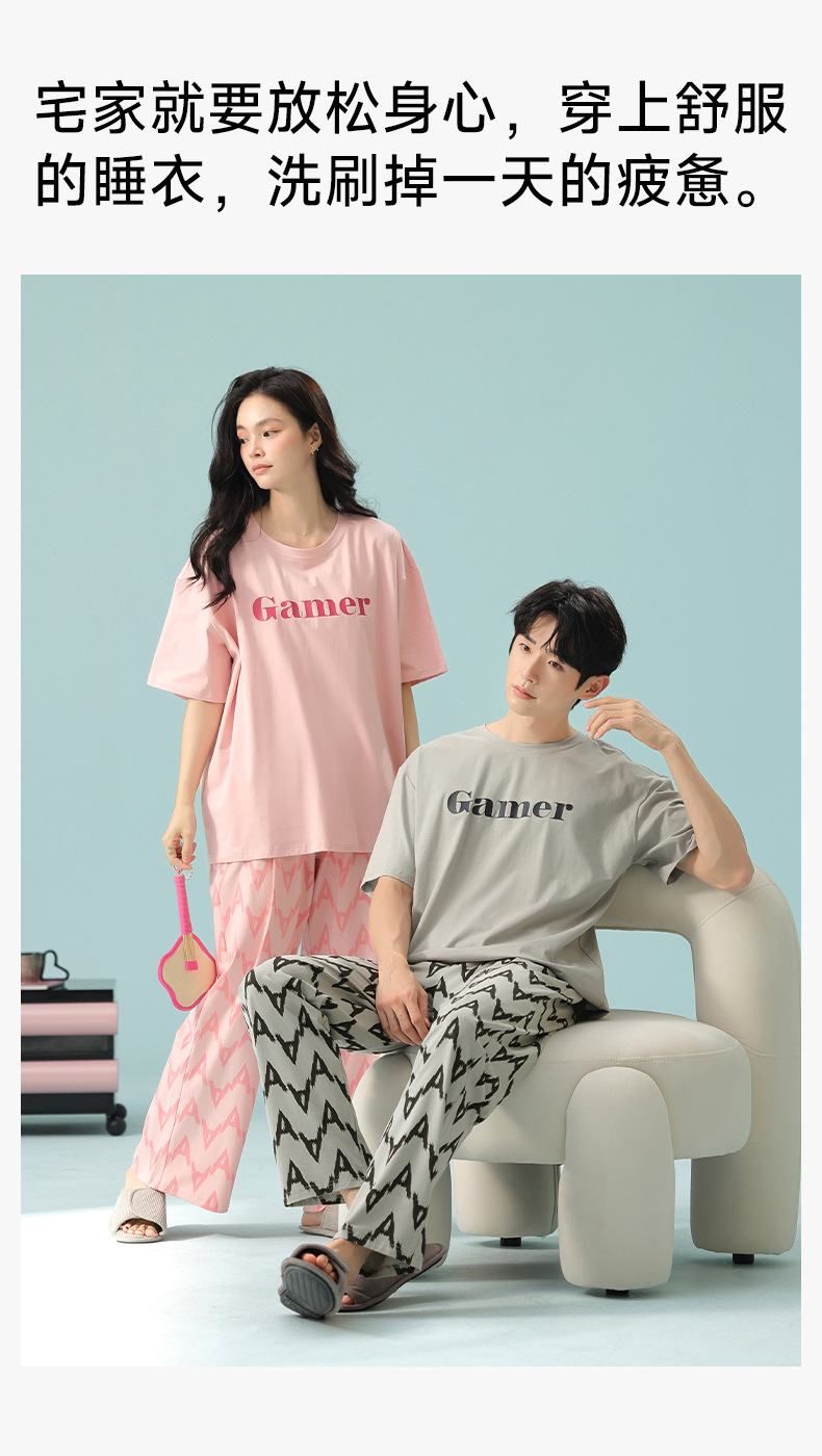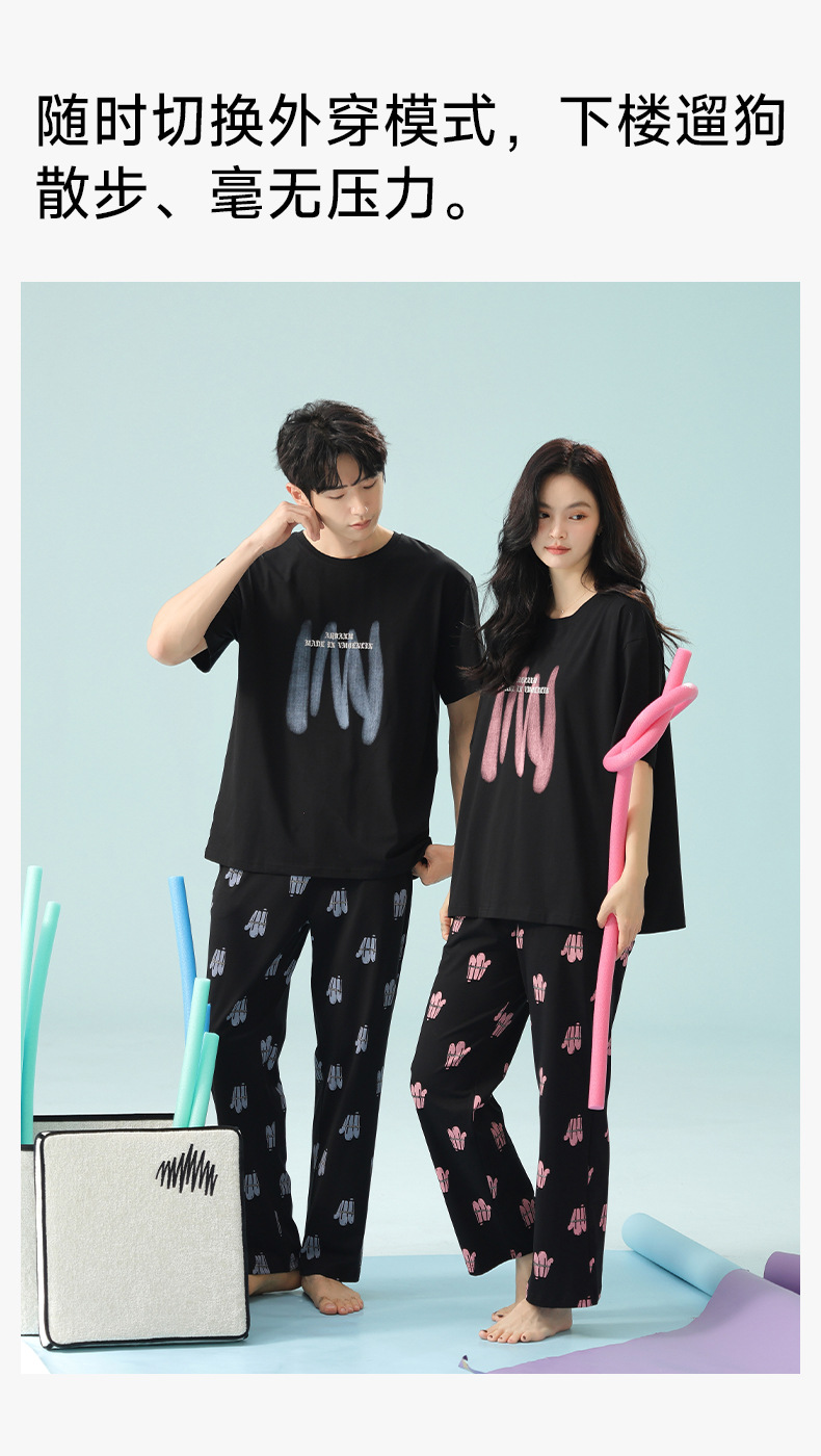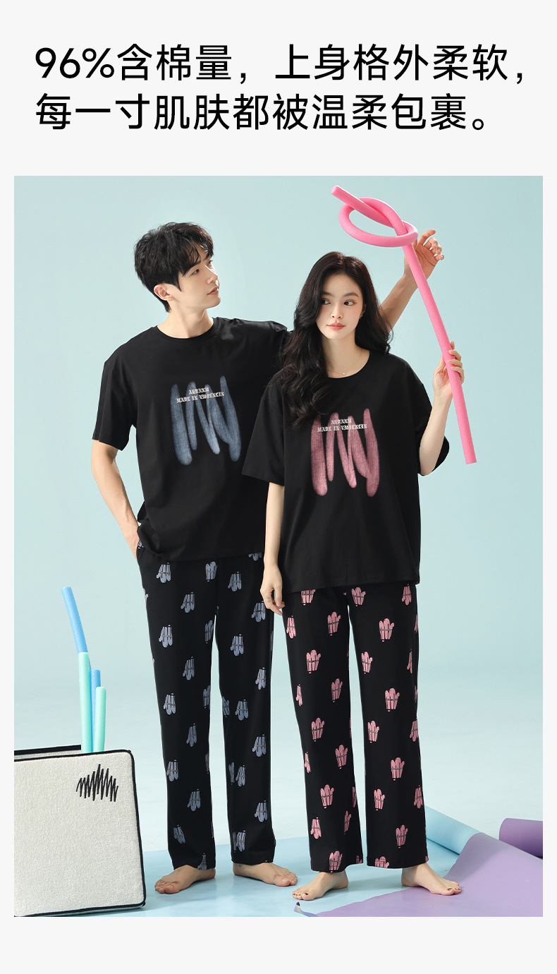 【188元2套】【大牌品质 抗菌新疆棉】2025春夏季短袖长裤情侣睡衣 凉感棉薄款家居服
