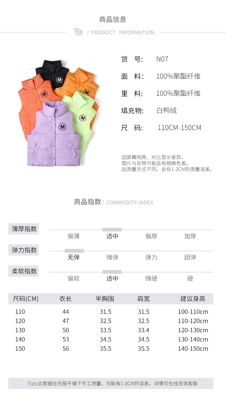 【胖胖象羽绒服、羽绒马甲】冬季新款儿童羽绒服双面可穿90%白鸭绒防水防污儿童羽绒服、五色羽绒马甲聚