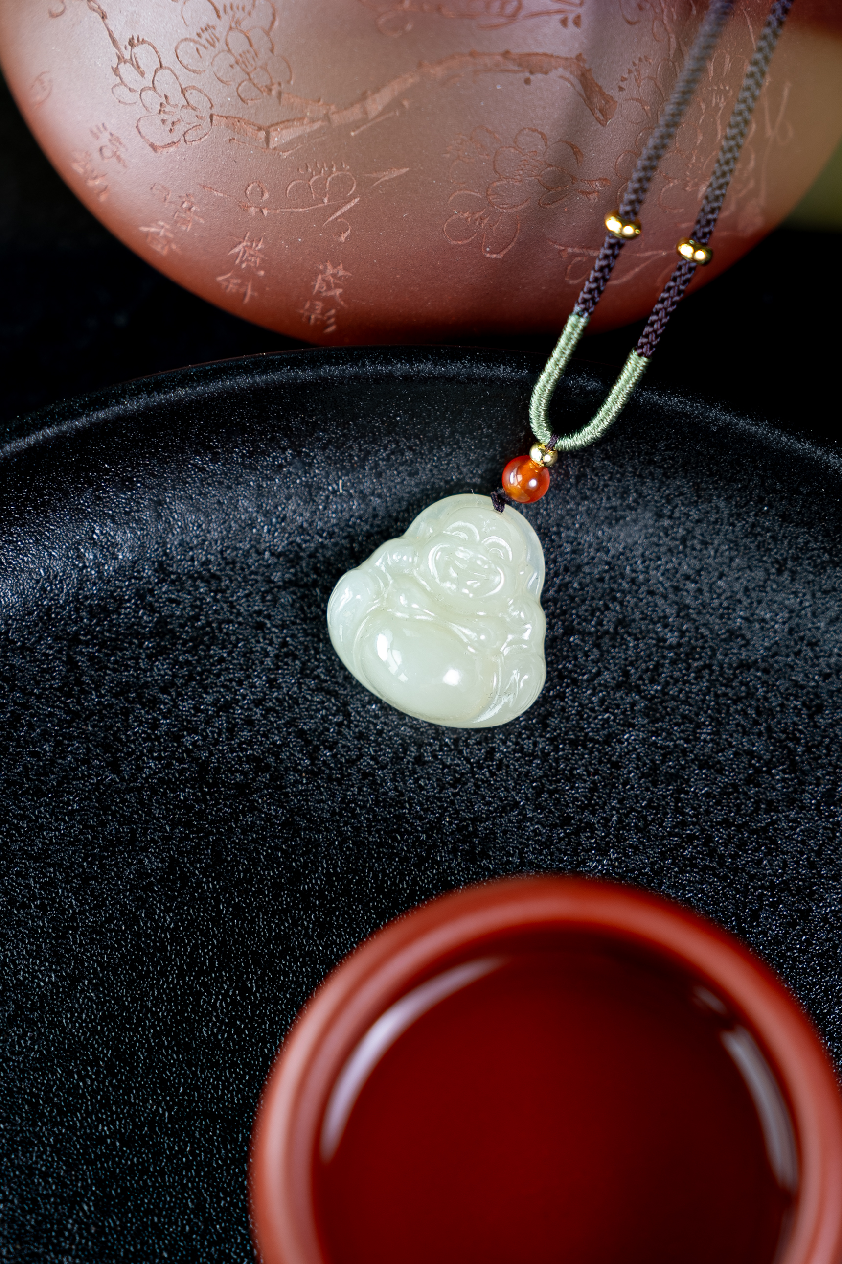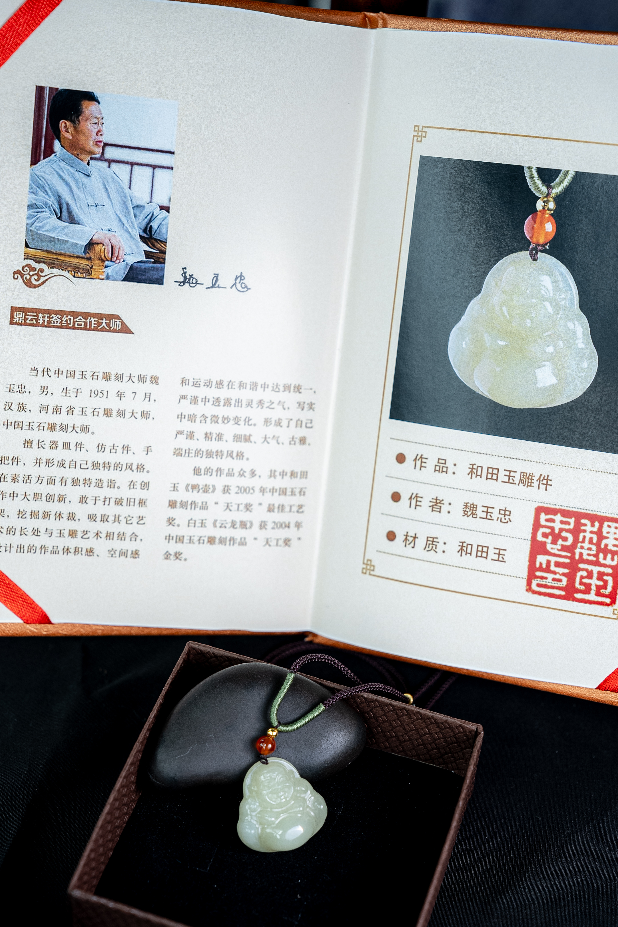 【中国玉雕大师魏玉忠大师亲研】 天然玉石和田玉项链 温润滋泽细致光滑 双证可查