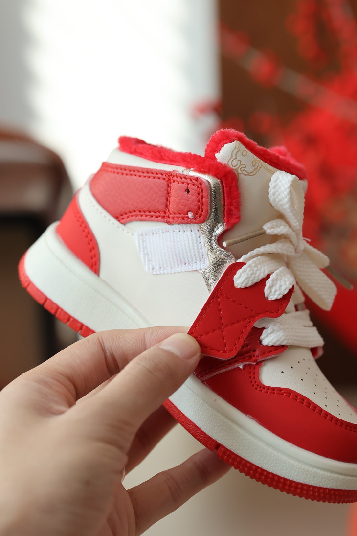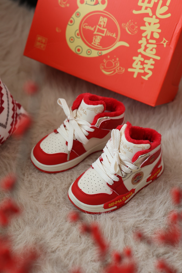 【蛇来运转 鞋盒定制 冬季加绒高帮板鞋】 材质:魔术贴 超纤 TPR 颜色: 中国红/杨妃粉/青衣黑 鞋码:27-38码 ( 可当亲子鞋,大人也有码)