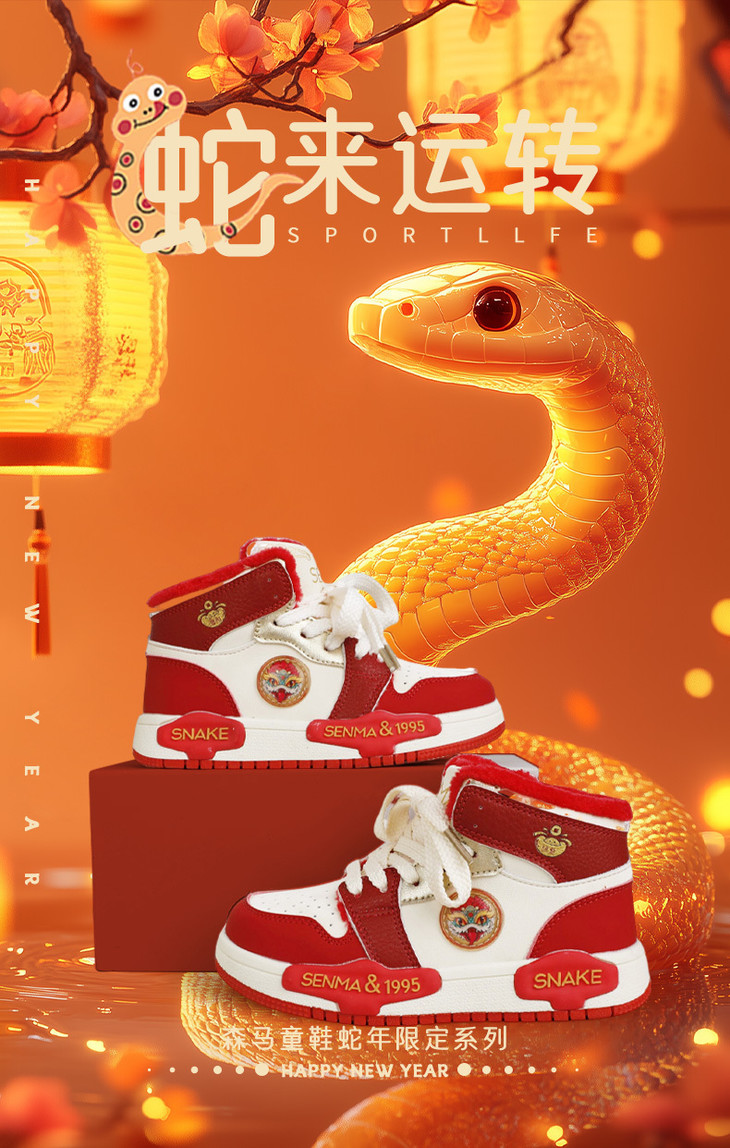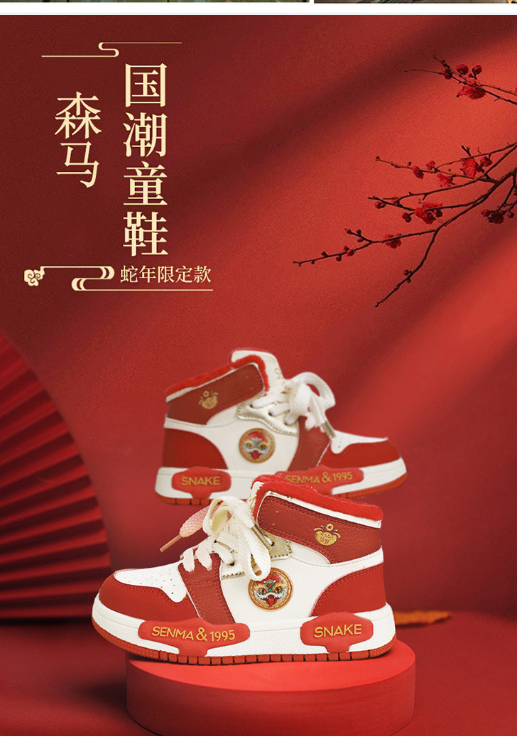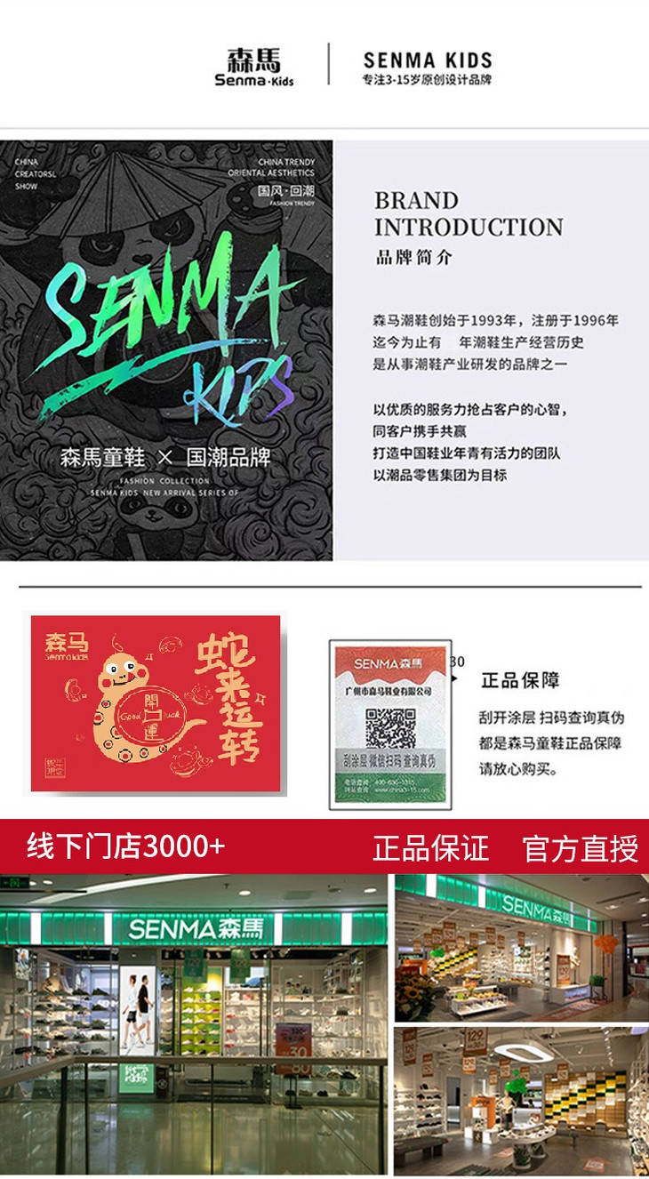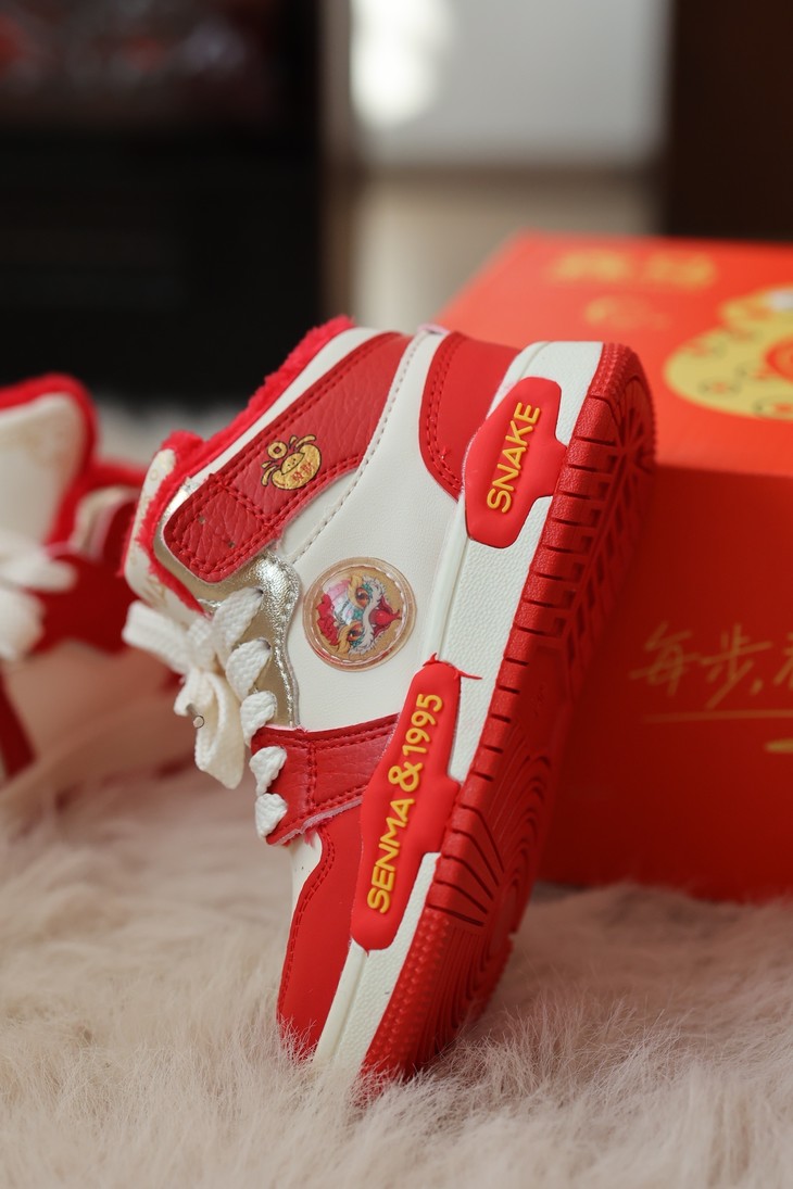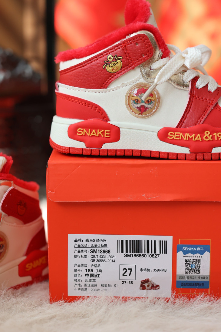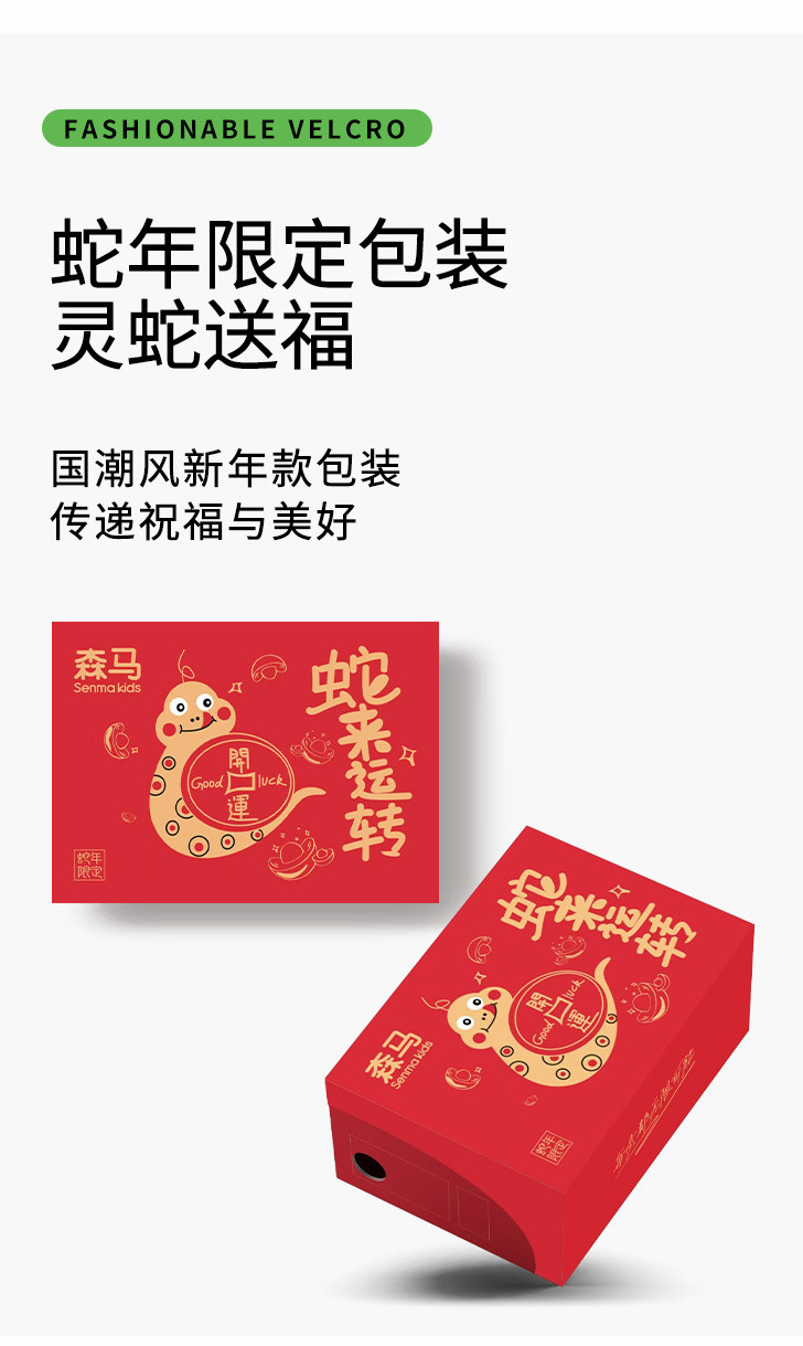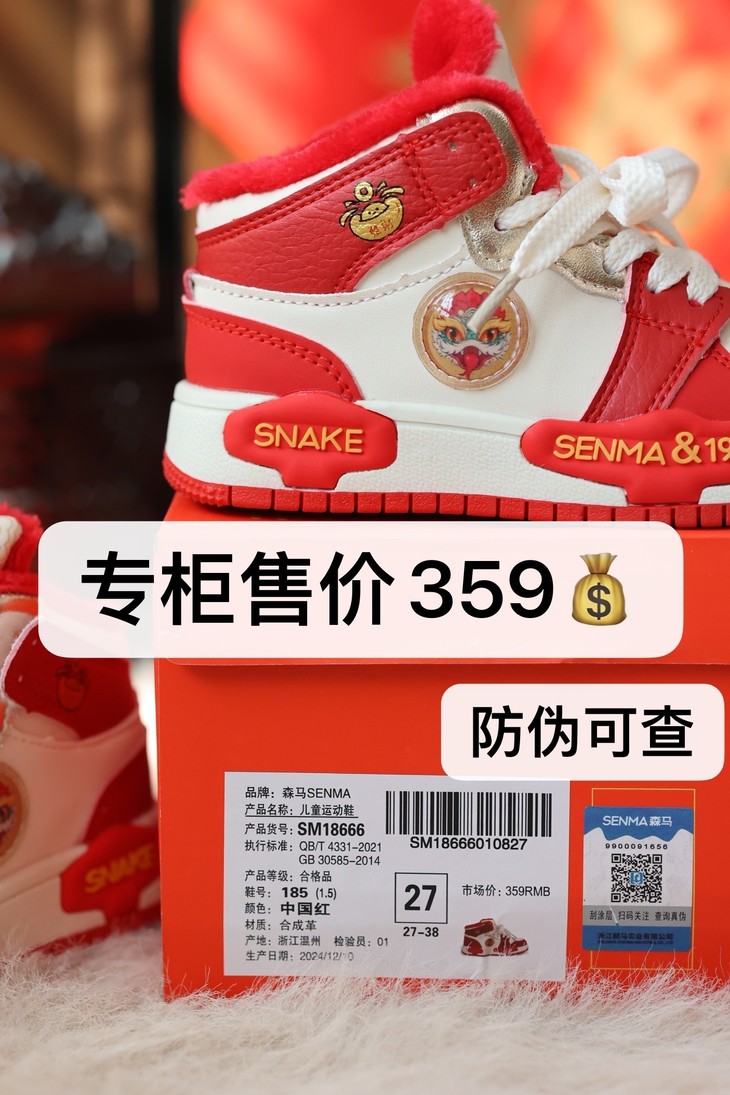 SENMA森马kids童鞋 回家给宝贝穿上过新年 蛇年限定款!仪式感拉满 还是蛇来运转礼盒包装!送人也非常合适 商场专柜359一双!团购89.9🔺100%正品 每双鞋都有防伪码 乳胶鞋垫/艾草去臭鞋垫随机发🔺 ●码数也全,27-38码 小童,中童,大童,大人也能穿可以亲子款鞋 小孩脚长得快,追求品质的同时性价比也要高! ✅专业科学儿童鞋楦,护足性和支撑性都在线 ✅脚感无敌,轻透舒适,防滑还减震 ✅真超纤皮革,超耐穿耐折