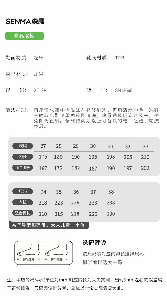 给孩子买鞋,影响发育是关键! 一旦足部发育不良 不仅会影响孩子的整体形态 还会危害孩子的骨骼发育和生长 ★千万不能贪图便宜影响了孩子的健康生长 认准SENMA森马童鞋 好穿又实惠